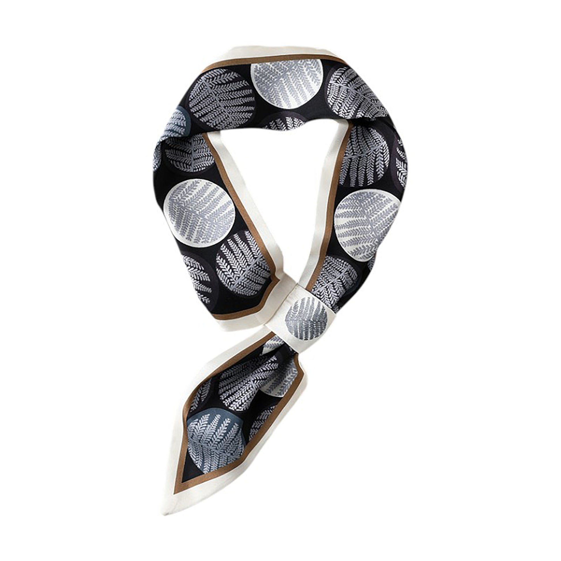 The Anna-Kaci Women's Leaf Print Silky Scarf is a chic accessory that blends modern design with timeless elegance. Featuring an allover leaf motif framed with a polished border, this scarf adds a touch of sophistication to any look. Made from lightweight, silky fabric, it drapes beautifully and feels soft against the skin. Its versatile shape allows it to be styled around the neck, tied in the hair, or wrapped onto handbags for an elevated detail.