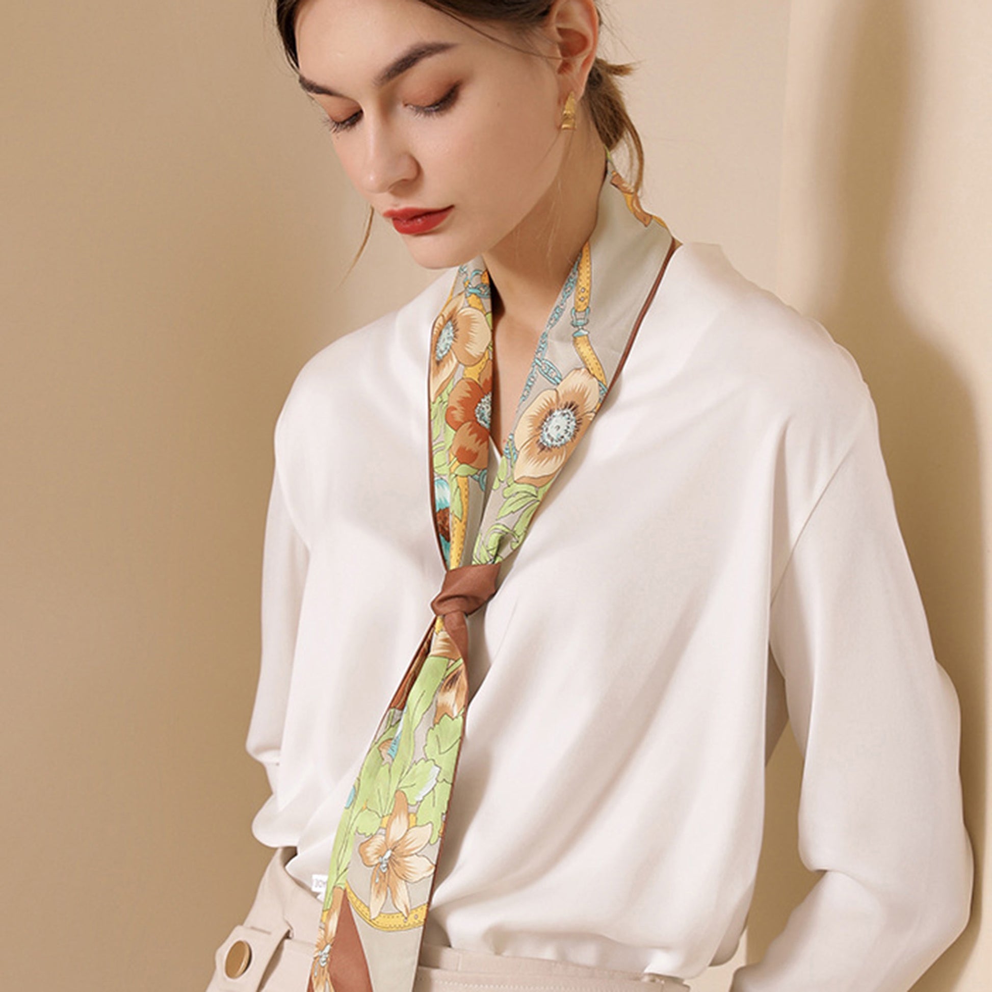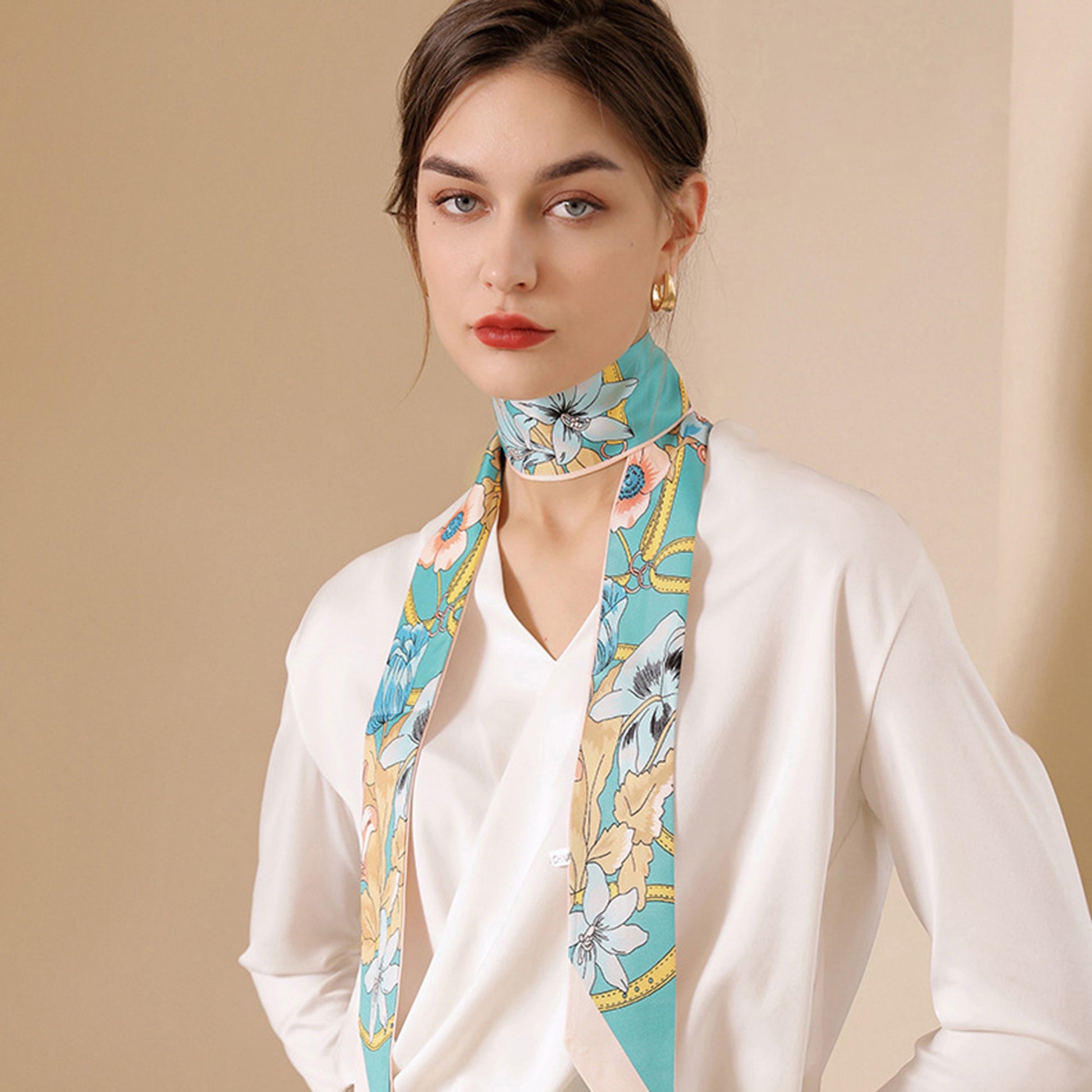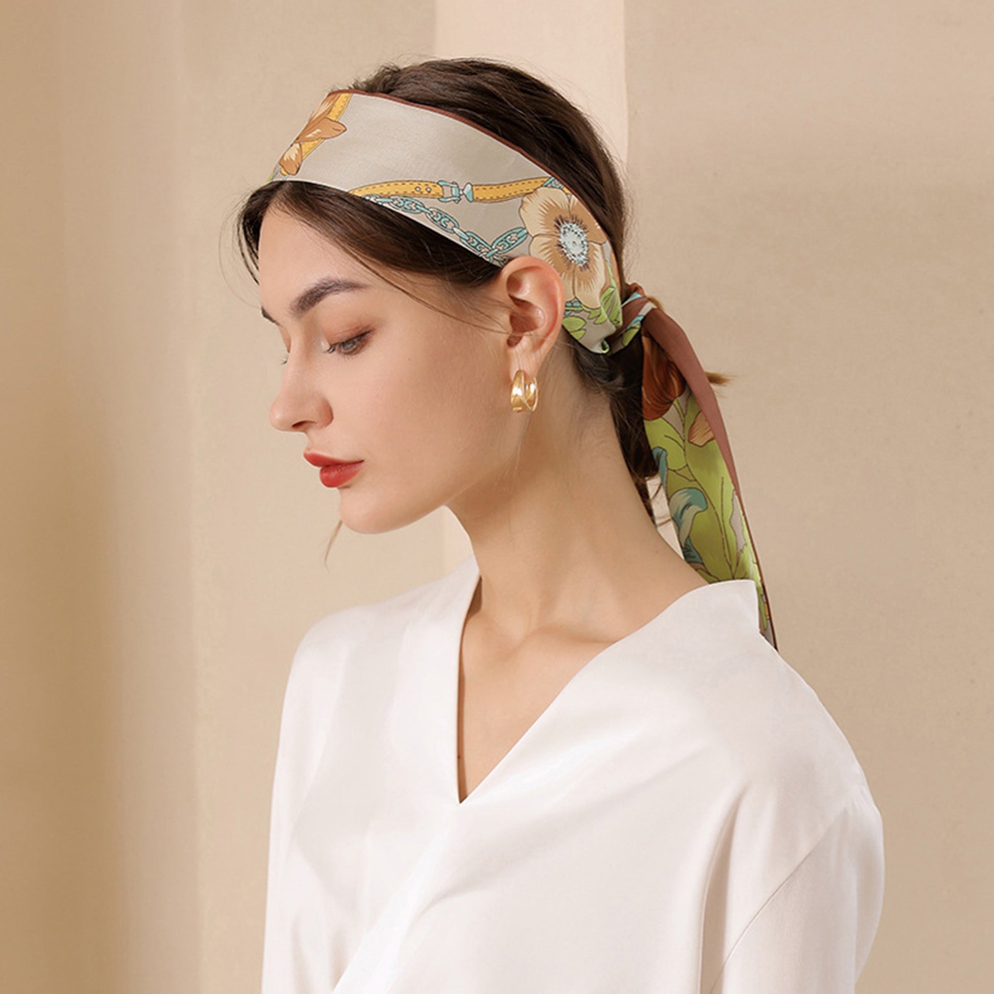 Anna-Kaci Women's Floral Print Silky Scarf with Lightweight Soft Fabric Versatile Square Neck and Hair Accessory