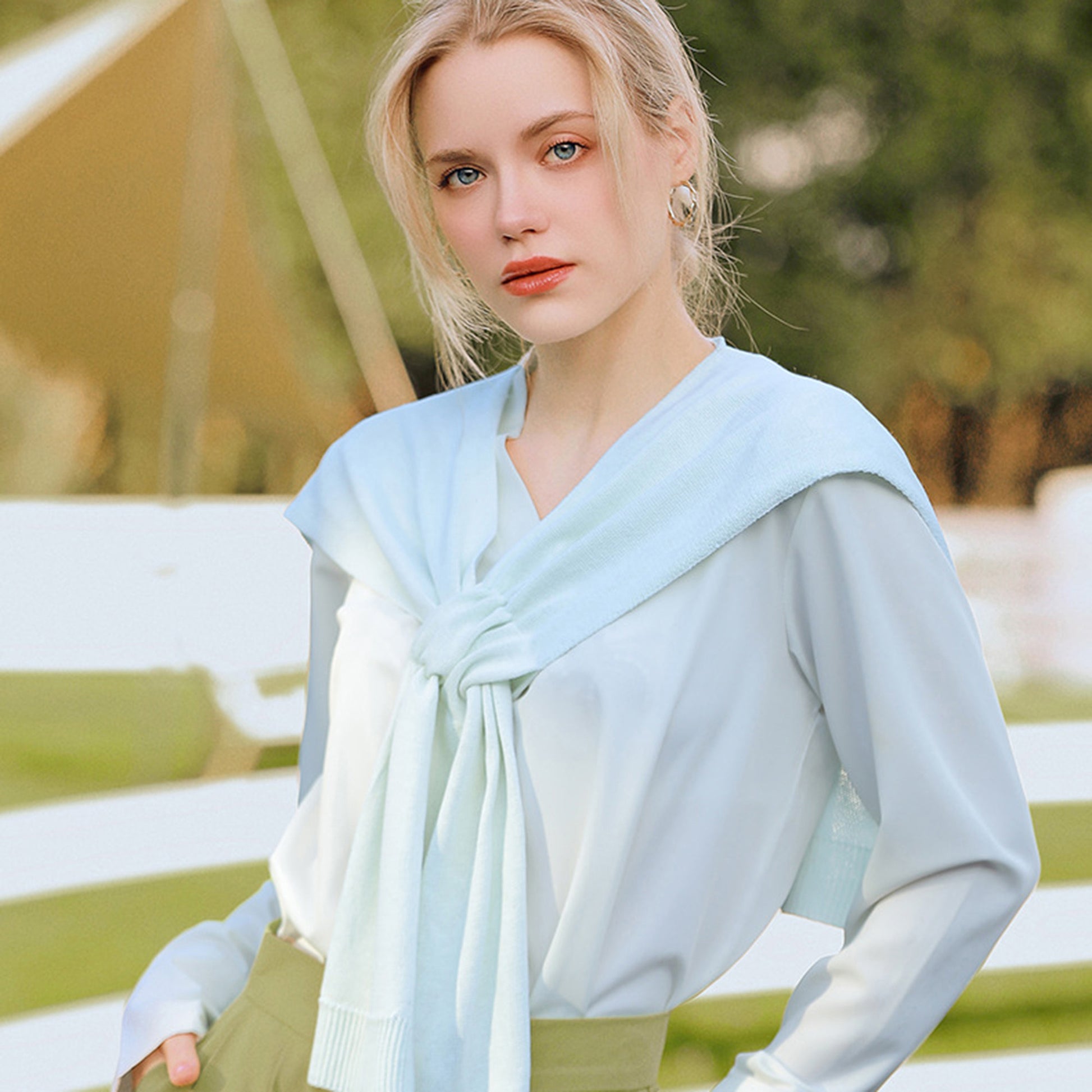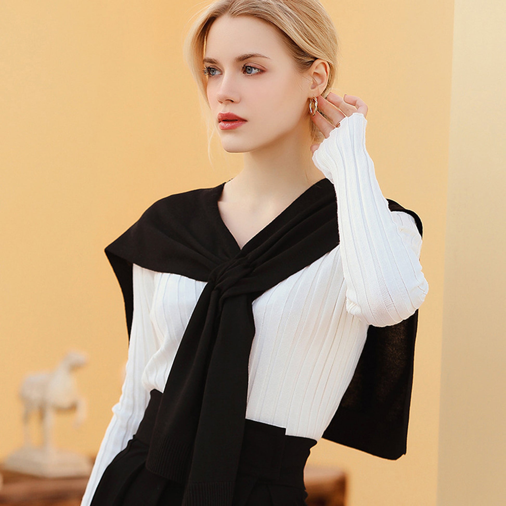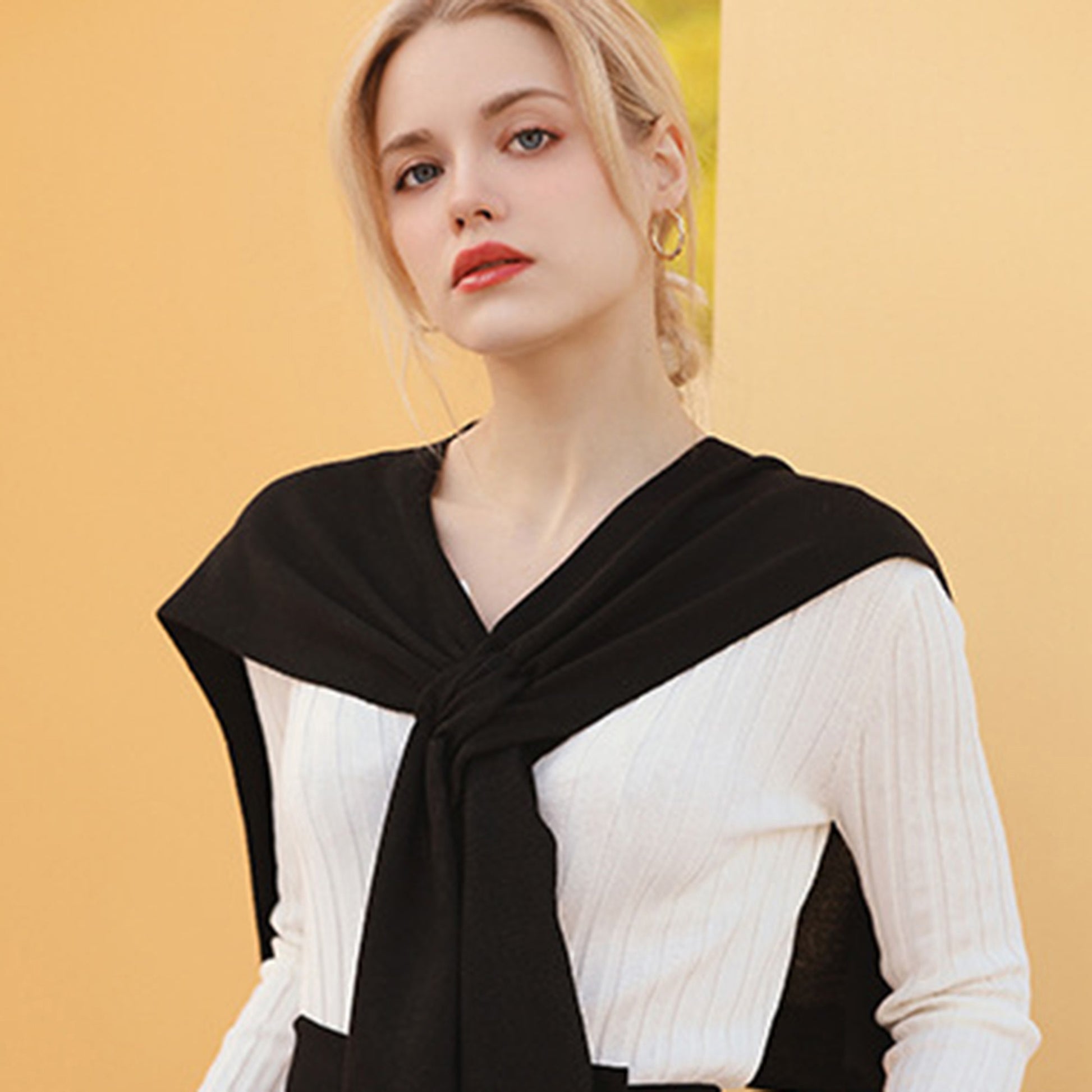 Anna-Kaci Women's Lightweight Knit Scarf Wrap with Soft Stretch Fabric Tie Front Versatile Shawl Layering Accessory