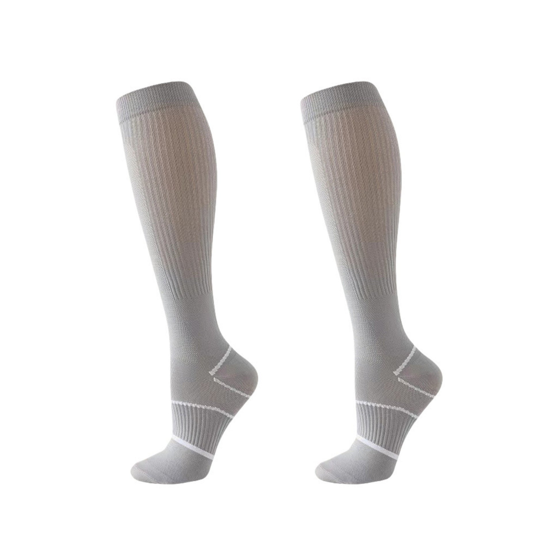 The Anna-Kaci Women's Knee High Compression Socks deliver targeted support and improved circulation for active lifestyles. Designed with ribbed stretch zones and arch reinforcement, these socks help reduce fatigue during workouts, travel, or recovery. The knee-high fit provides full calf coverage, while the breathable fabric keeps you cool and comfortable. Sold as a 2-pack in bold contrasting colors, they offer both function and flair.
