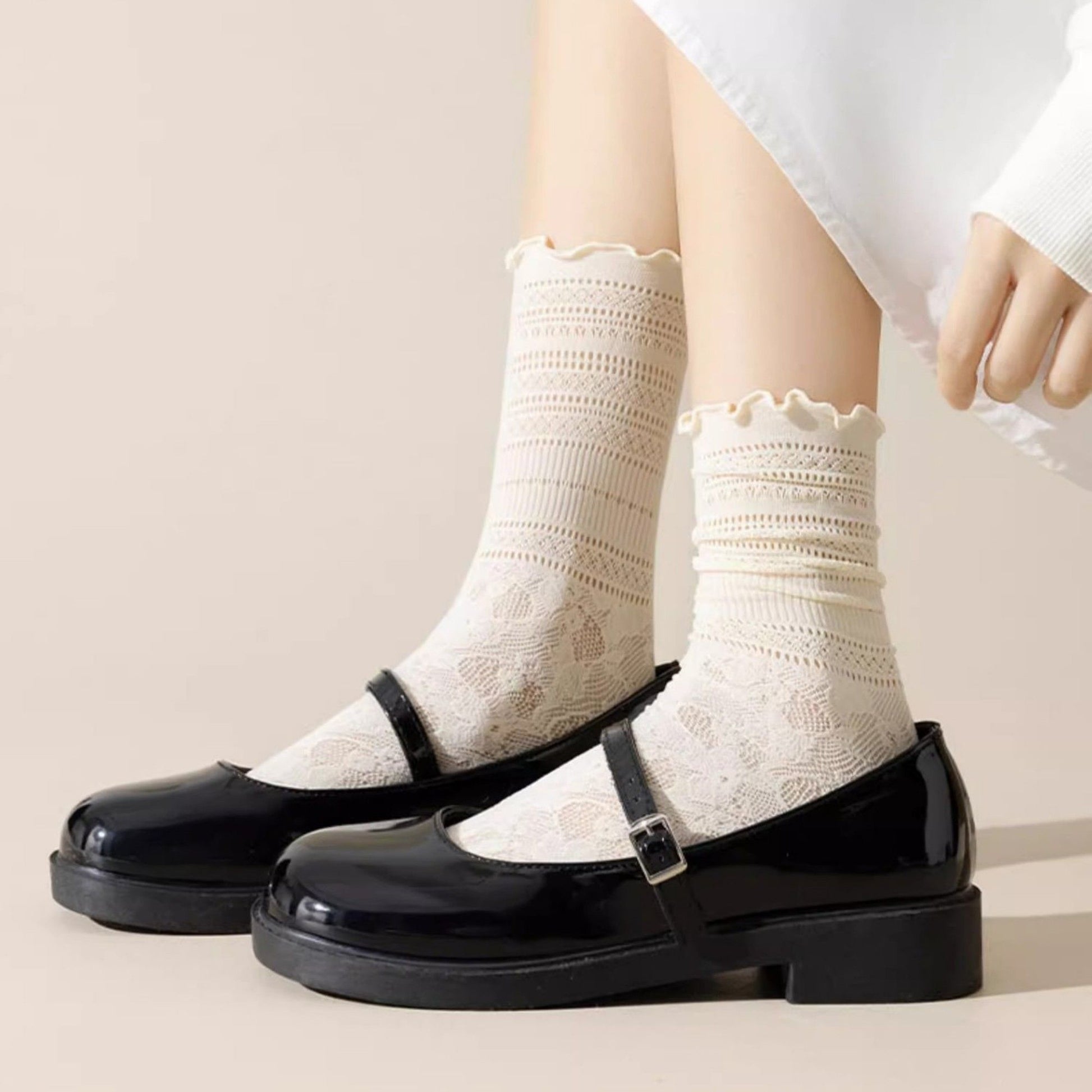 Anna-Kaci Women's Lace Liner Socks with Elastic Cuff and Floral Mesh Detail Soft Stretch 2-Pack
