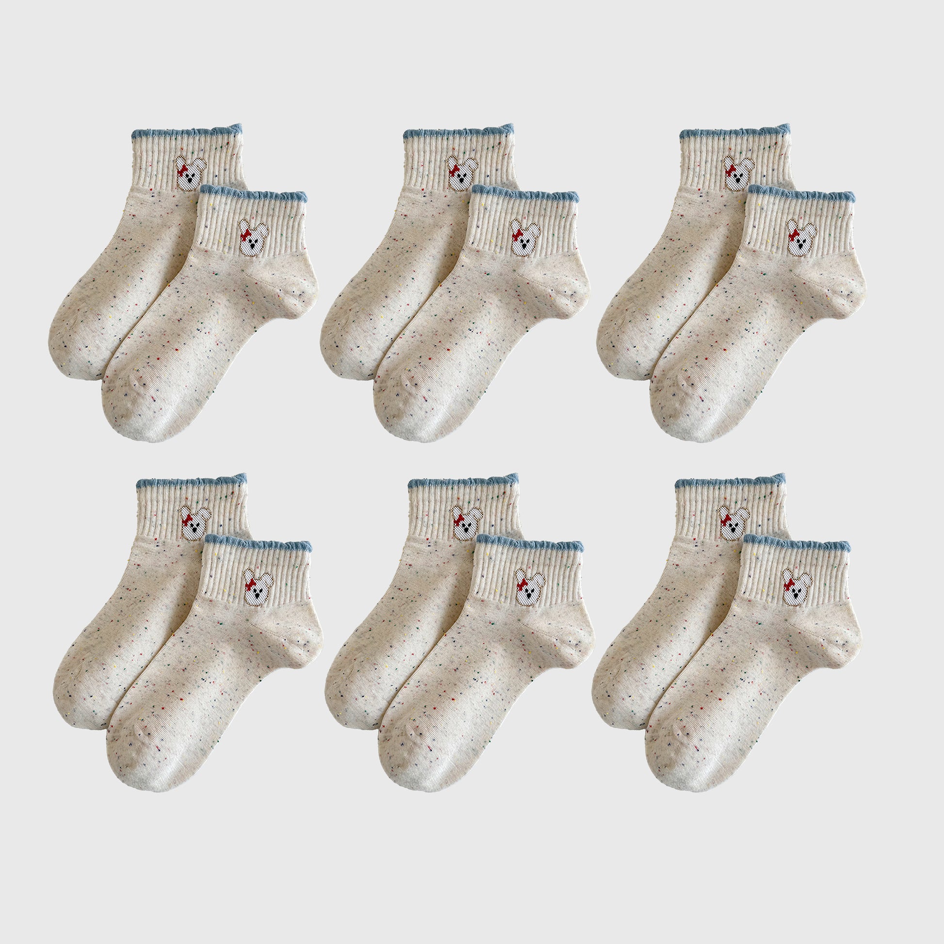 Anna-Kaci Women's Cute Bear Embroidered Speckled Ankle Socks 6pk