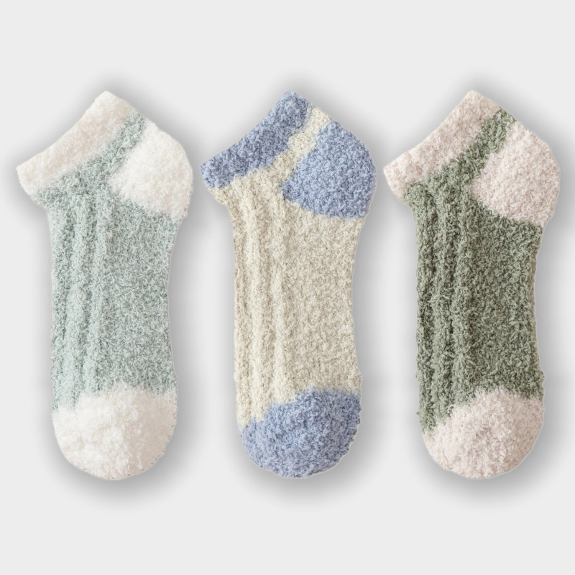 The Anna-Kaci Women's 3-Pair Ultra-Soft Fuzzy Ankle Socks bring warmth and comfort to your everyday routine. Made with plush, fluffy fabric, these socks feature a cozy textured design that keeps your feet snug and pampered. Perfect for lounging at home or layering during colder weather, this set offers both style and practicality in one package.