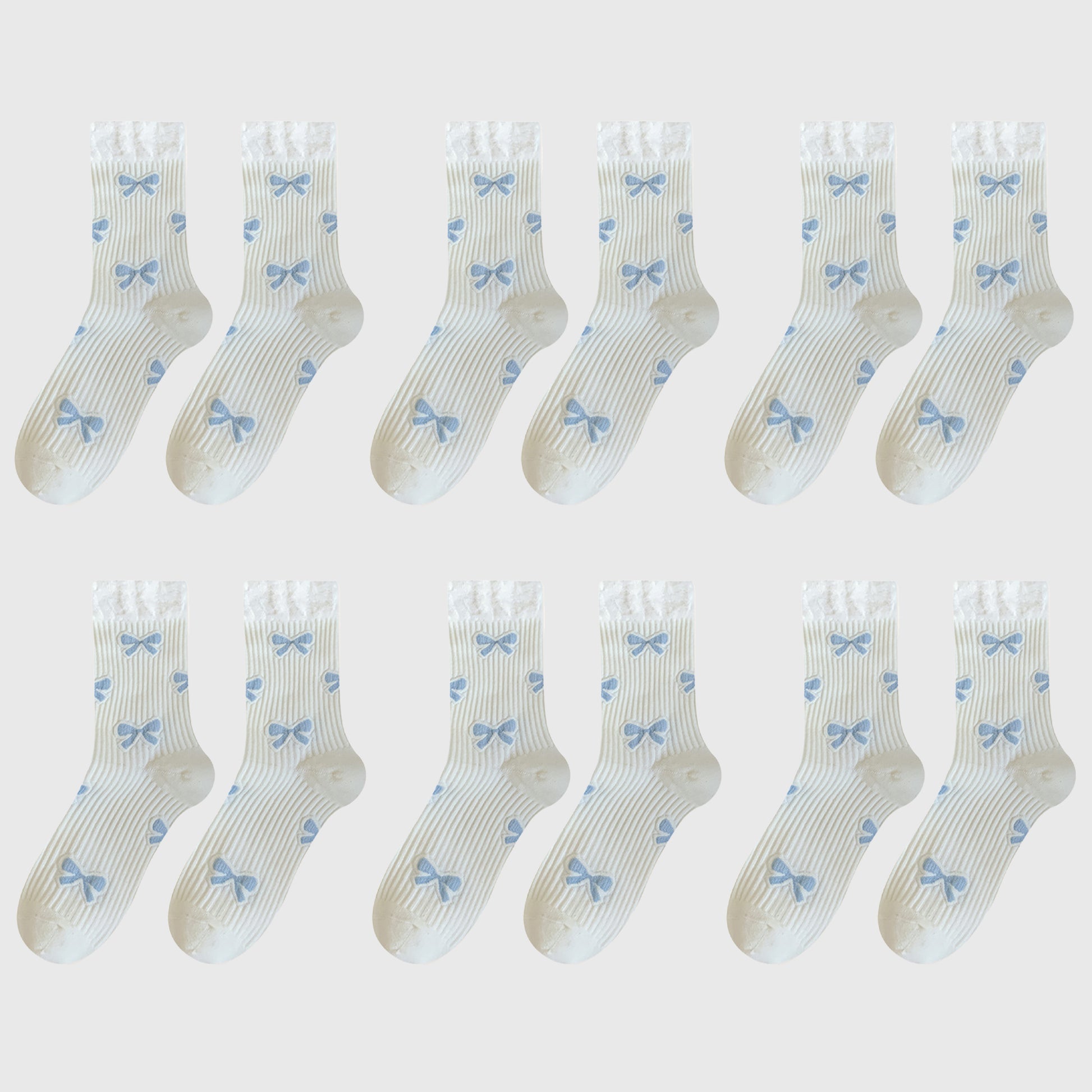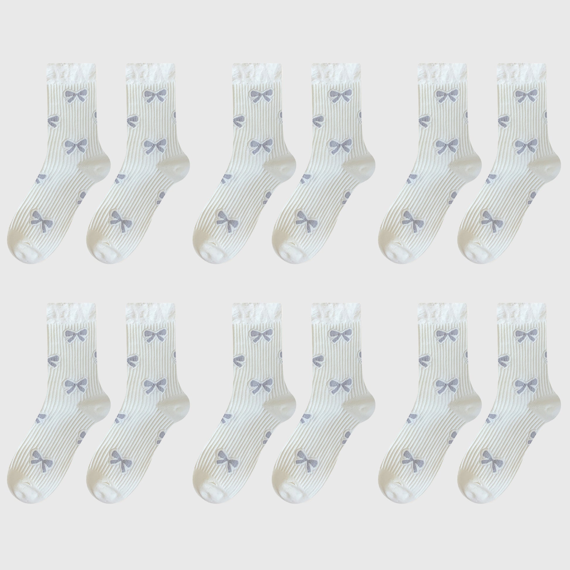 Anna-Kaci Women's 6-Pair Bow Pattern Crew Socks with Fuzzy Ruffled Cuff