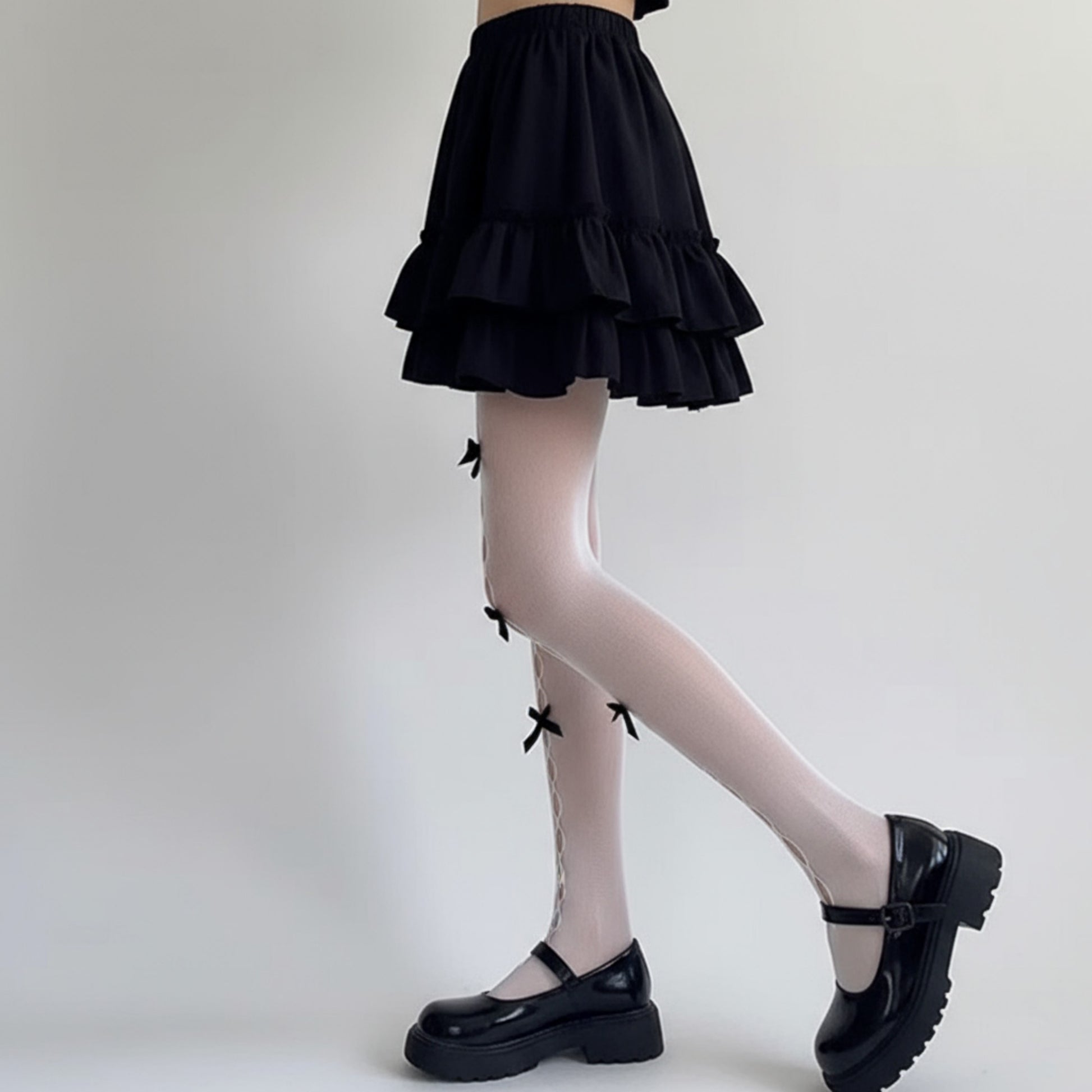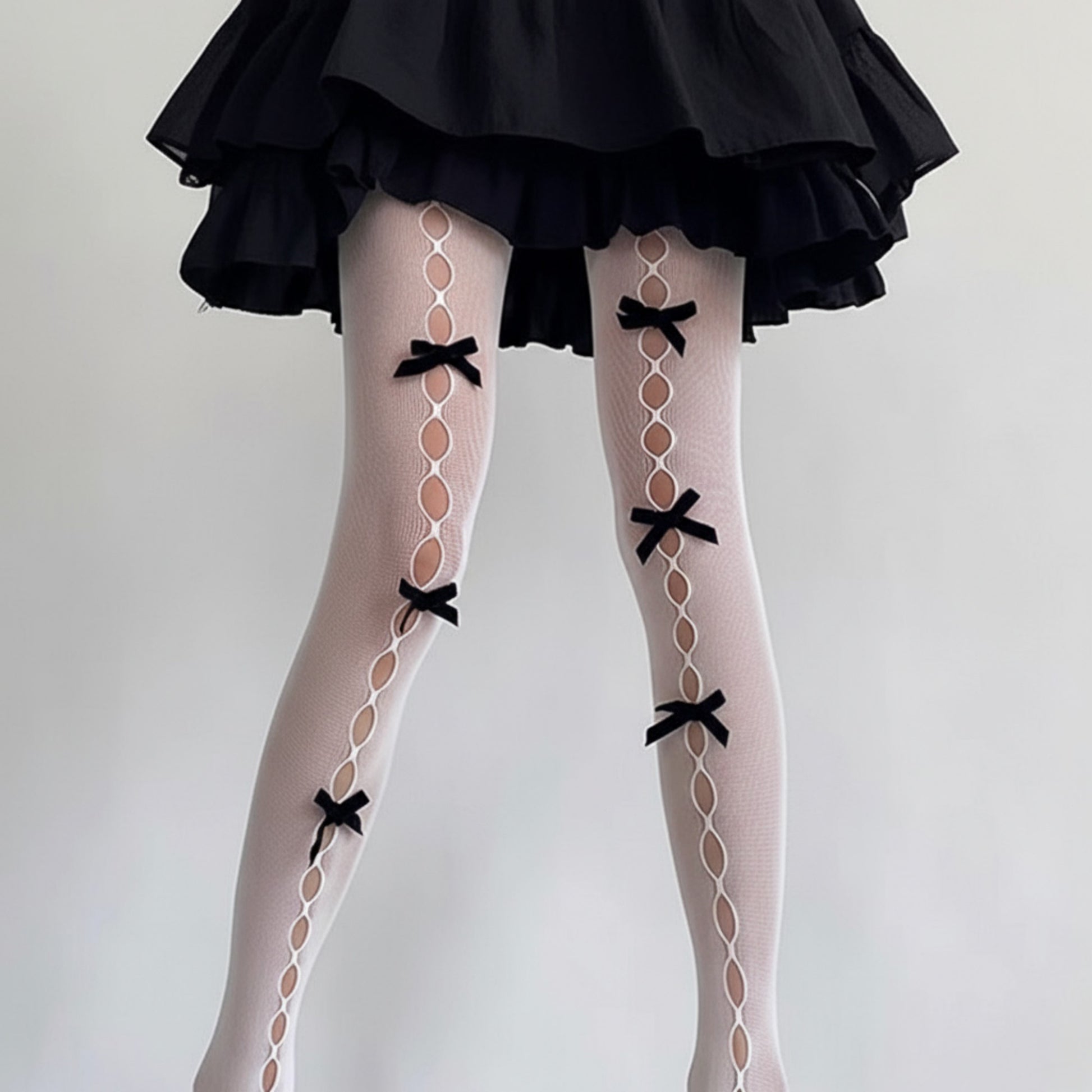 The Anna-Kaci Women's Sheer Tights with Front Bow and Cutout Pattern Design bring a stylish and flirty touch to your legwear collection. These sheer tights feature a vertical line of oval cutouts accented with delicate bow details, creating a unique and eye-catching look. Made from soft, stretchy material, they provide a comfortable fit that flatters your legs while adding texture and charm. Perfect for pairing with skirts or dresses, these tights elevate any outfit with feminine sophistication.