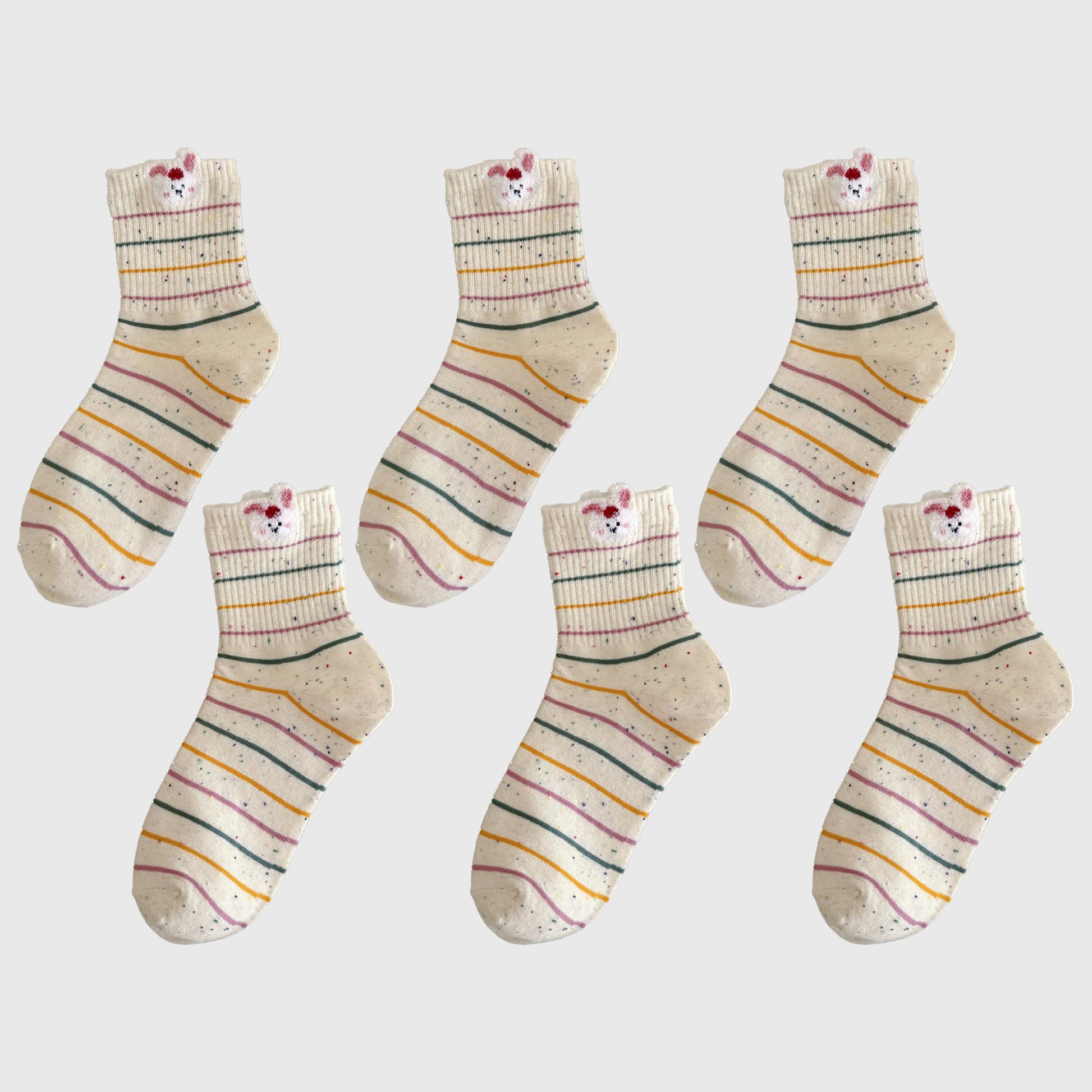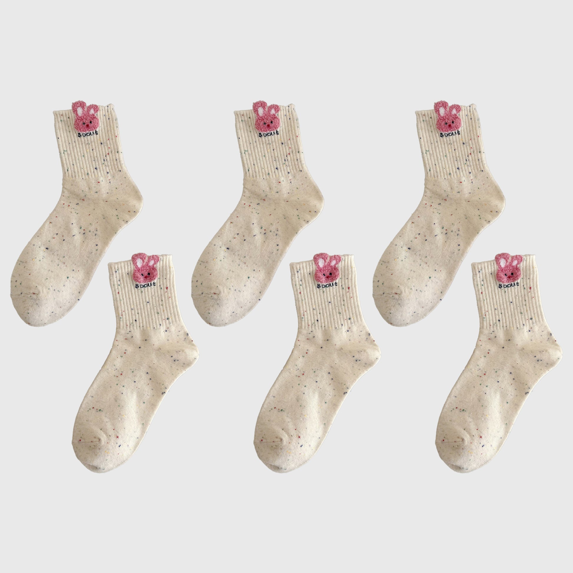 Anna-Kaci Women's 6pk Speckled Socks with Bunny Embroidery - Cute & Comfortable Mid-Calf Socks for Casual Wear