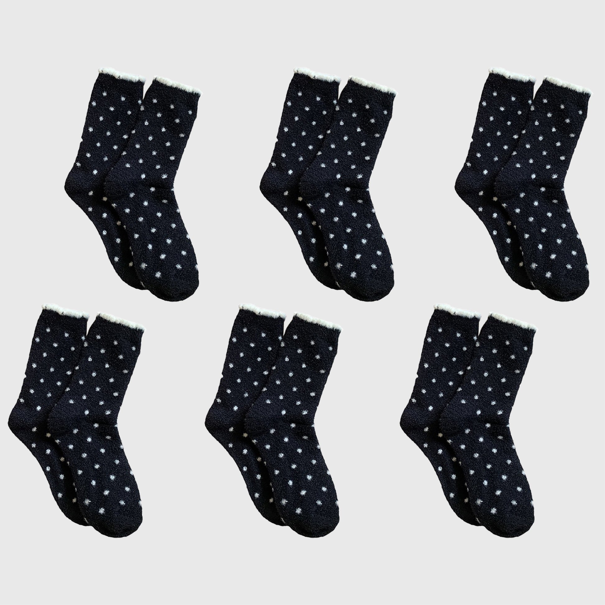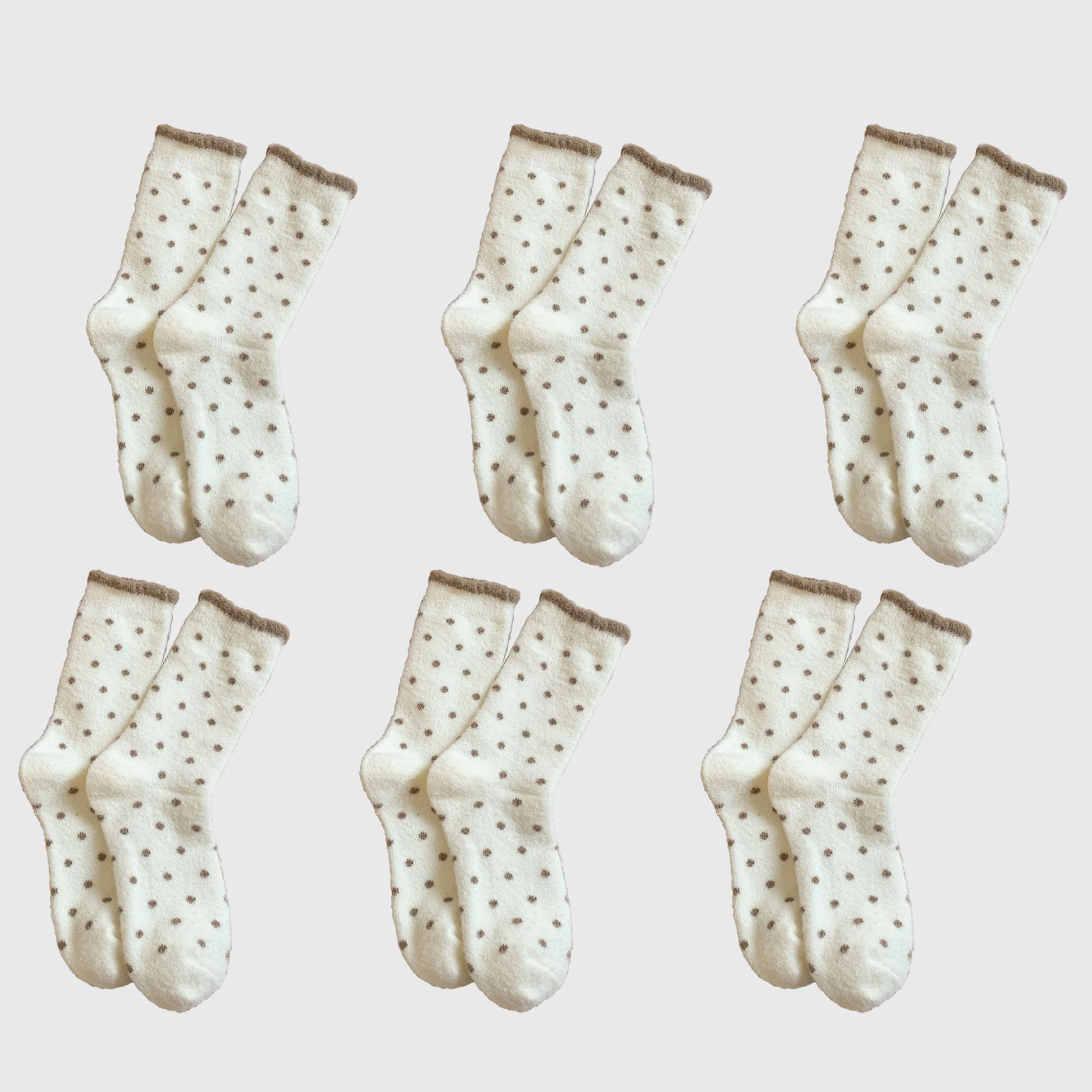 Anna-Kaci Women's 6pk Cozy Polka Dot Fuzzy Socks - Warm & Stylish Mid-Calf Socks for Winter Comfort