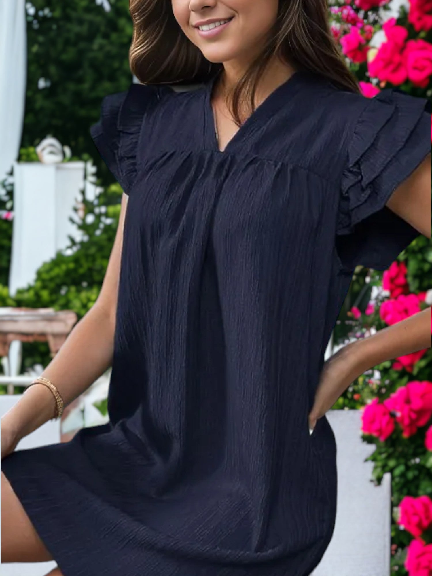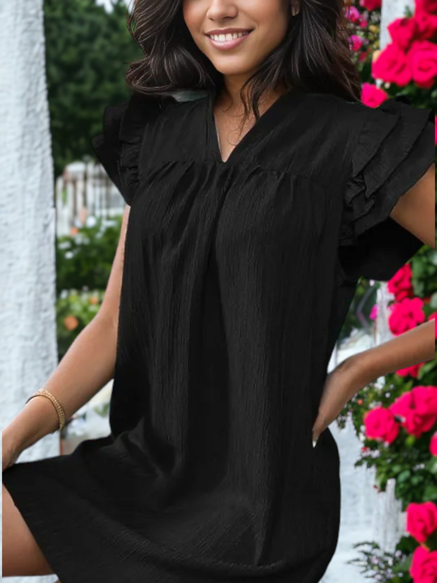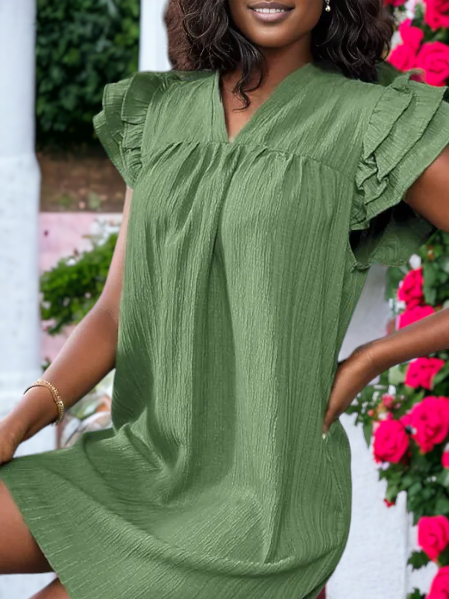 Compra nuestro vestido con cuello alto y mangas con volados para lucir un look elegante y femenino. Este elegante vestido presenta un sofisticado cuello alto y encantadoras mangas con volados, perfecto para cualquier ocasión. Disponible en una variedad de colores y tamaños, este versátil vestido seguramente se convertirá en un básico en tu guardarropa. ¡Mejora tu estilo con esta pieza atemporal hoy mismo!