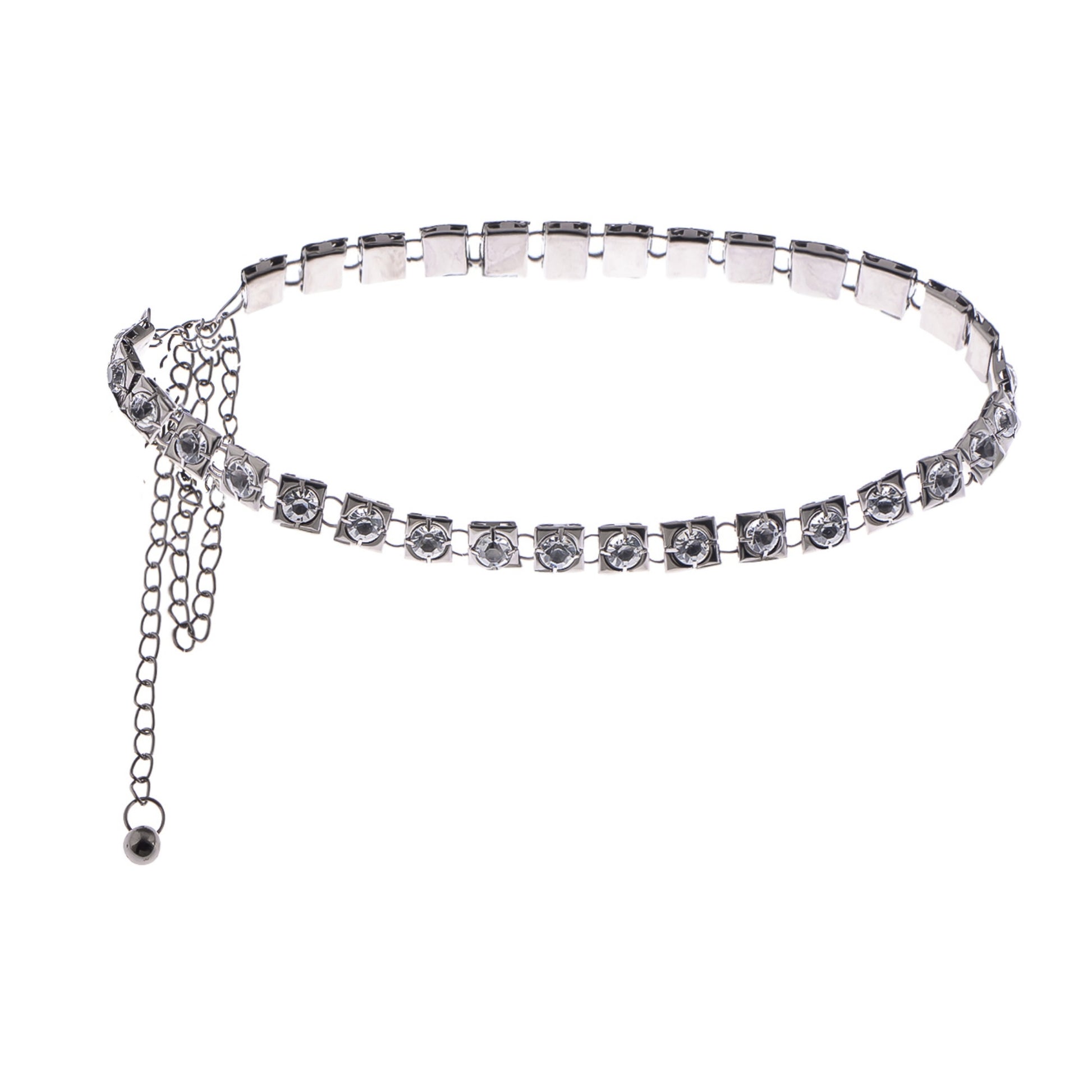 Anna-Kaci Women's Crystal Square Link Waist Chain with Adjustable Extender
