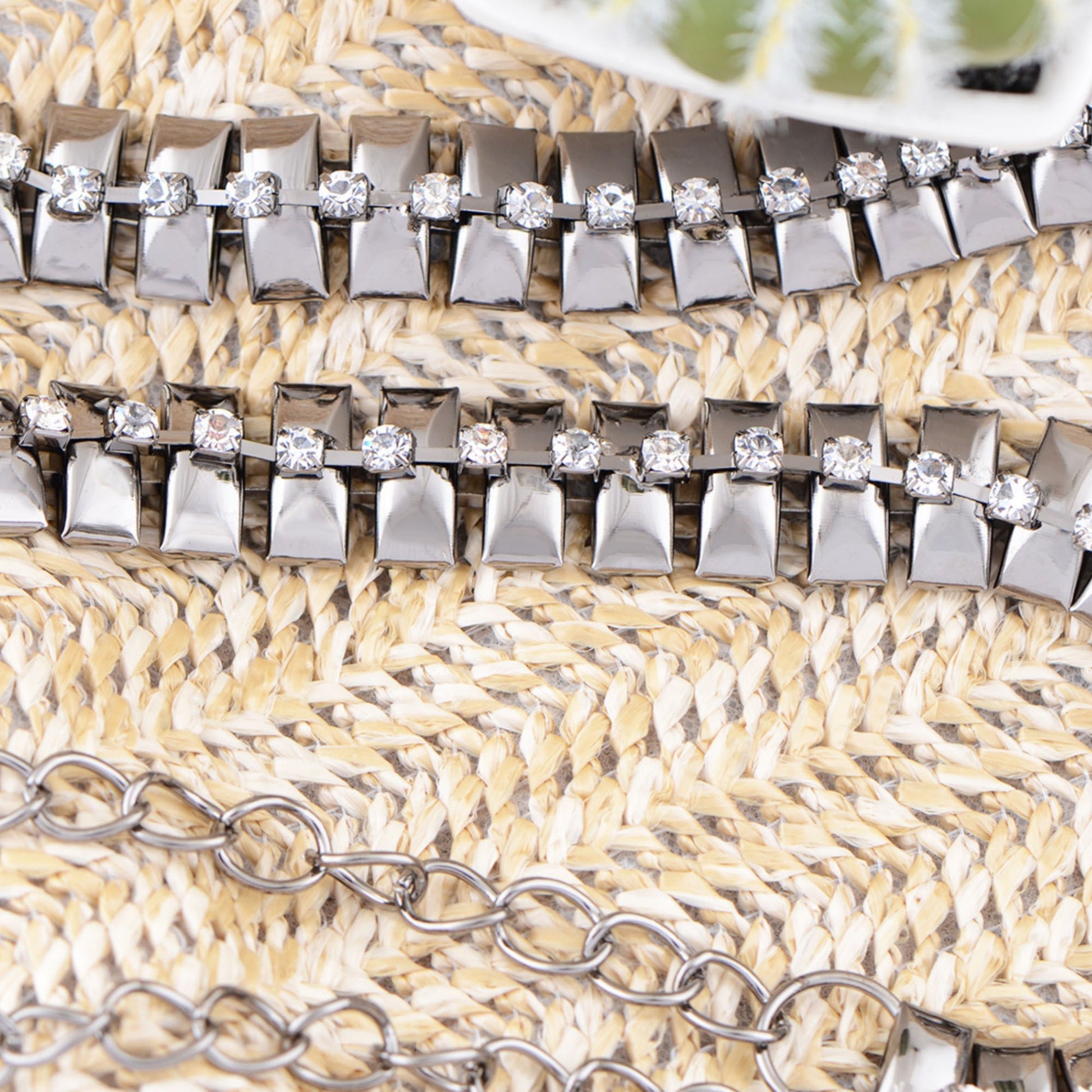 The Anna-Kaci Women's Geometric Waist Chain features an elegant square link design accented with sparkling crystals for a modern, edgy style. Its polished metallic finish offers a bold yet refined look, making it a standout accessory for pairing with dresses, skirts, or layered outfits. The adjustable extender chain ensures a comfortable and customizable fit, bringing versatility to your jewelry collection.