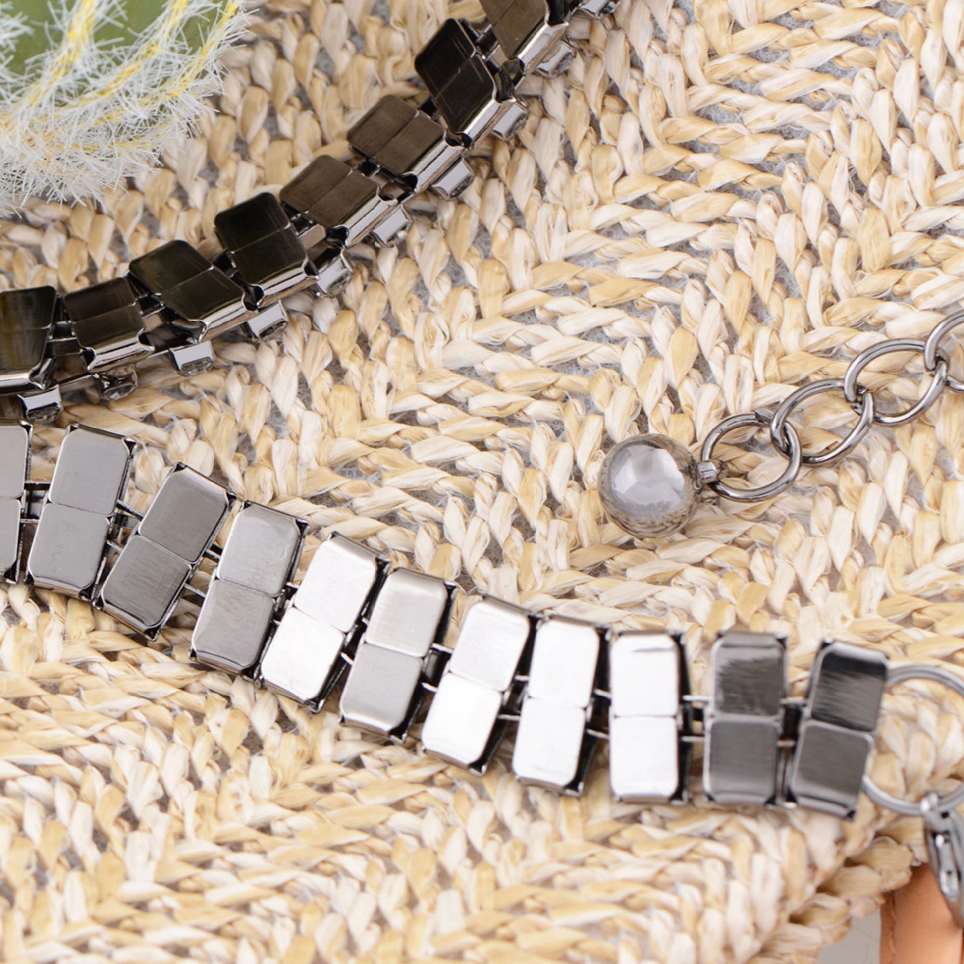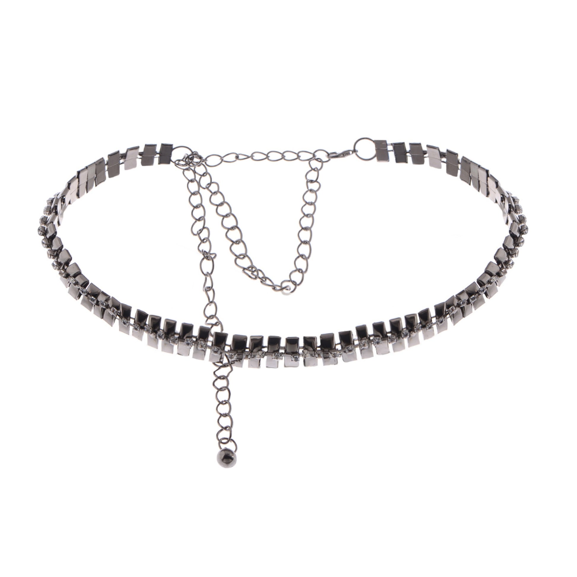 Anna-Kaci Women's Geometric Waist Chain with Square Link Design and Crystal Accents