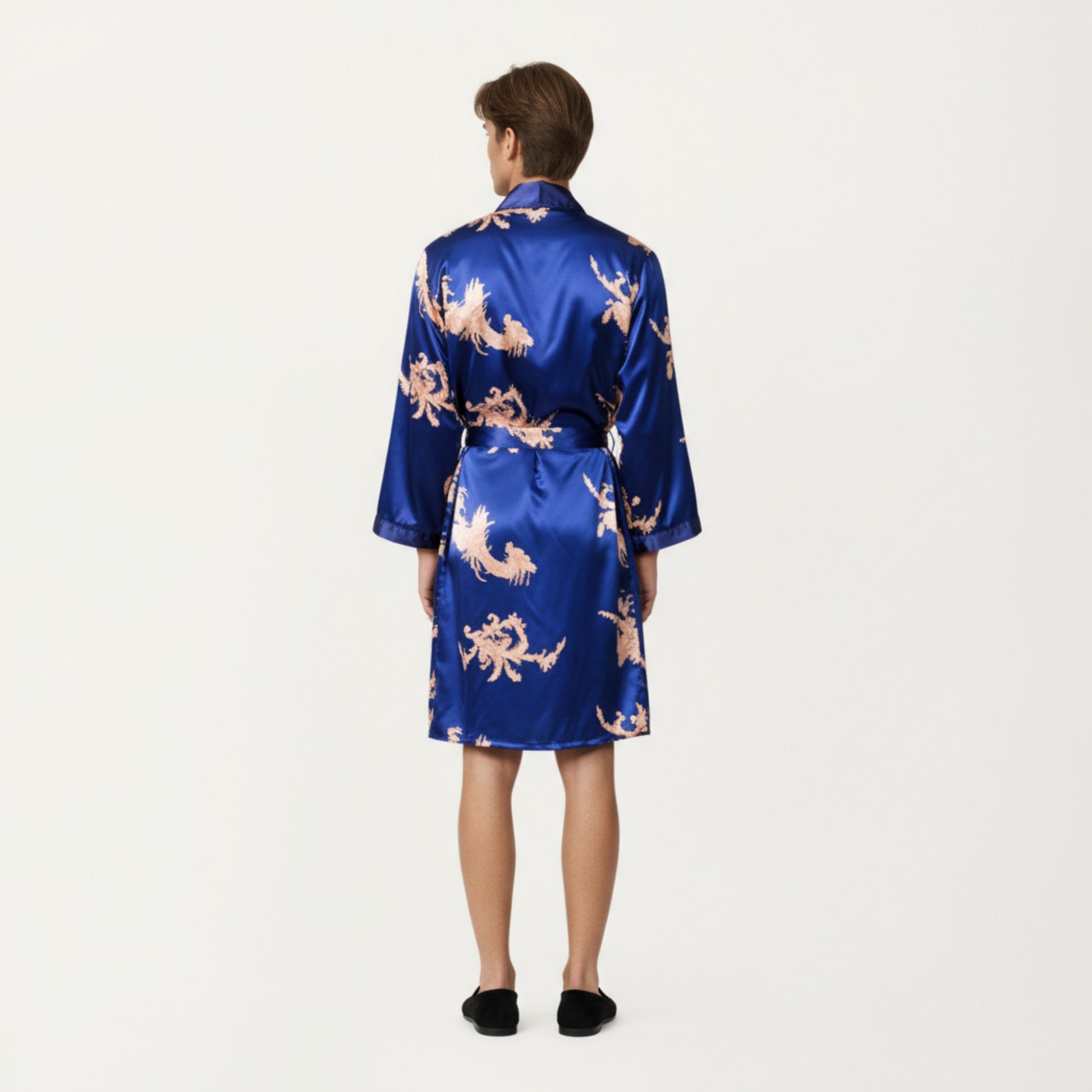 Anna-Kaci Men's Satin Robe with Baroque Print Shawl Collar and Waist Tie