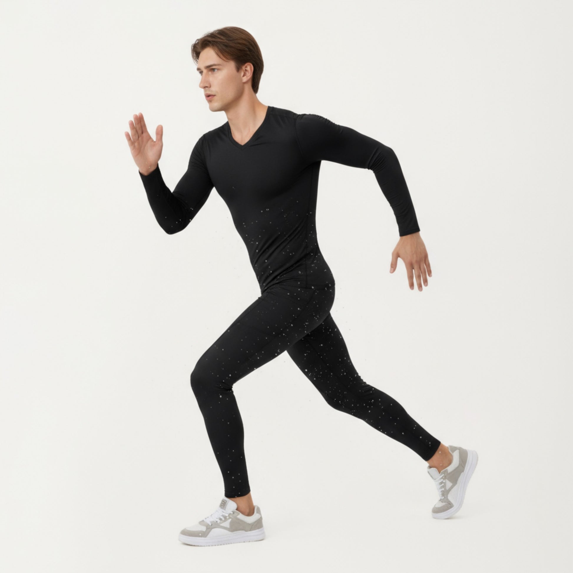 Anna-Kaci Men's Long Sleeve Compression Athletic Shirt with Stretch Fabric and V-Neck Design
