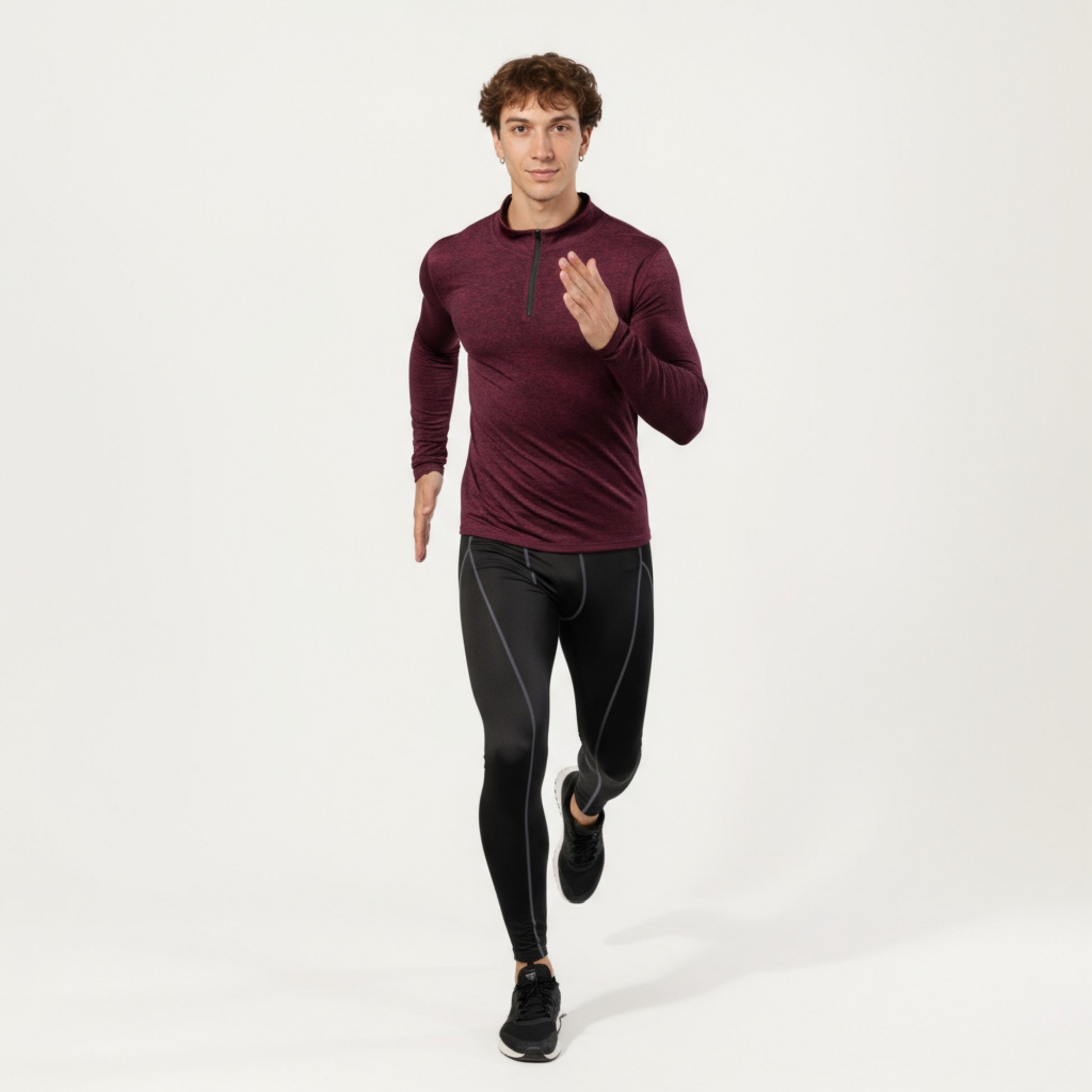 Anna-Kaci Men's Long Sleeve Quarter Zip Compression Athletic Shirt with Mock Neck and Performance Stretch Fabric