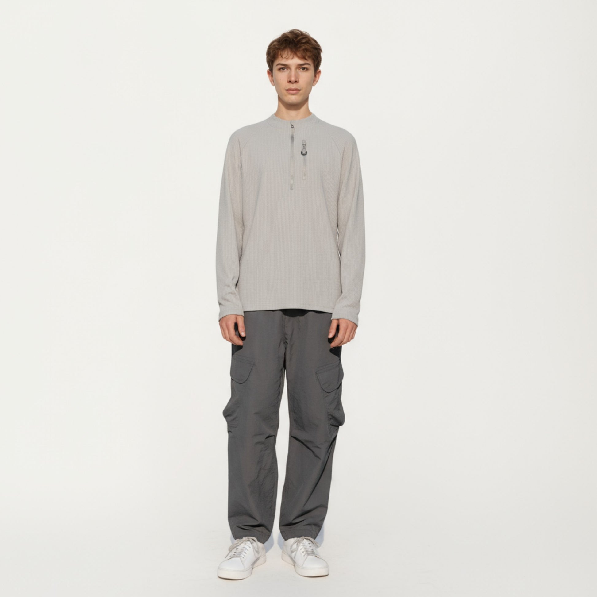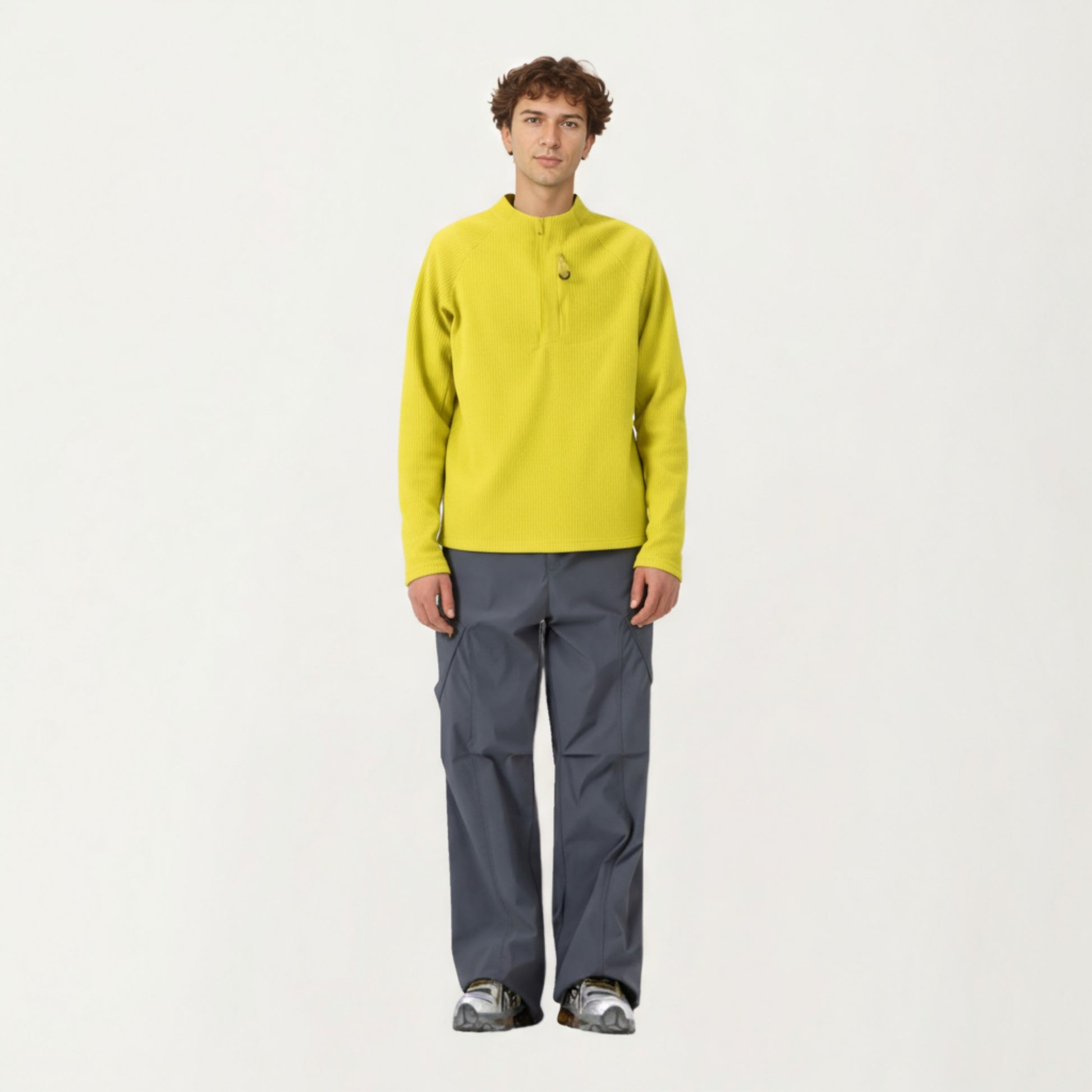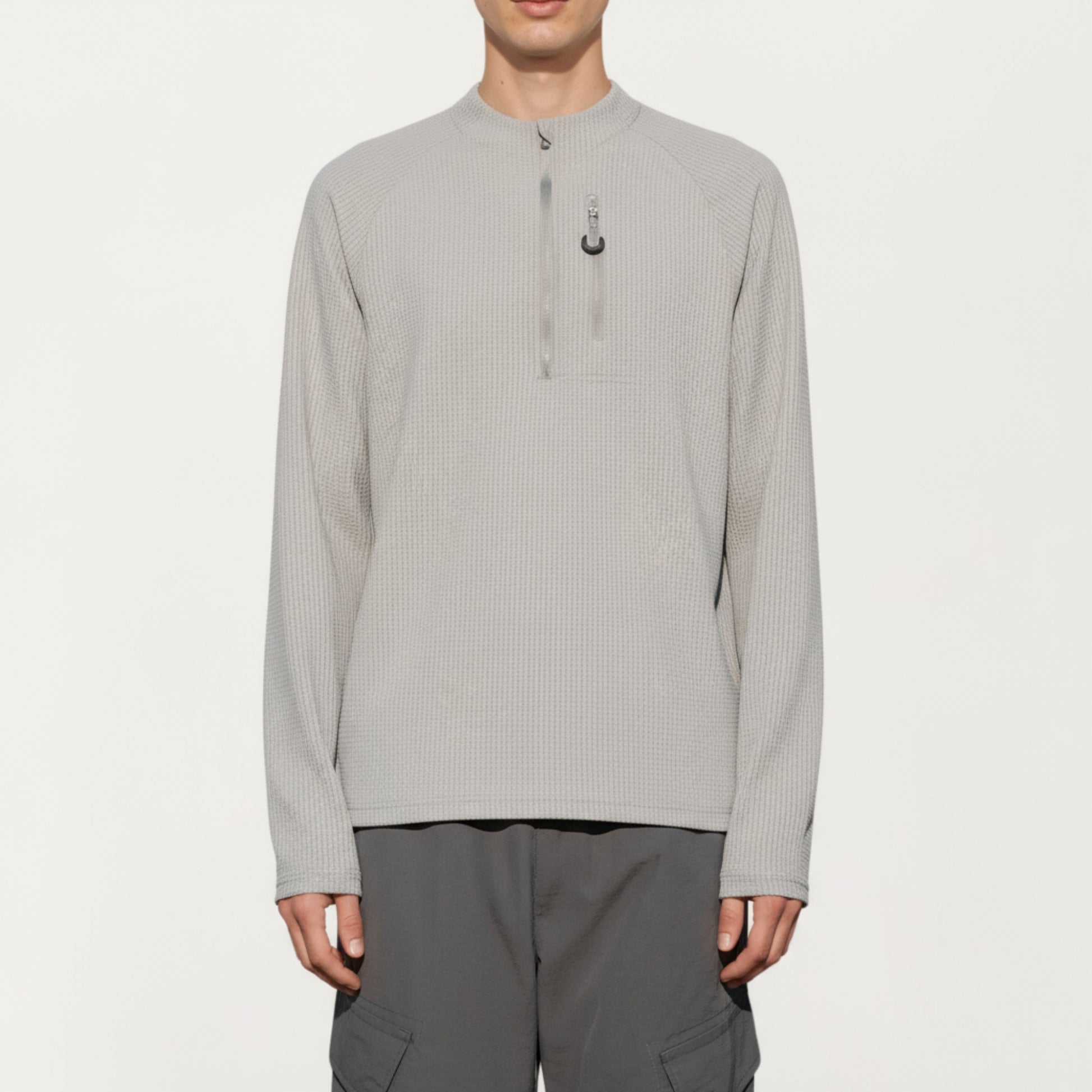 Anna-Kaci Men's Long Sleeve Quarter Zip Fleece Pullover with Mock Neck and Textured Waffle Knit Fabric