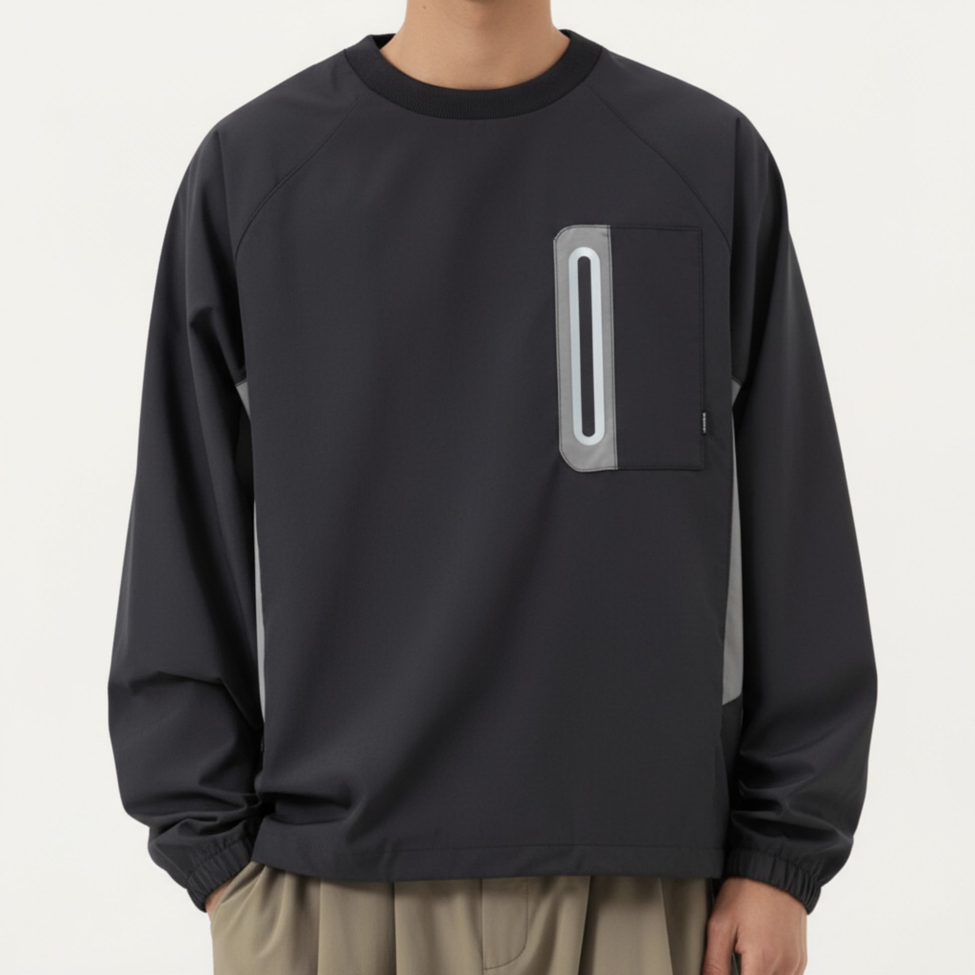 Anna-Kaci Men's Long Sleeve Pullover Crew Neck Top with Contrast Zipper Chest Pocket and Elastic Cuffs