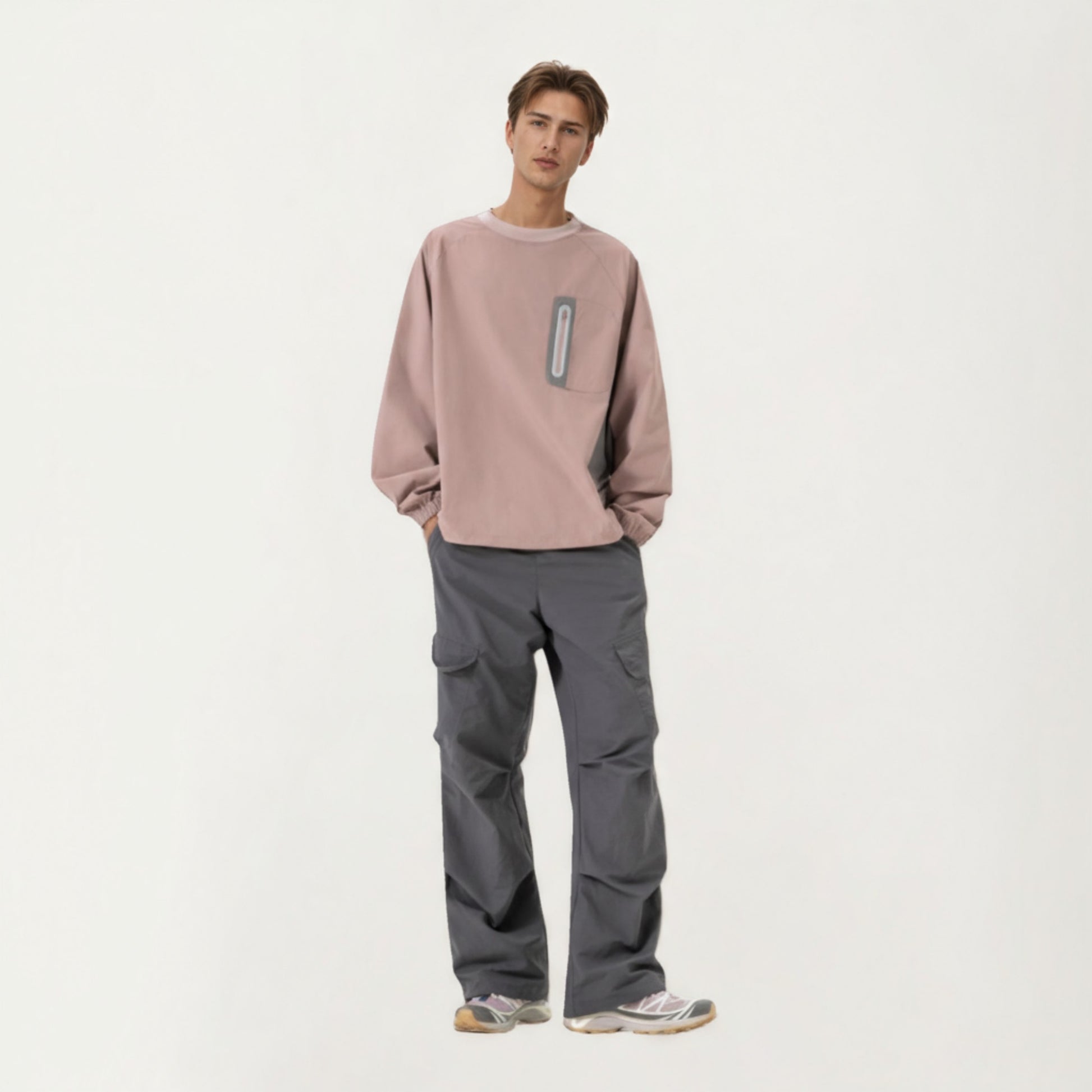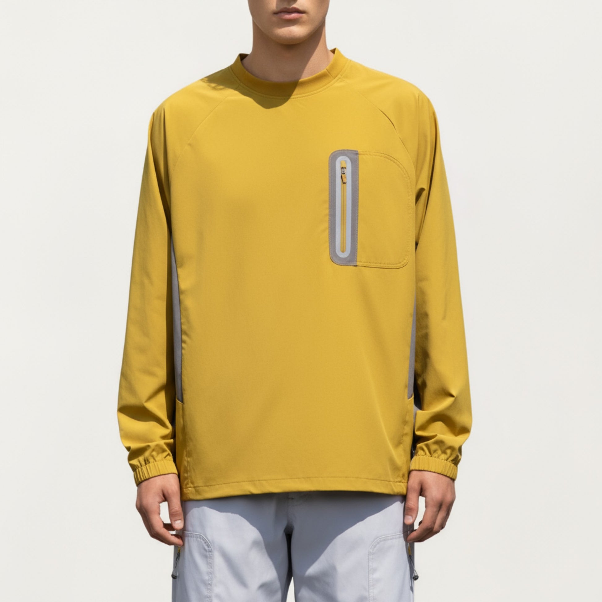 The Anna-Kaci Men's Long Sleeve Pullover Crew Neck Top combines minimalist design with practical functionality. Crafted from smooth, lightweight fabric, this pullover features a relaxed fit with a contrast zipper chest pocket that adds a modern, utilitarian touch. The elastic cuffs provide a comfortable, stay-put fit, while the clean silhouette makes it a versatile piece for casual wear or light outdoor activities.