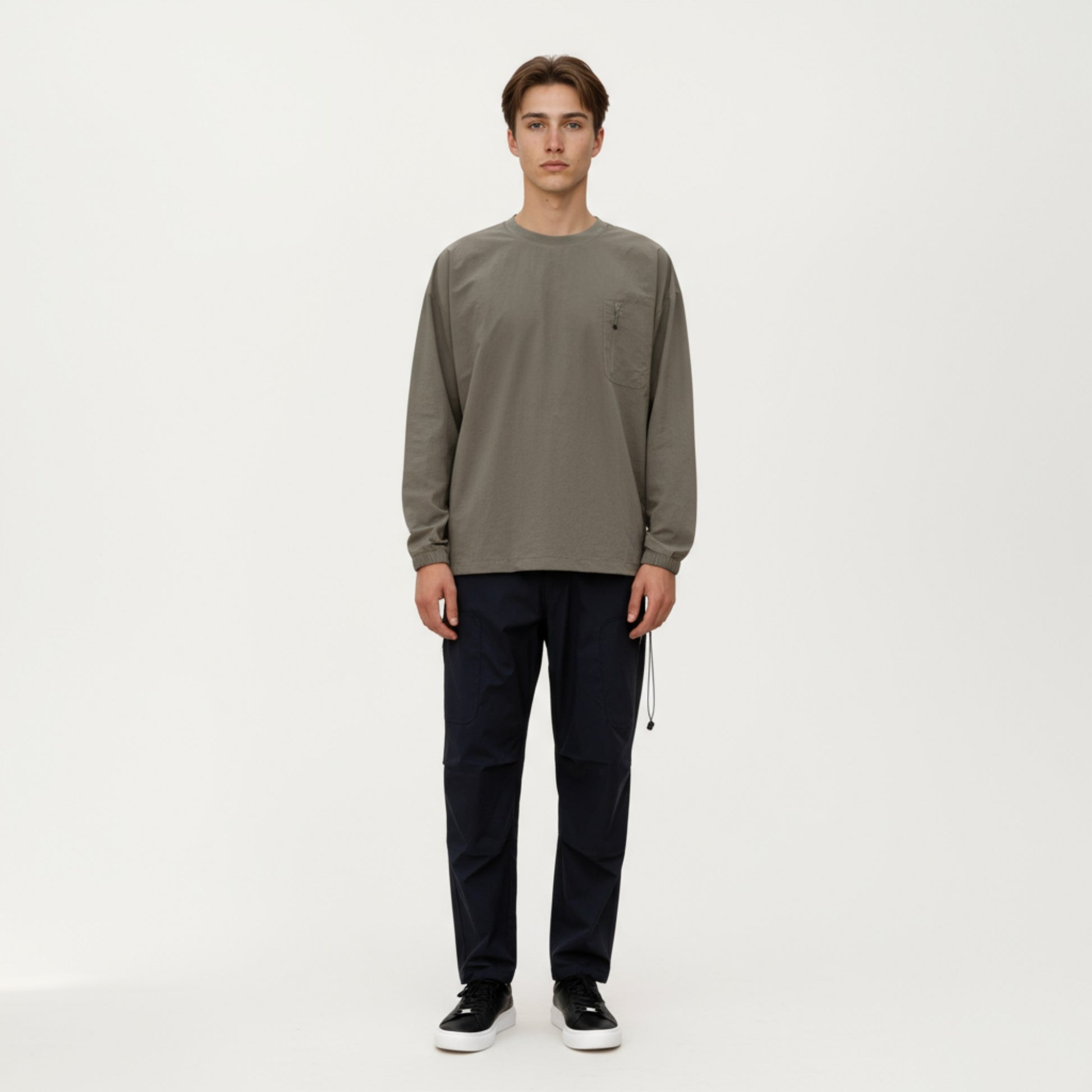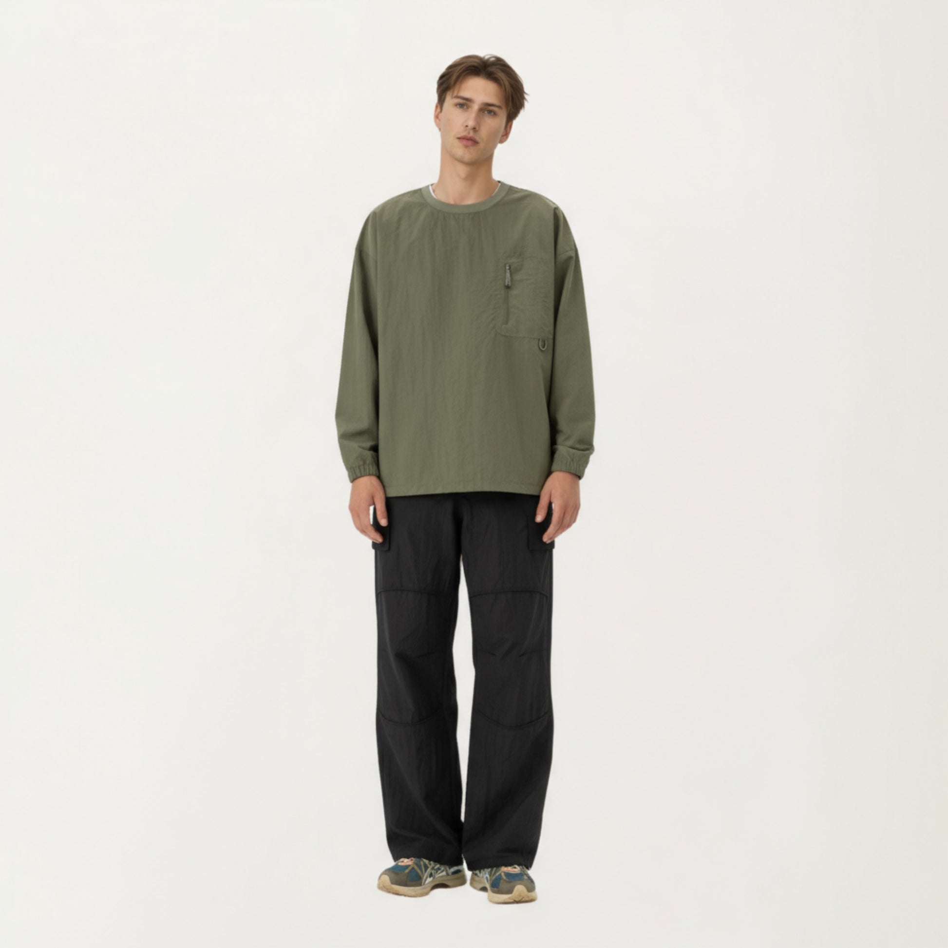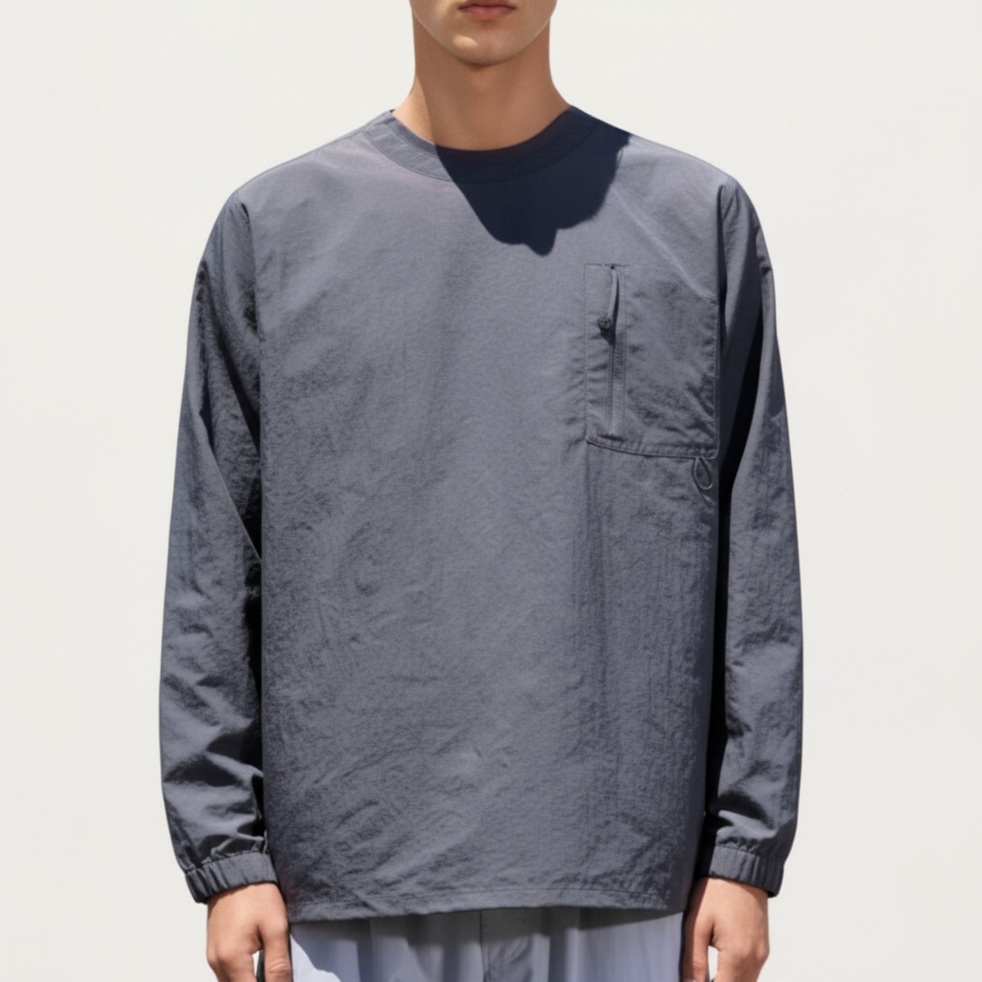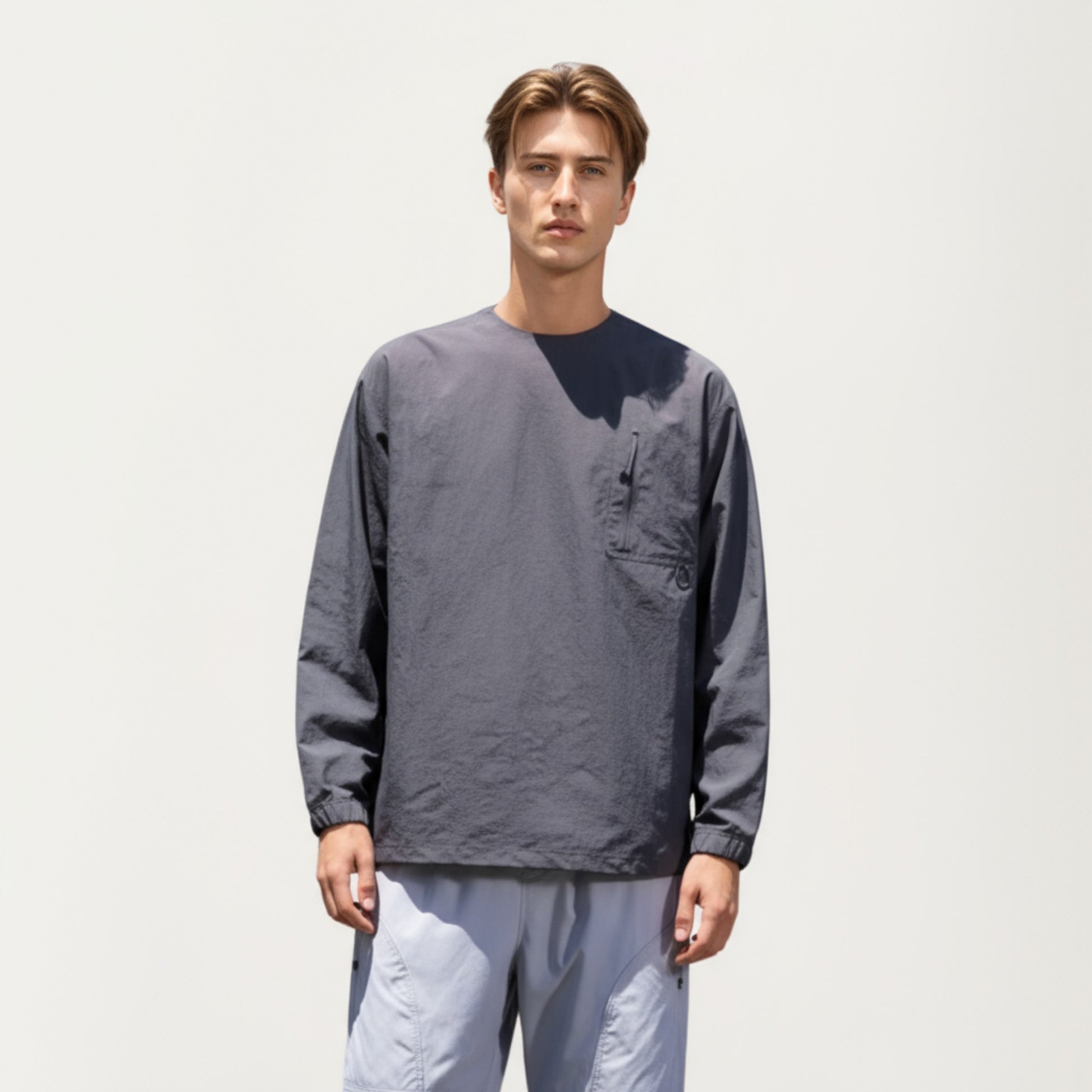 The Anna-Kaci Men's Long Sleeve Crew Neck Utility Pullover combines effortless comfort with functional details. Made from lightweight, durable fabric, this top features a secure zippered chest pocket and a small side loop for added practicality. The relaxed fit and elastic cuffs create a comfortable yet structured silhouette, making it ideal for layering or standalone wear. Perfect for casual outings or light outdoor activities with a modern, utilitarian edge.