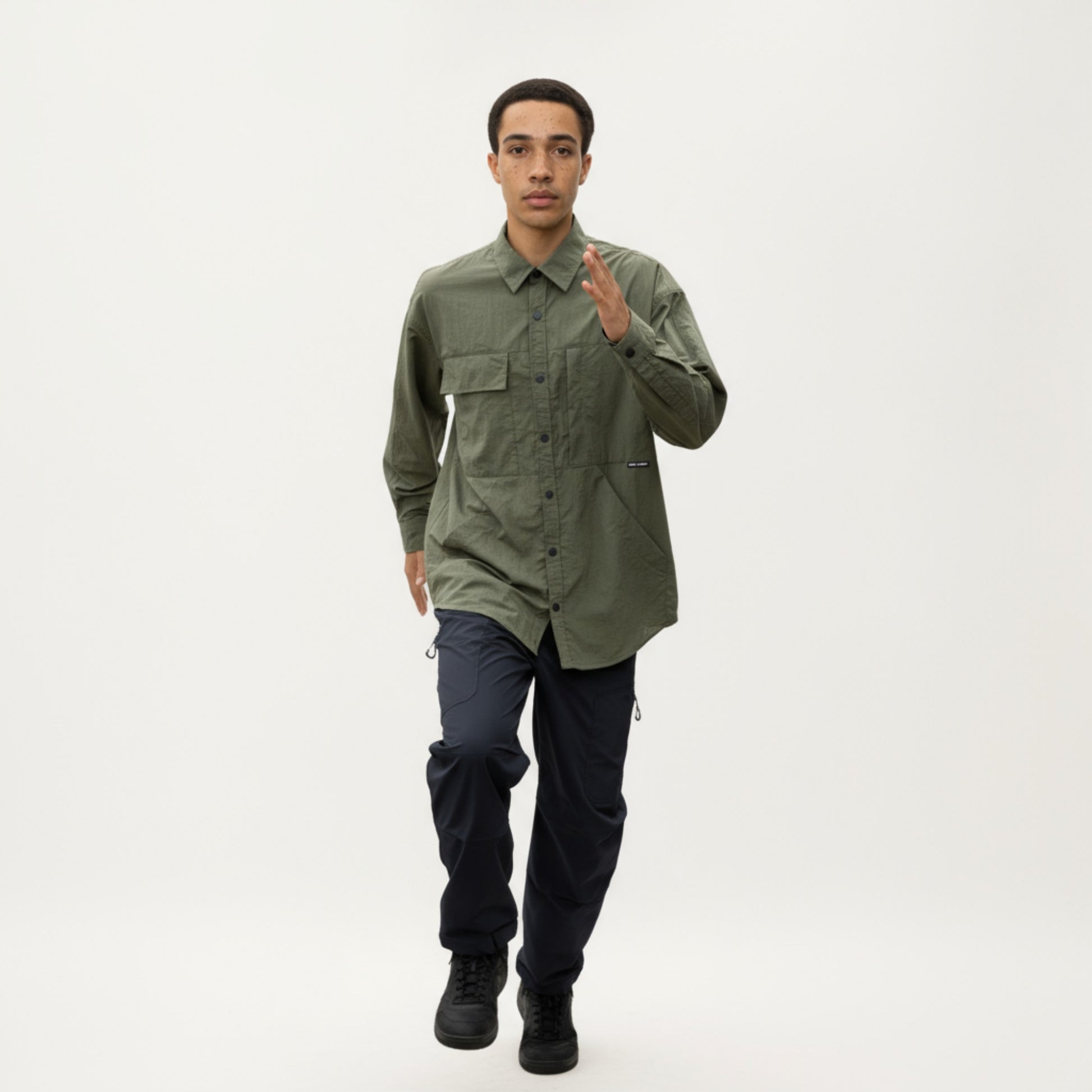 The Anna-Kaci Men's Long Sleeve Button-Up Utility Shirt offers a refined take on classic workwear style. Crafted from lightweight yet durable woven fabric, this shirt features a structured fit with a button-down front and multiple functional pockets. Its clean design and minimal stitching detail lend a modern, utilitarian look perfect for layering or standalone wear. Ideal for casual outings or work-inspired streetwear, this shirt blends practicality with contemporary style.