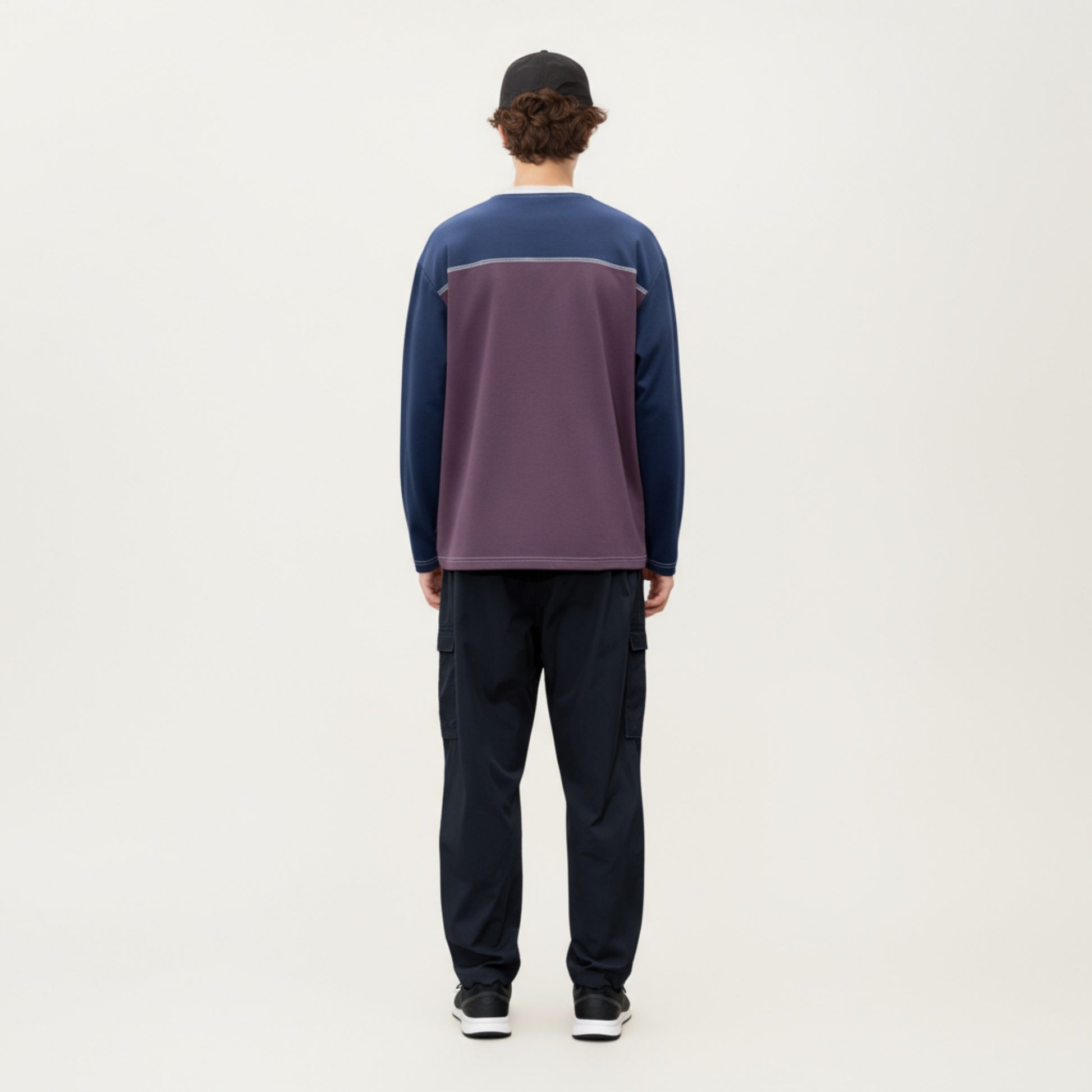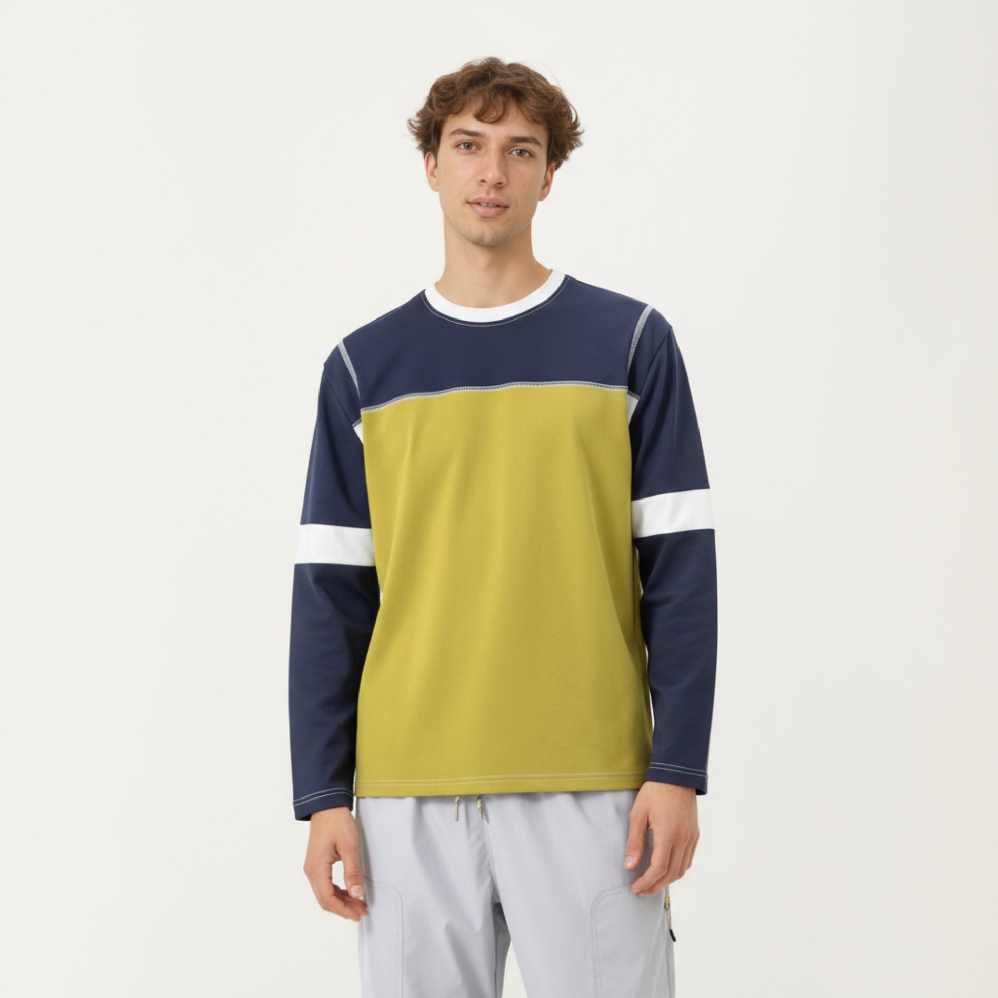 Anna-Kaci Men's Long Sleeve Color Block Crew Neck Pullover with Contrast Stitching and Relaxed Fit