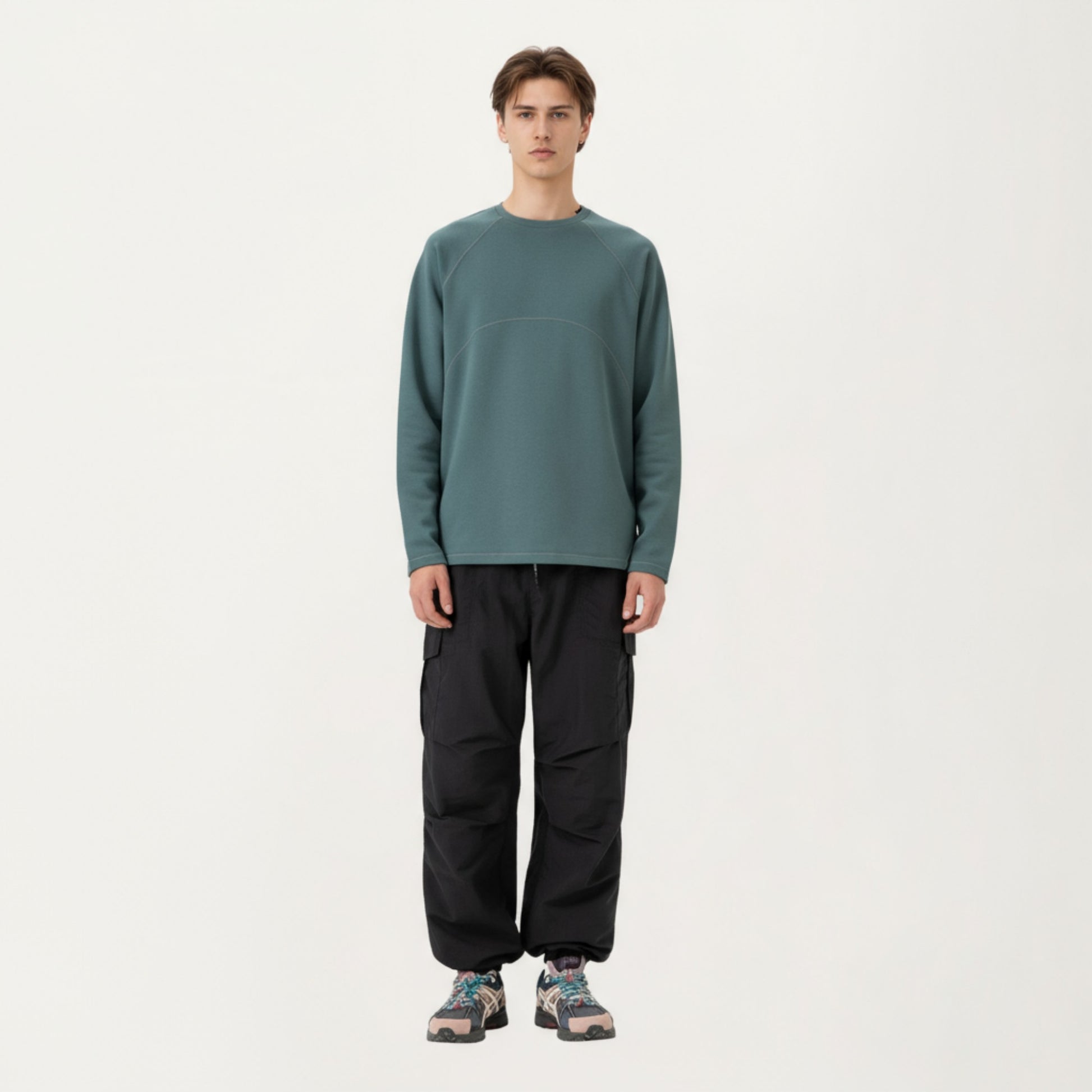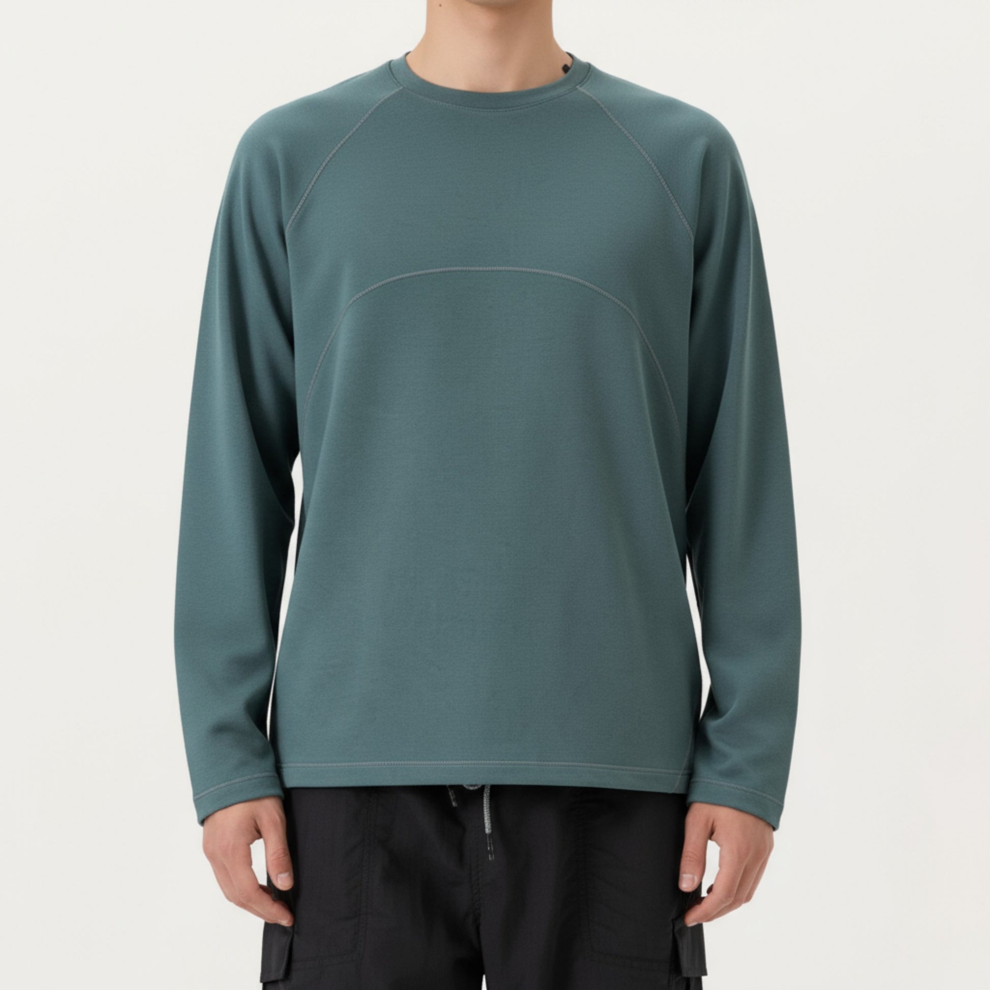 Anna-Kaci Men's Long Sleeve Crew Neck Pullover with Raglan Seams and Subtle Front Stitch Detail
