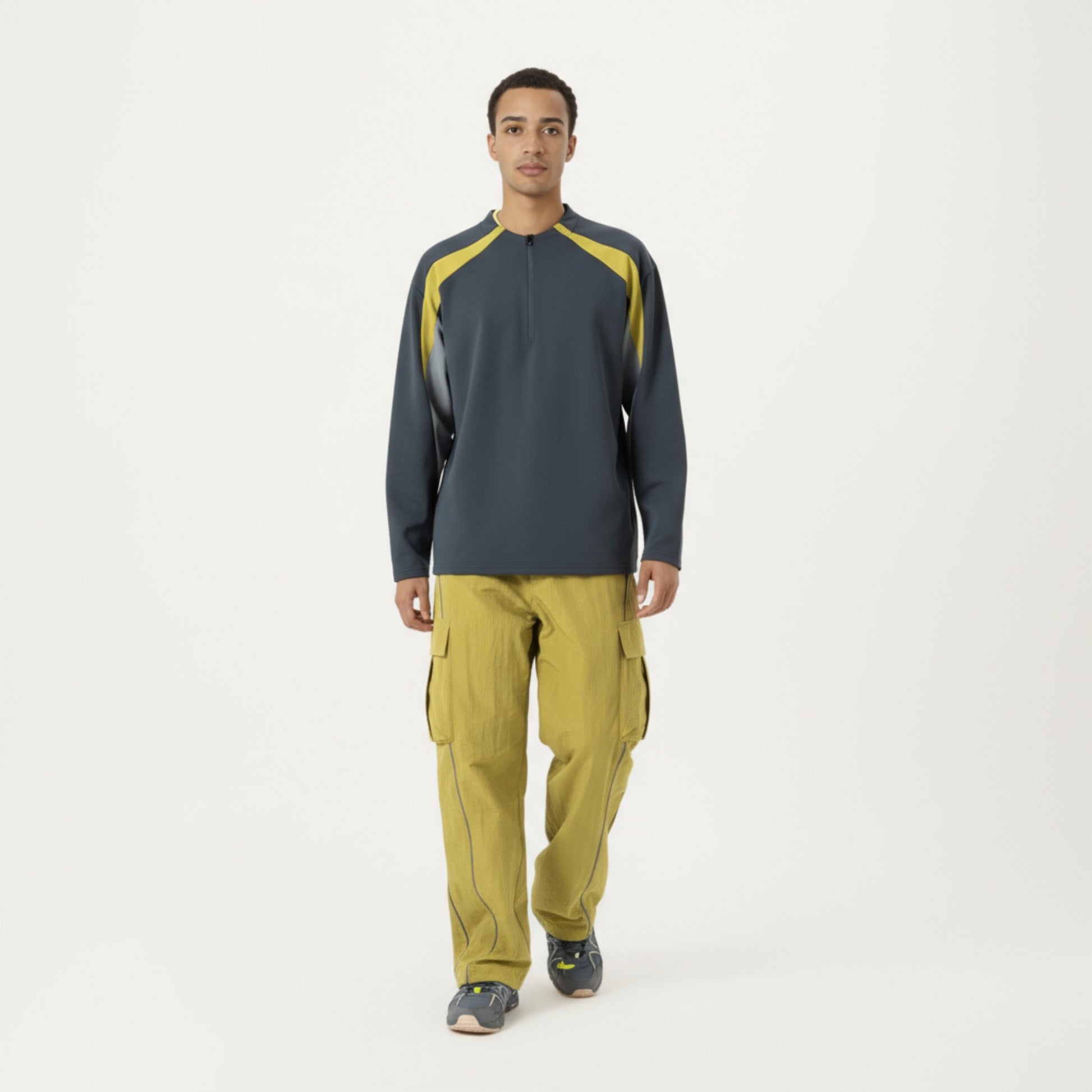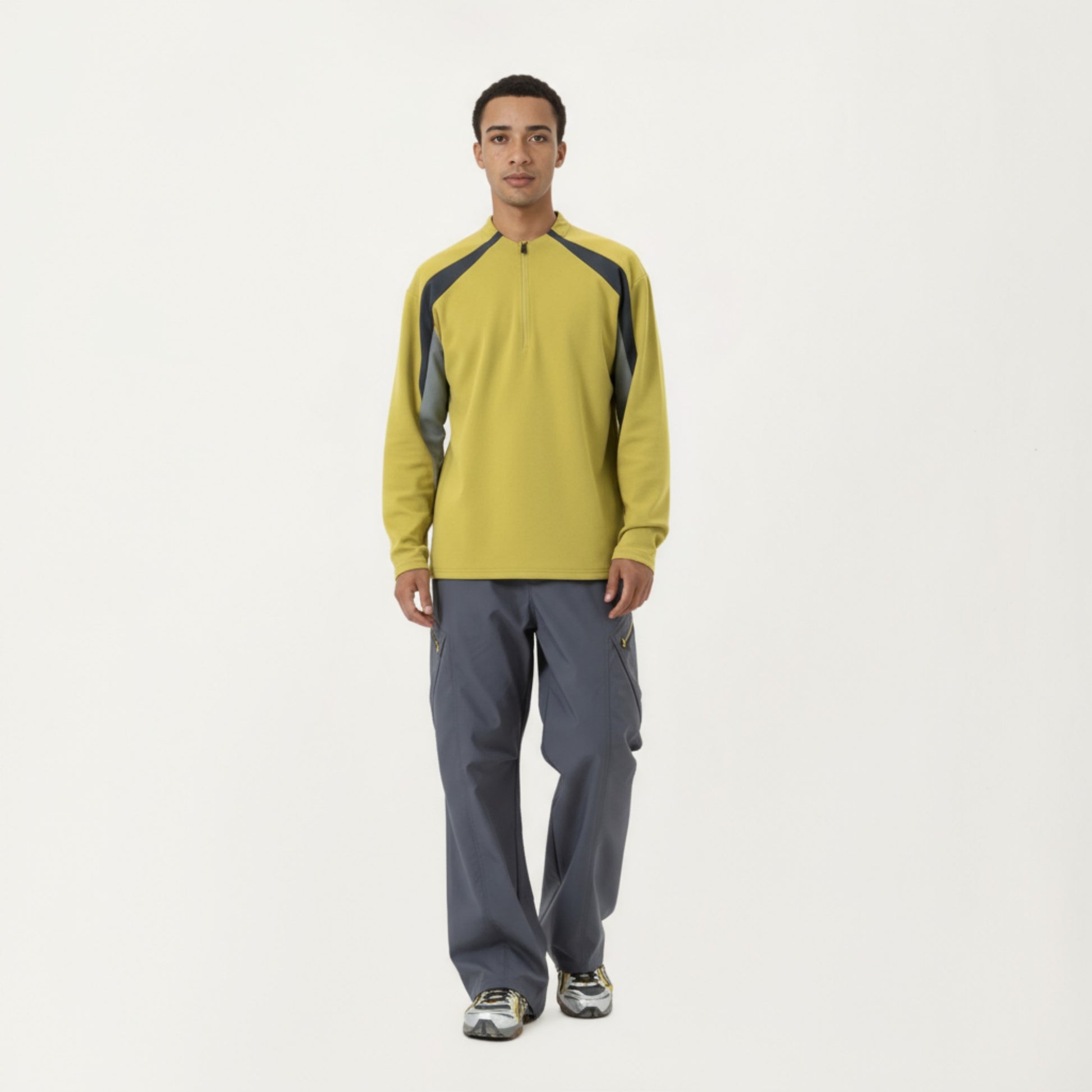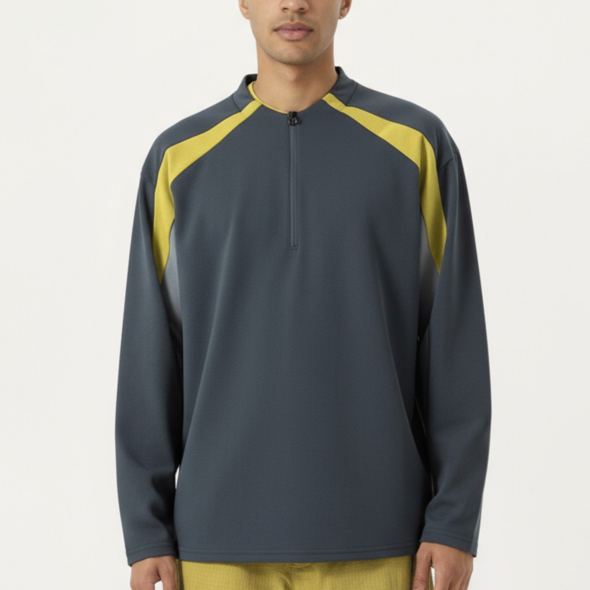 Anna-Kaci Men's Long Sleeve Quarter Zip Pullover with Contrast Shoulder Panels and Stand Collar