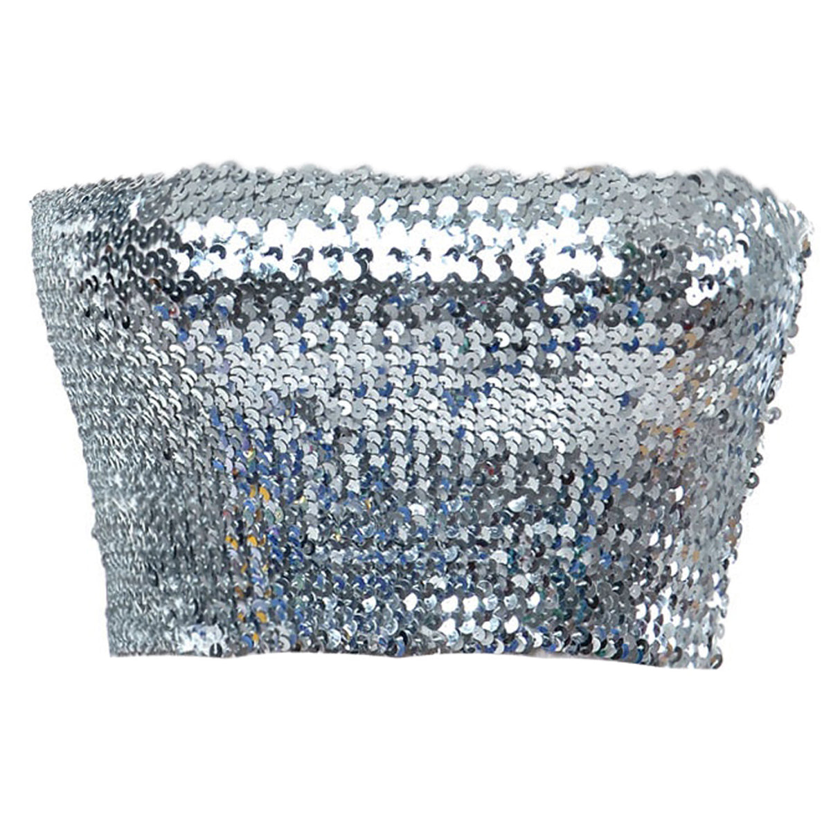 - TOP CORTO CON ESTILO BANDEAU BRILLANTE. Un bralette sencillo con estilo bandeau y adornos de lentejuelas brillantes por todas partes. Cuerpo completamente elástico que permite un ajuste ceñido. La entretela de punto grueso ayuda a reducir la irritación desde el interior de la prenda.