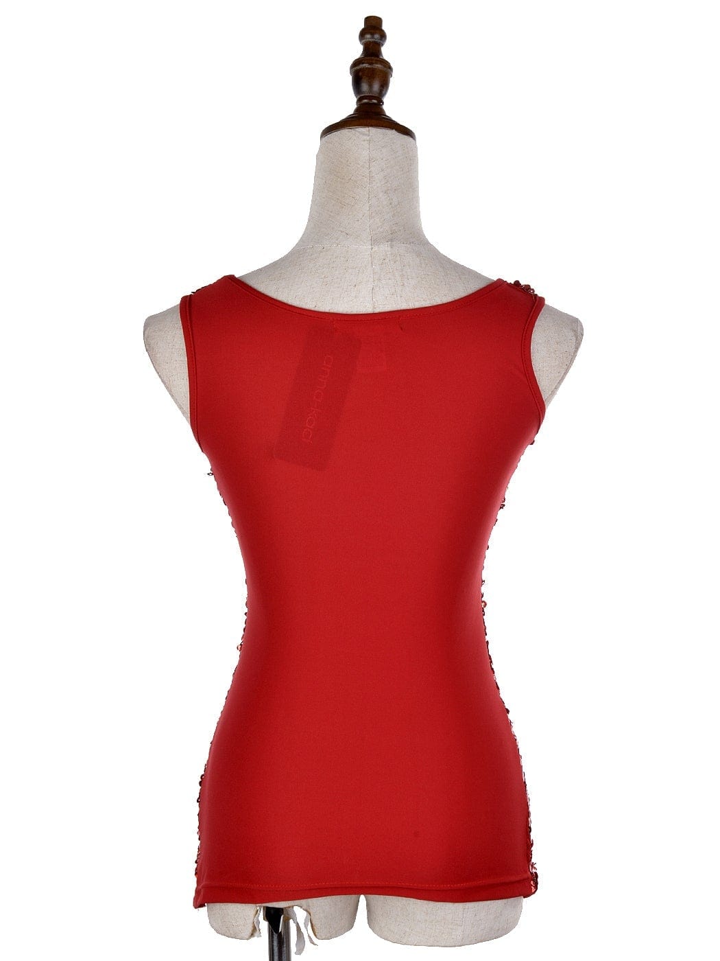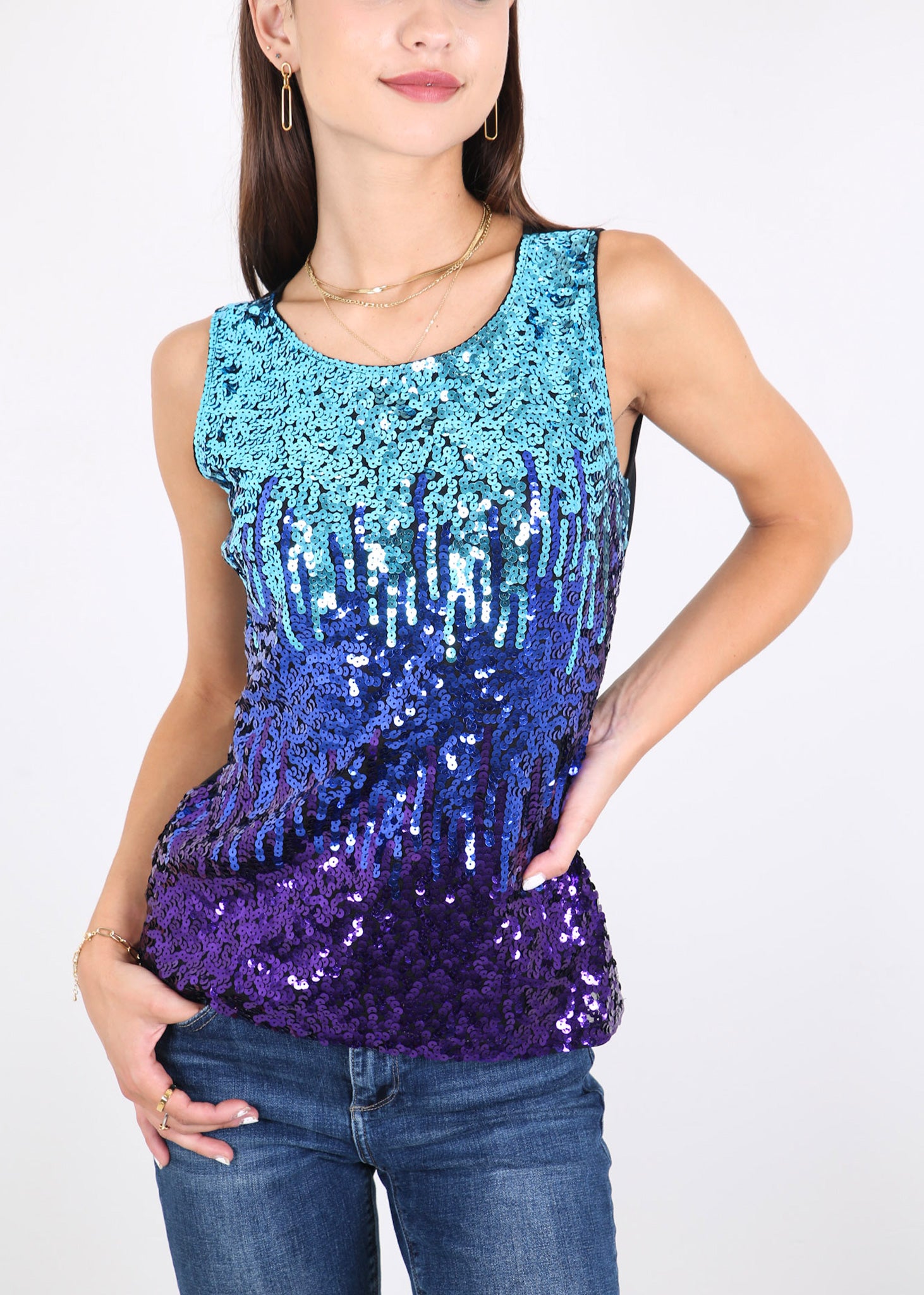 Una fabulosa blusa sin mangas con mucho brillo. Confeccionada con lentejuelas de alta calidad para una parte delantera bellamente adornada y una parte trasera más discreta para lograr el equilibrio perfecto. Disfruta de un uso cómodo durante todo el día gracias al material de poliéster elástico. La parte trasera transpirable te mantiene fresca sin importar dónde uses esta blusa.