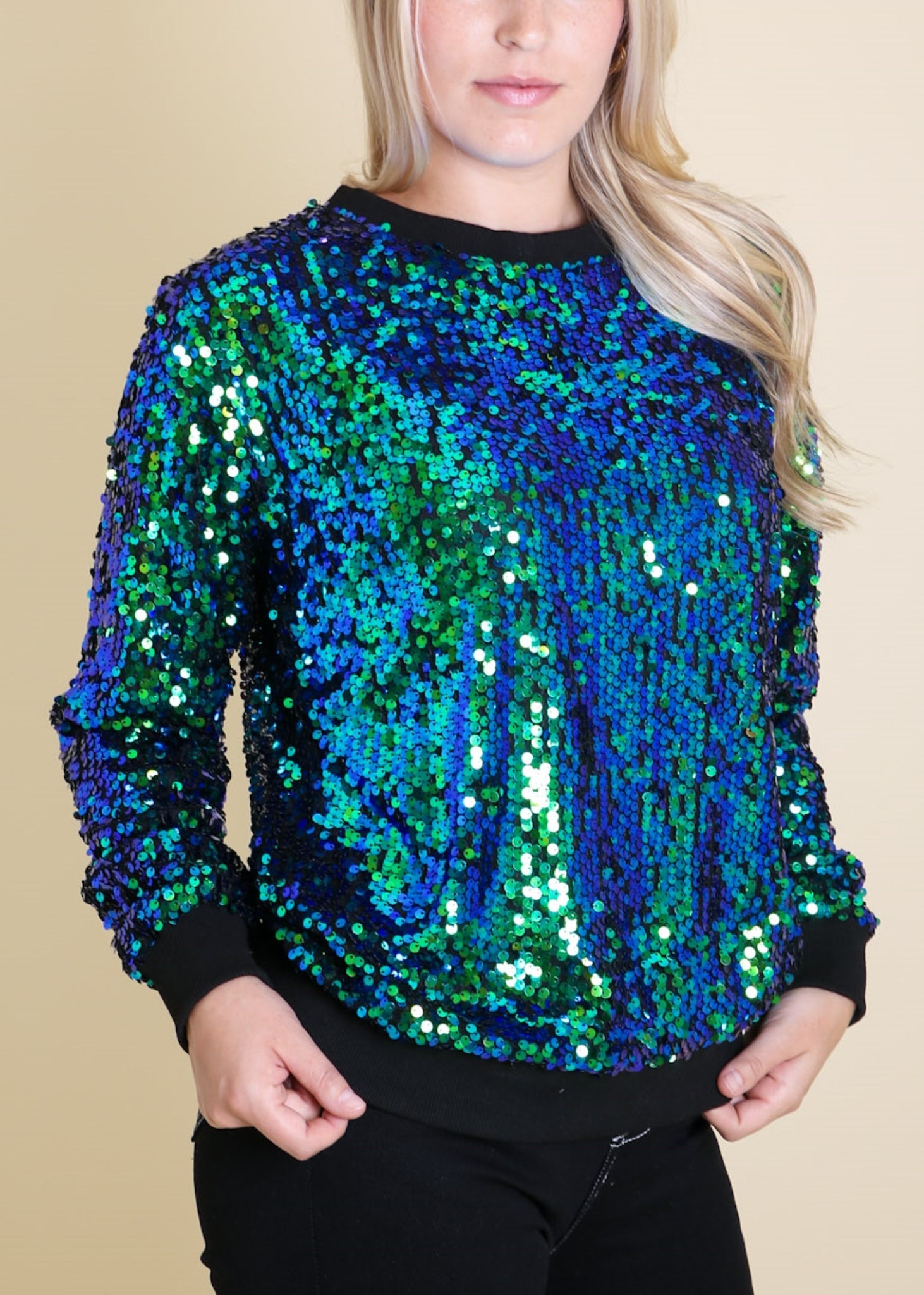 - DISEÑO DE LENTEJUELAS GLAMERANTE: ¡este suéter de lentejuelas brillantes es un artículo imprescindible para tu armario! Esta divertida sudadera de manga larga es liviana y tiene un diseño que la hace fácil de combinar con cualquier estilo y se adapta a cualquier ocasión durante esta temporada festiva.