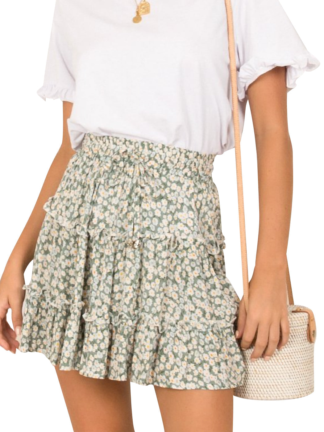- CARACTERÍSTICAS. Faldas de verano plisadas con cintura alta, estilo casual, corte holgado, corte en forma de A, dobladillo con volantes, cintura elástica, cordón en la cintura, largo mini.