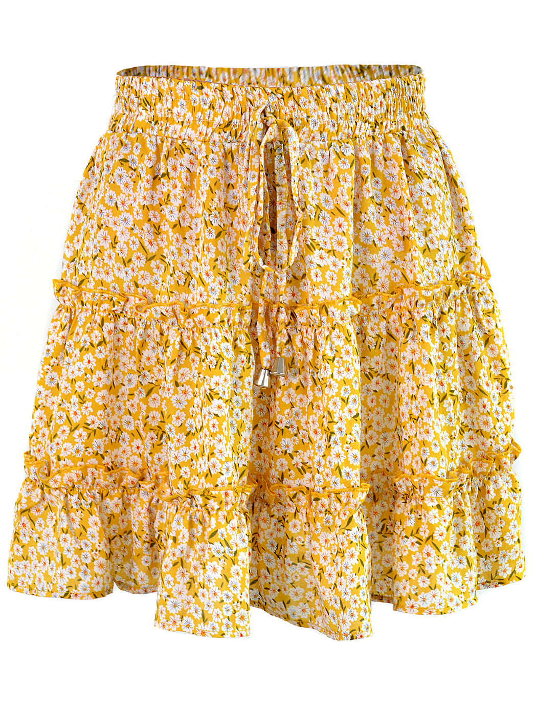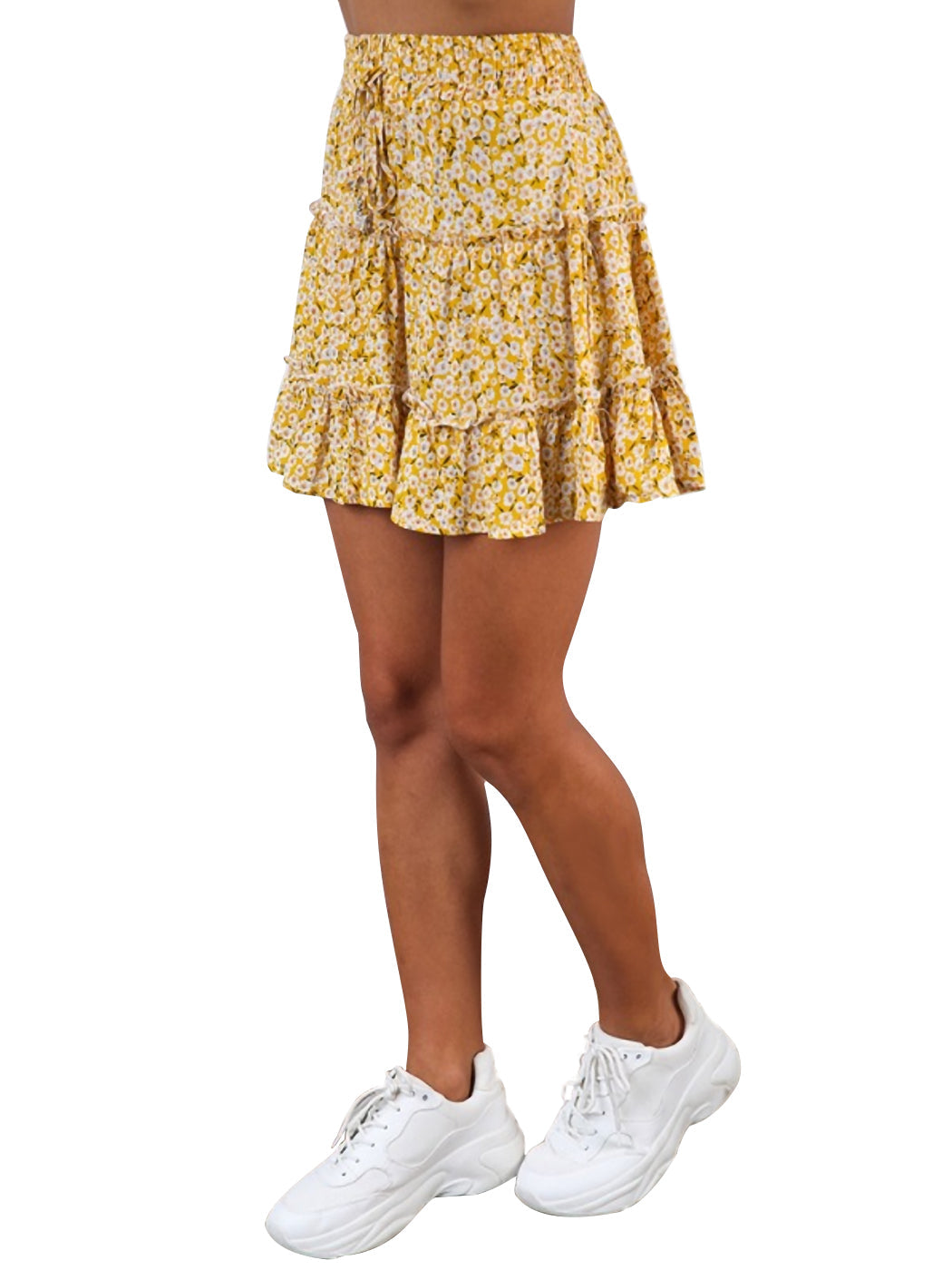 Minifalda con volantes y cordón ajustable con cintura elástica y estampado floral estilo bohemio de verano