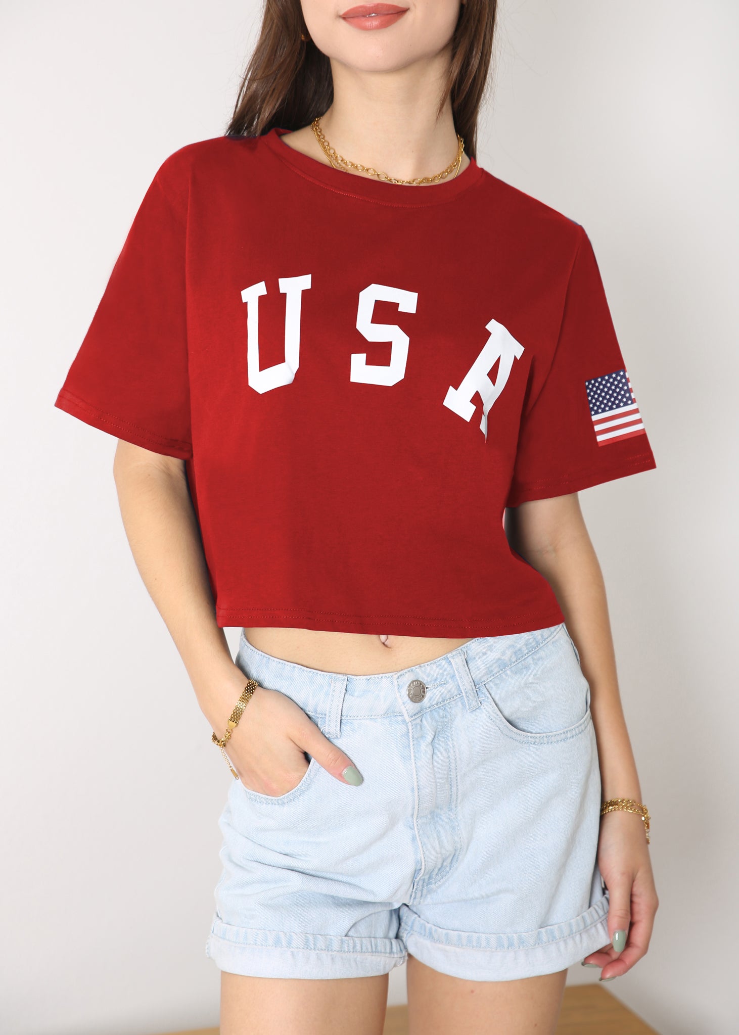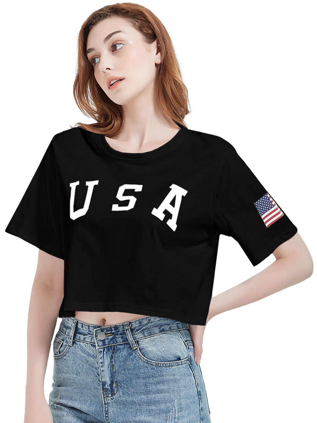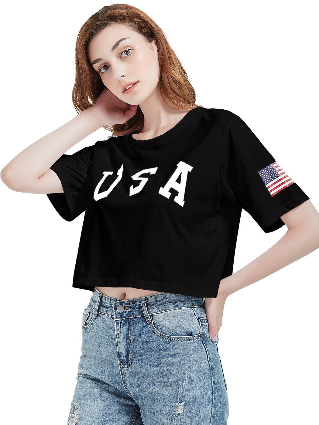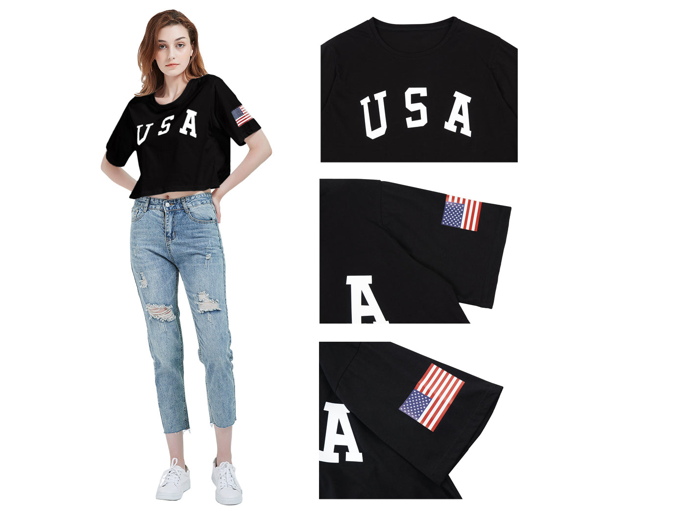 - CARACTERÍSTICAS: Manga corta, hombros caídos, estampado de bandera estadounidense, cuello redondo, estilo casual suelto, tops cortos con estampado de letras, camiseta de verano.