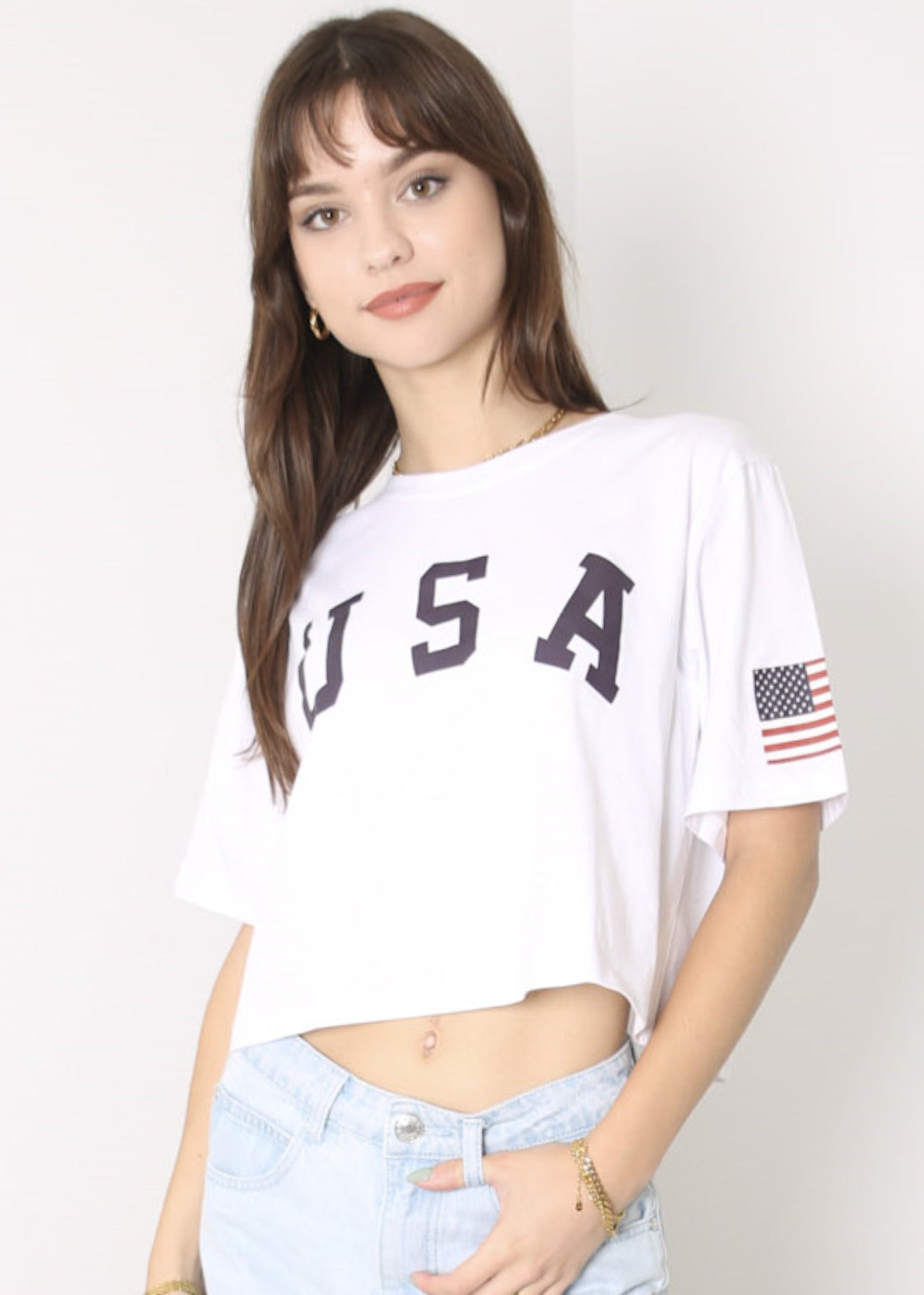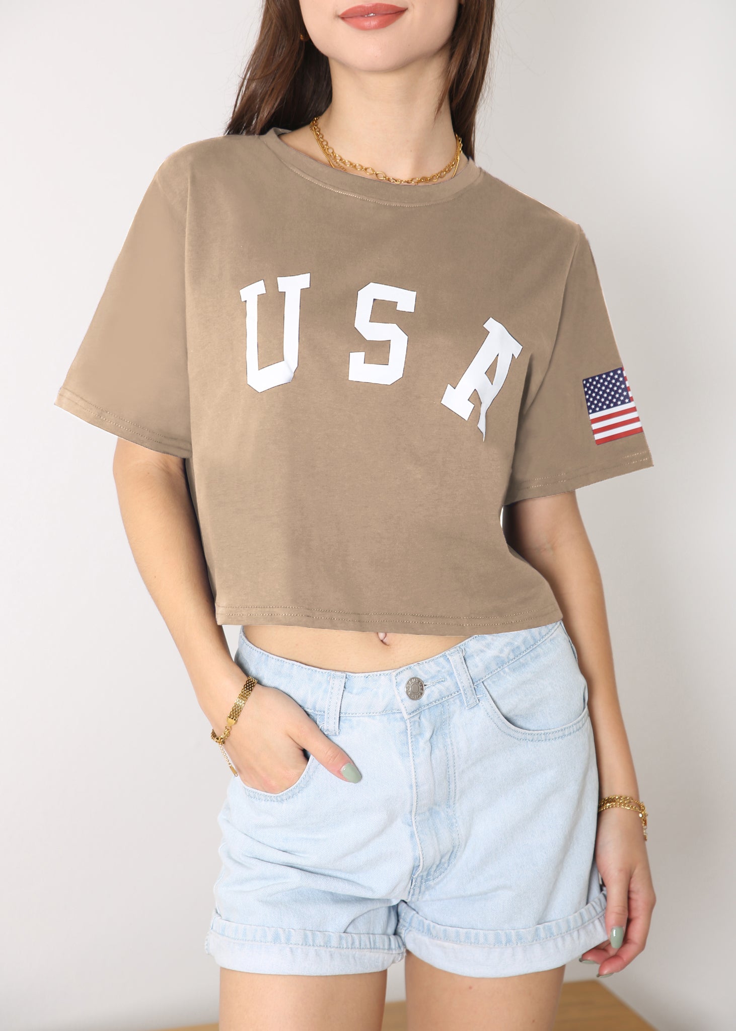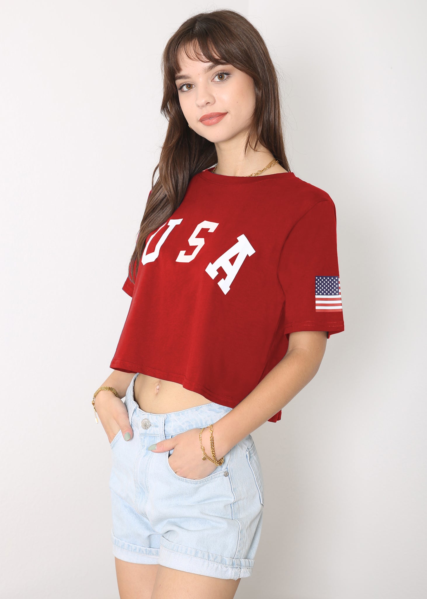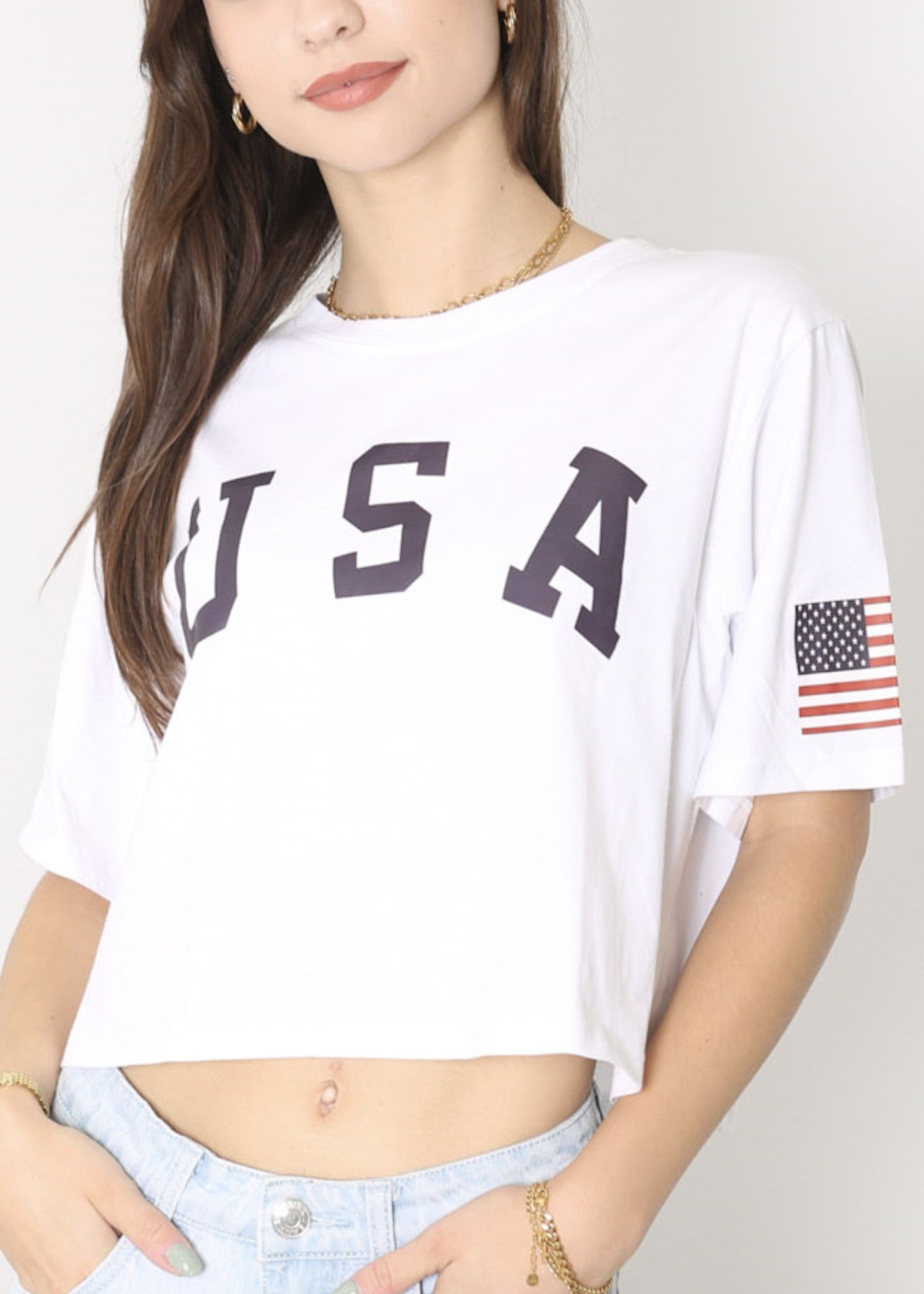 - CARACTERÍSTICAS: Manga corta, hombros caídos, estampado de bandera estadounidense, cuello redondo, estilo casual suelto, tops cortos con estampado de letras, camiseta de verano.