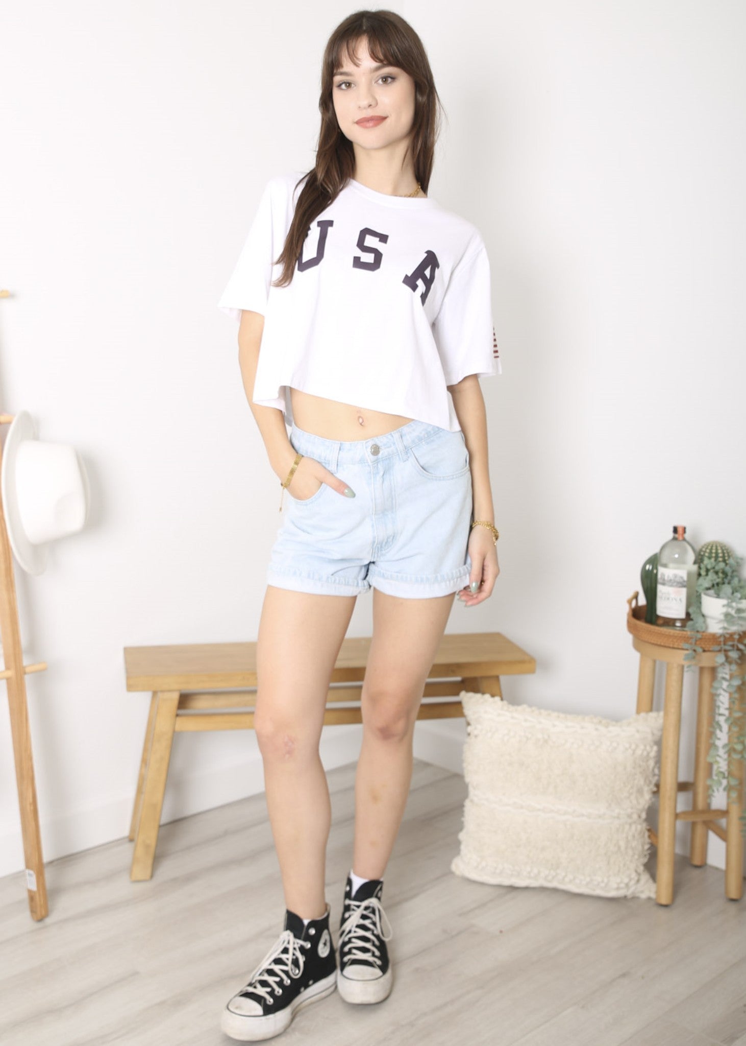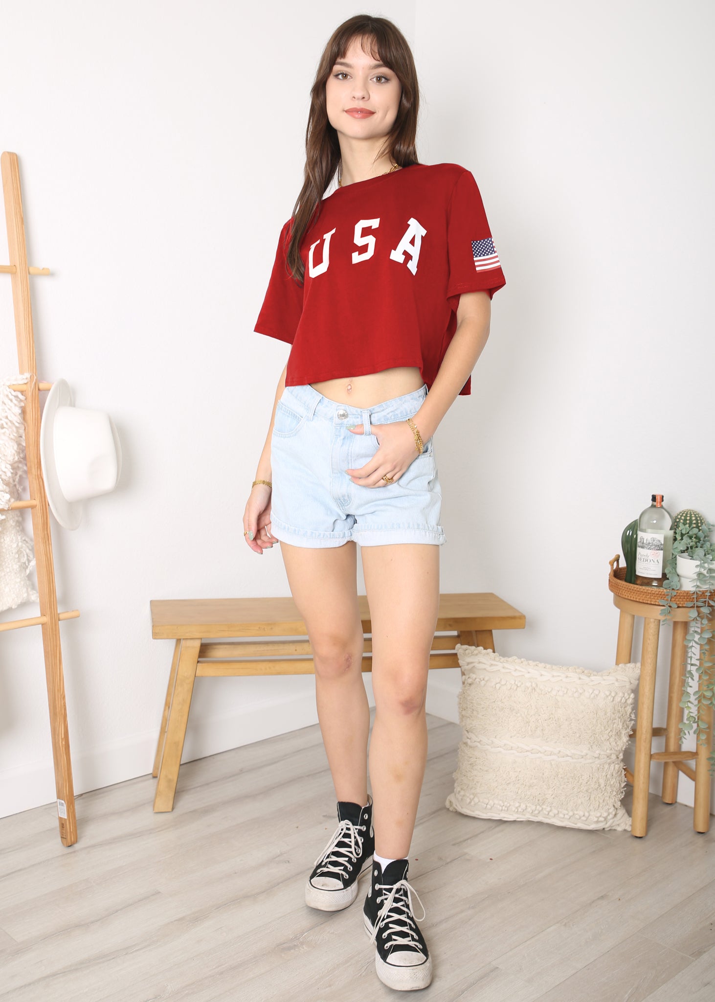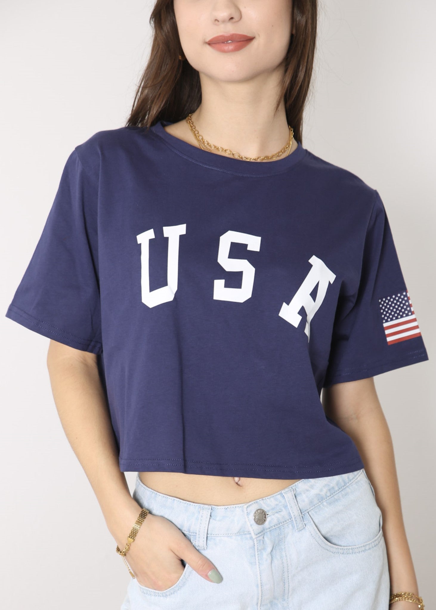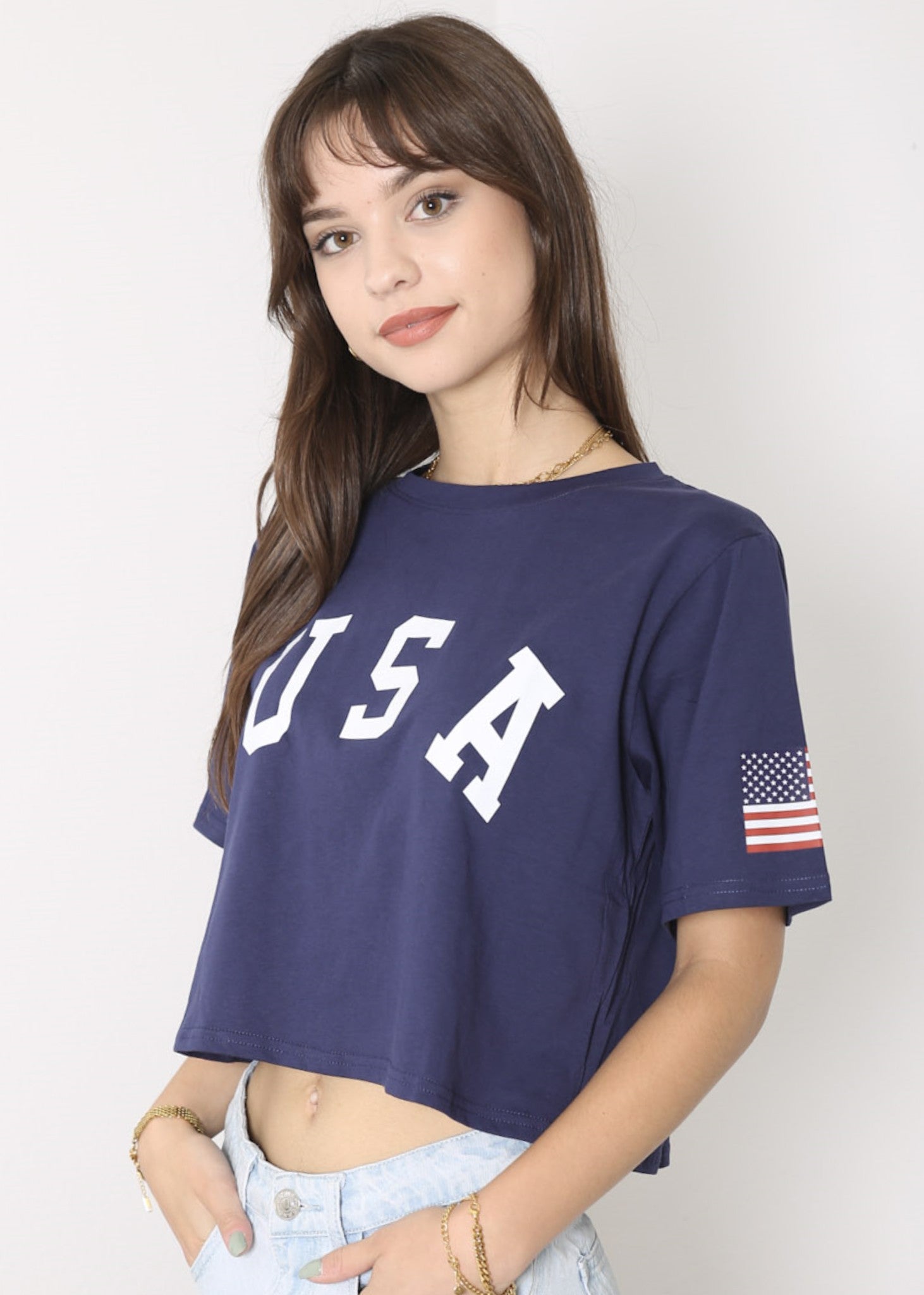 - CARACTERÍSTICAS: Manga corta, hombros caídos, estampado de bandera estadounidense, cuello redondo, estilo casual suelto, tops cortos con estampado de letras, camiseta de verano.