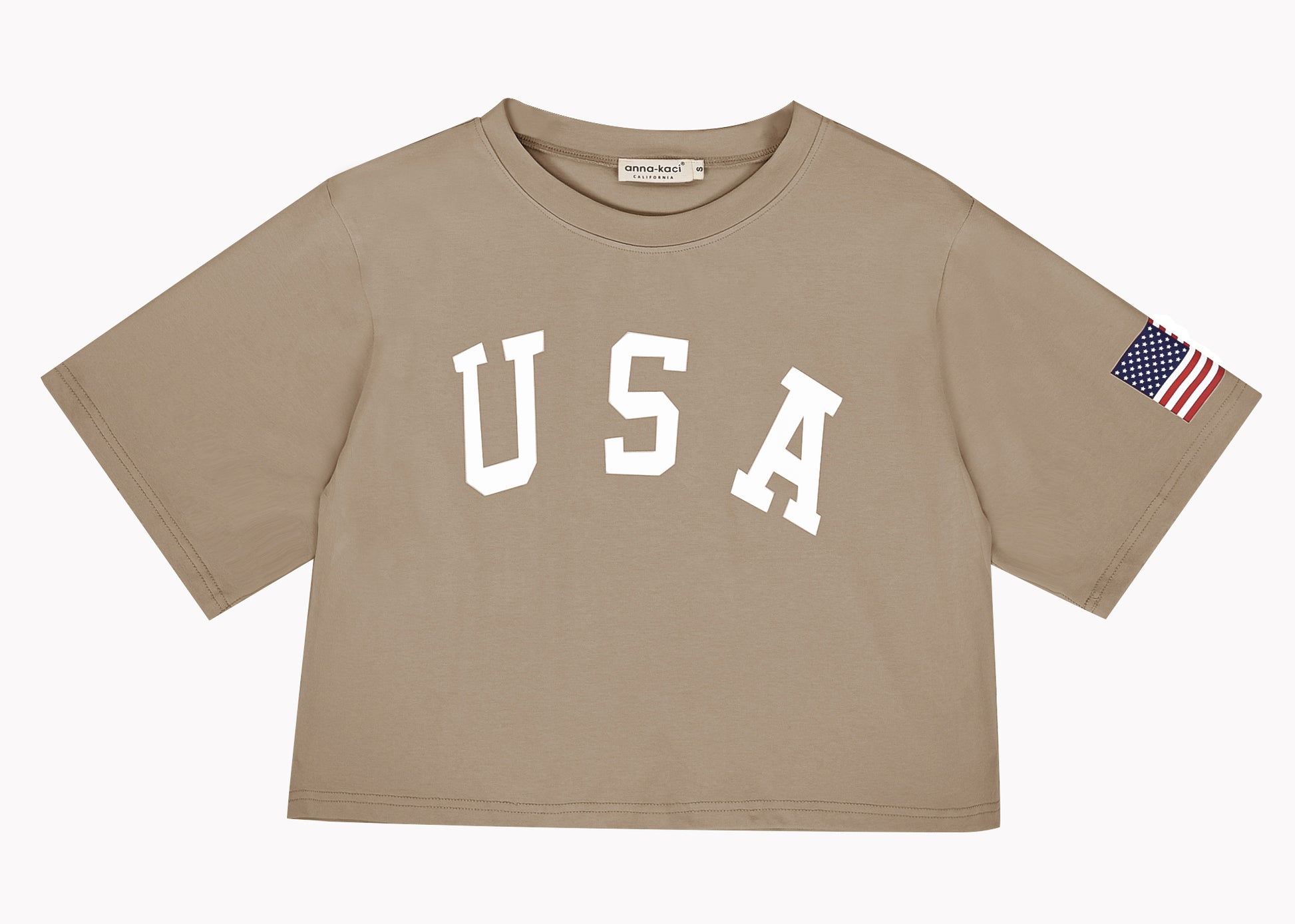 Camiseta de manga corta con estampado de letras para mujer de Anna-Kaci con la bandera de EE. UU. del 4 de julio