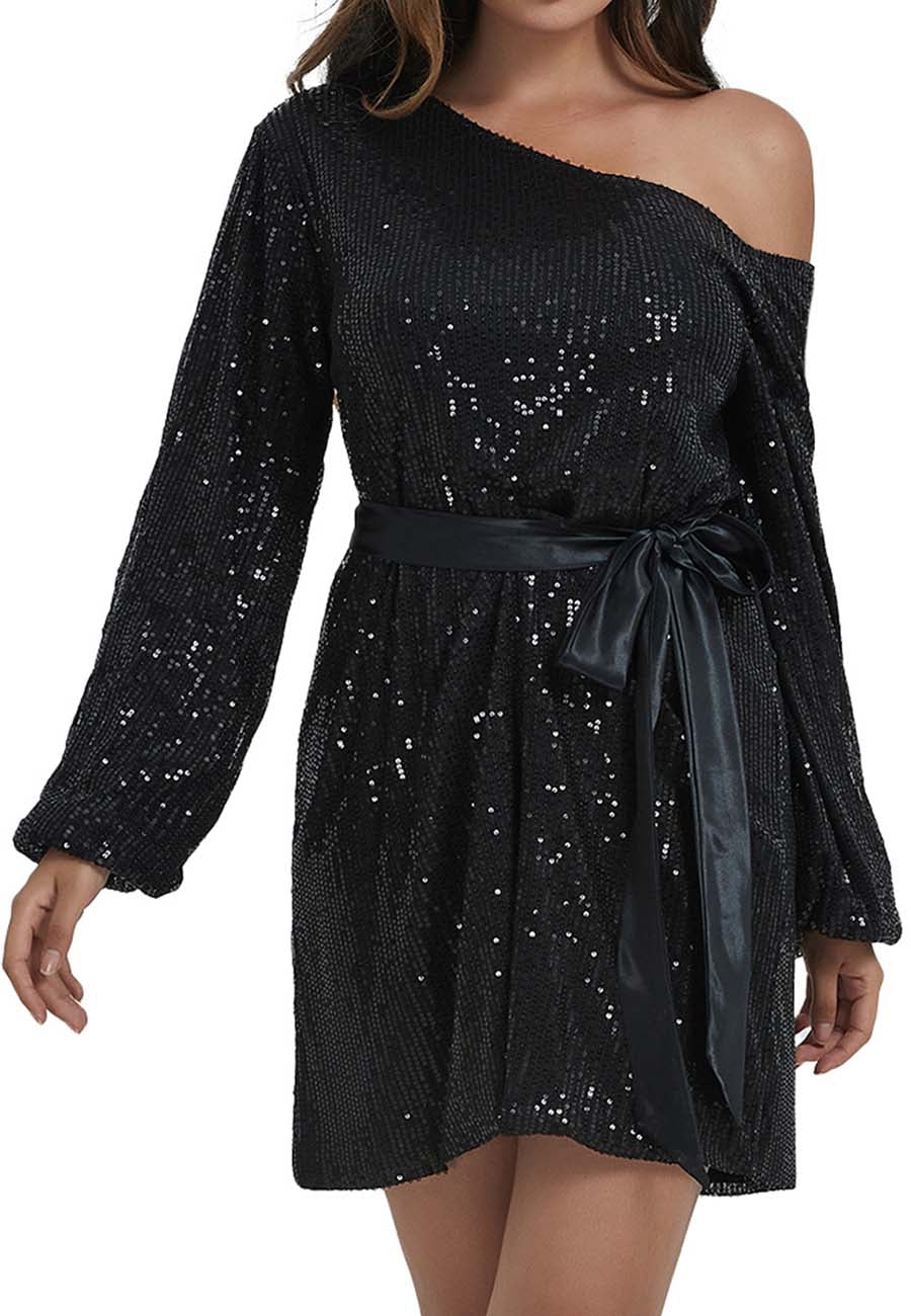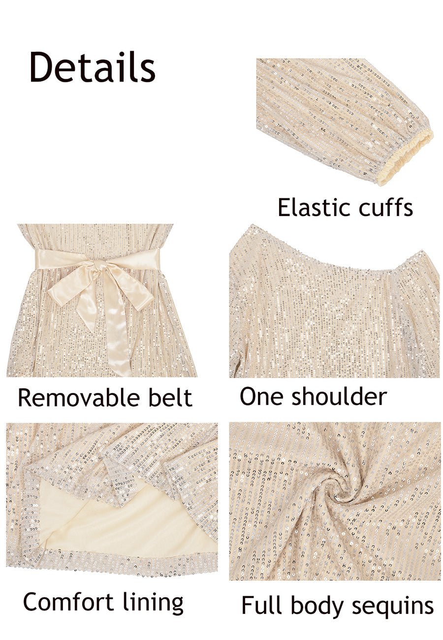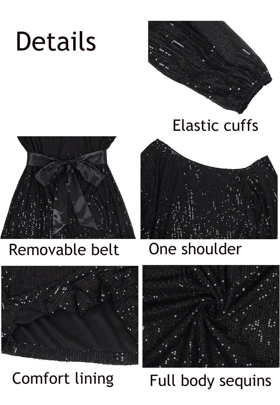 - DISEÑO: manga larga, un hombro descubierto, lentejuelas, brillo, puños elásticos, cinturón de terciopelo, forro transpirable, corte ajustado, blusas brillantes para fiestas nocturnas. Bonitas y elegantes.