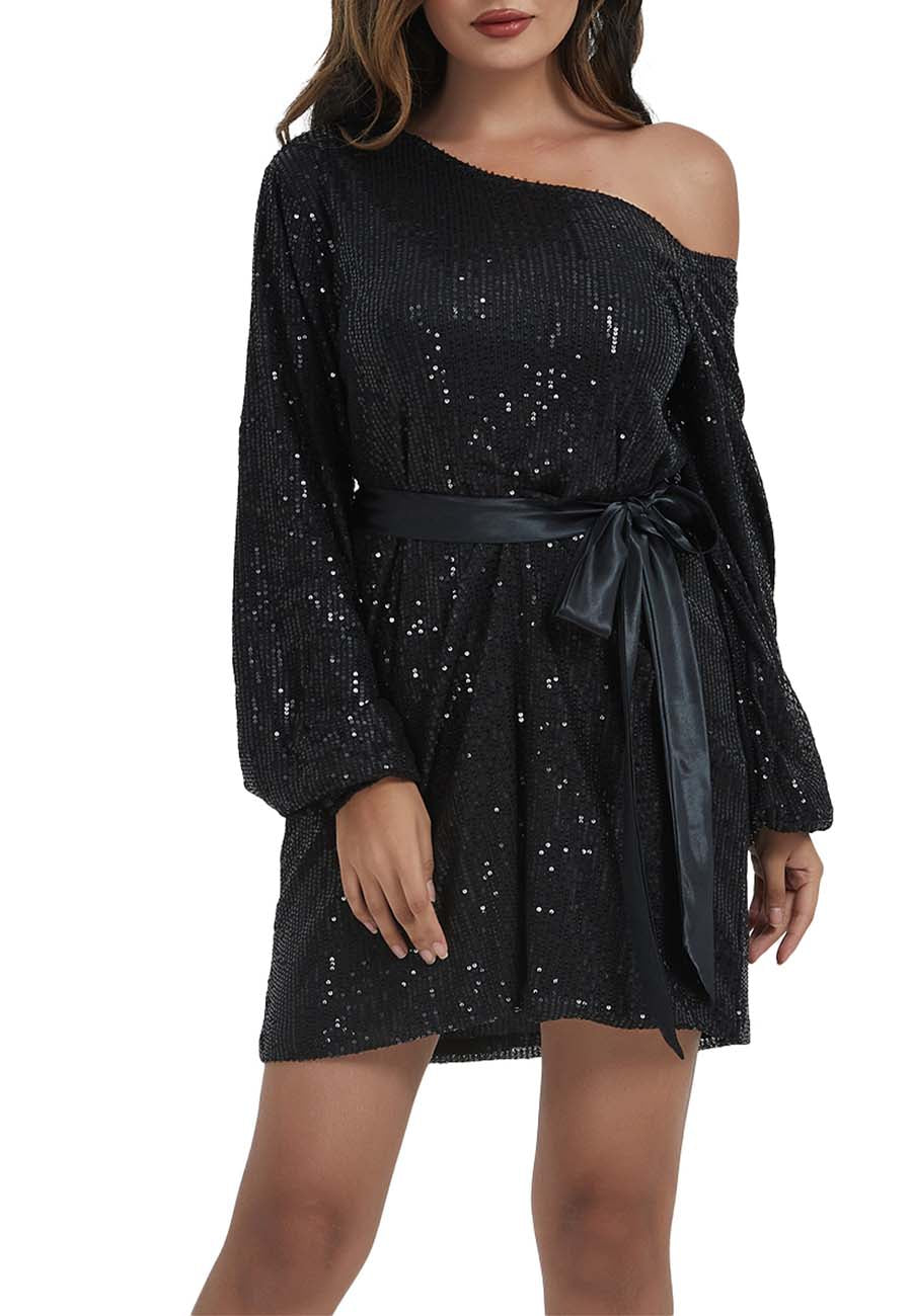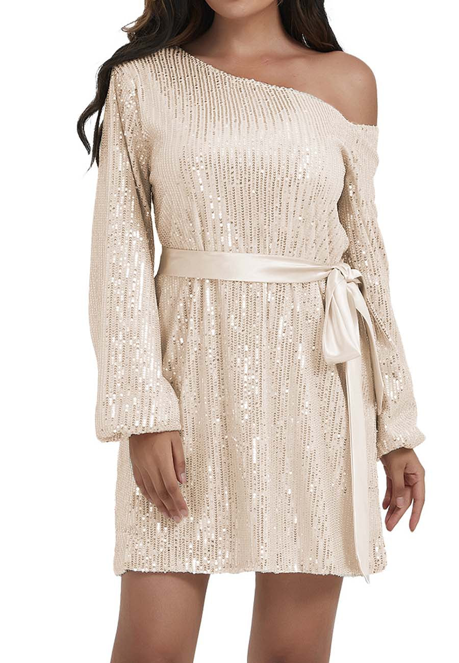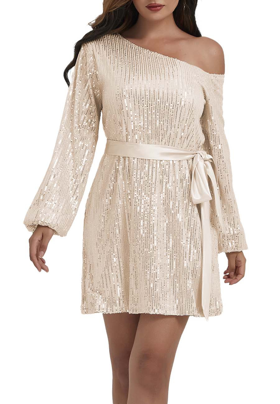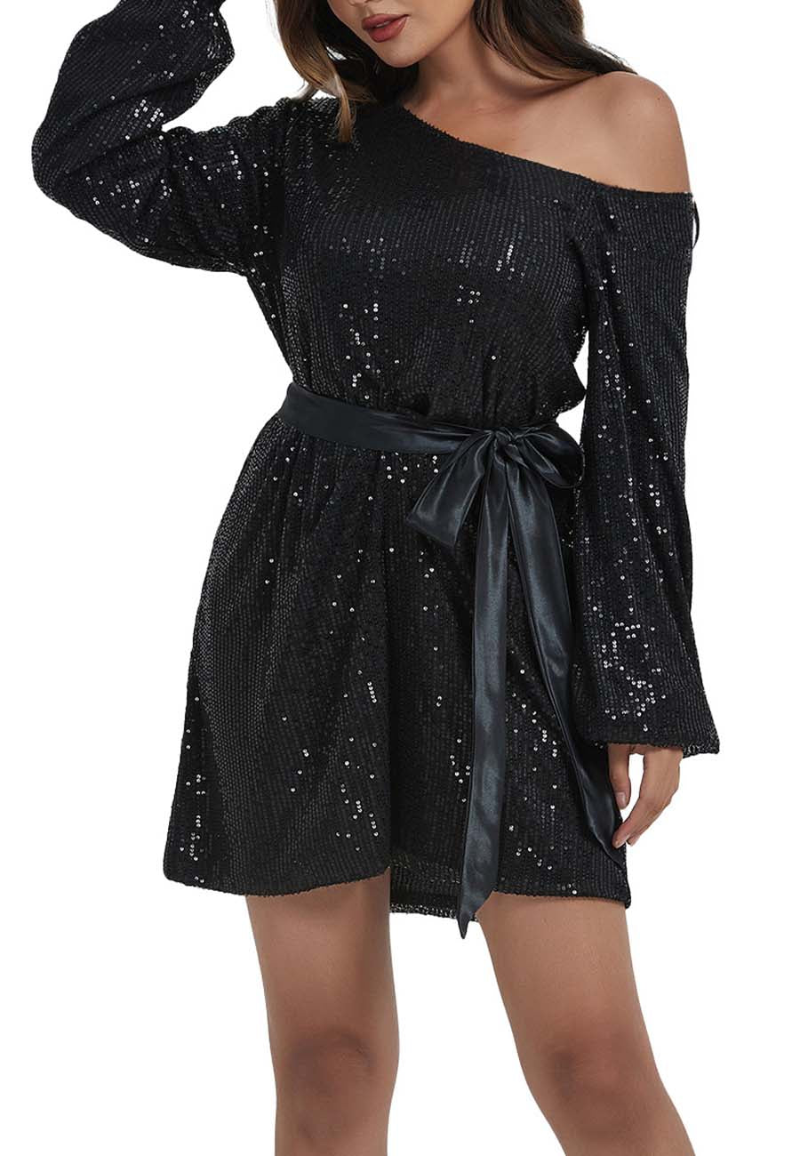 - DISEÑO: manga larga, un hombro descubierto, lentejuelas, brillo, puños elásticos, cinturón de terciopelo, forro transpirable, corte ajustado, blusas brillantes para fiestas nocturnas. Bonitas y elegantes.