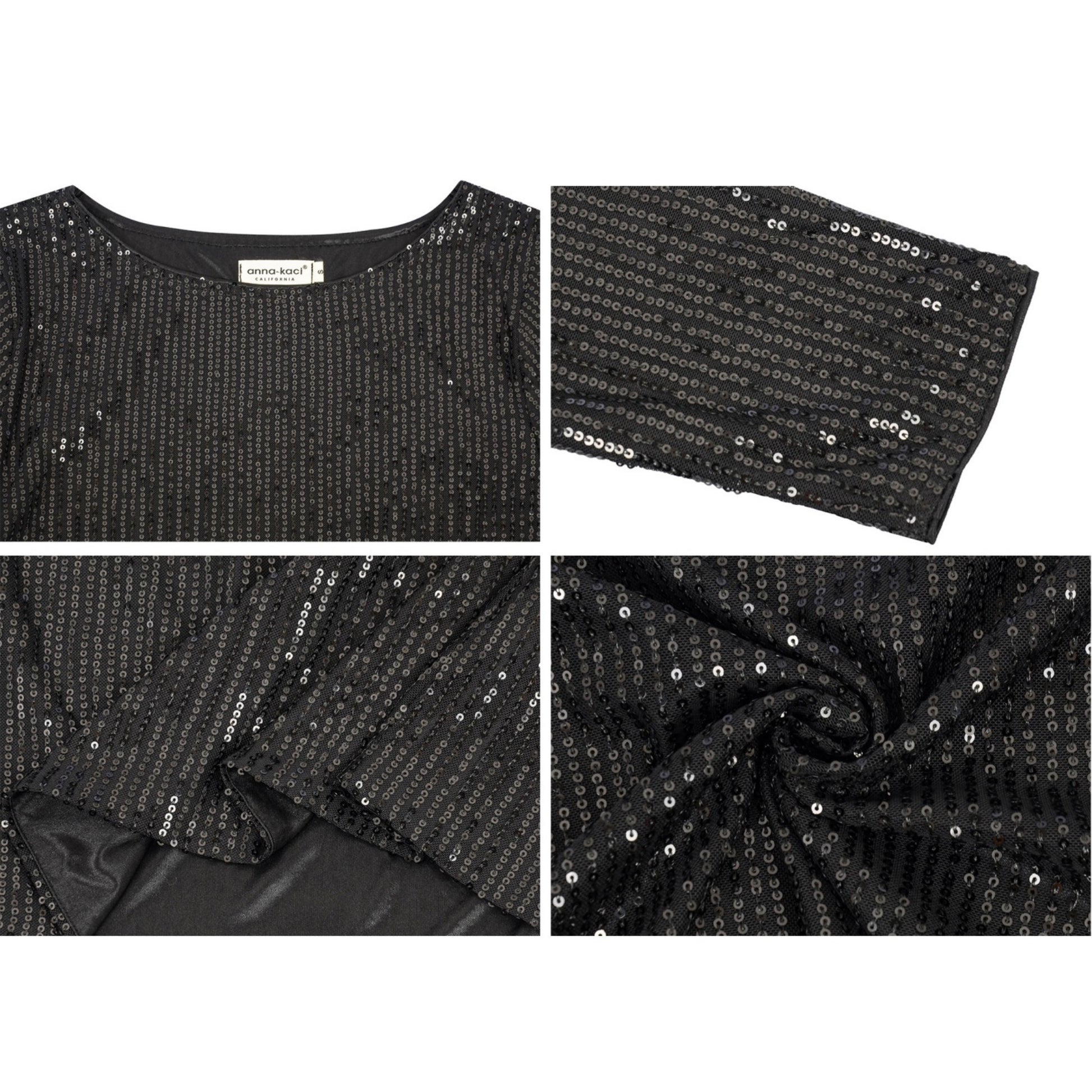 The Anna-Kaci Women's Long Sleeve Sequin Top adds instant sparkle and style to your wardrobe. Designed with a classic crew neckline, this fitted top is fully covered in shimmering sequins for a dazzling effect. The soft lining ensures comfort, while the sleek silhouette makes it perfect for pairing with skirts, pants, or jeans for a chic evening look.