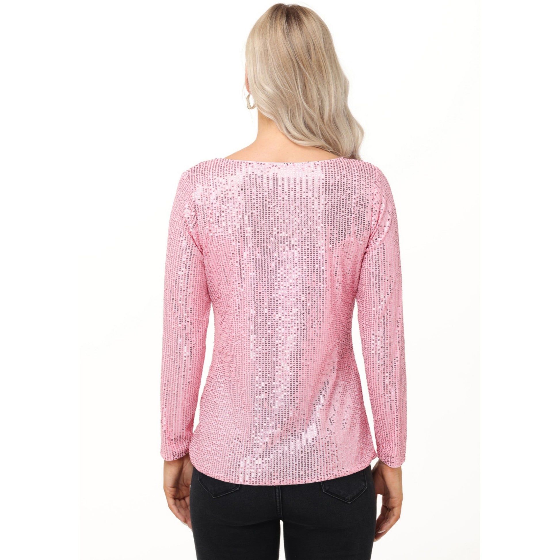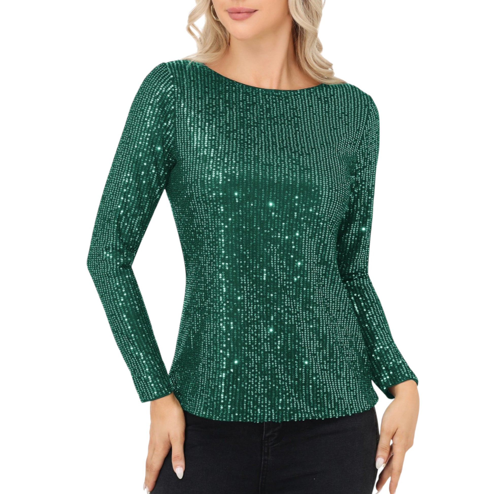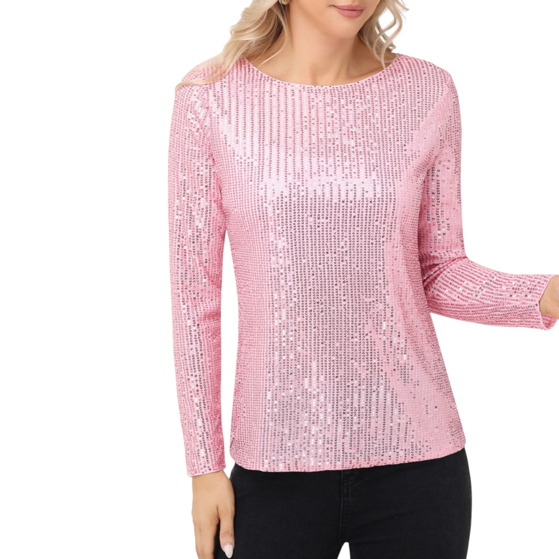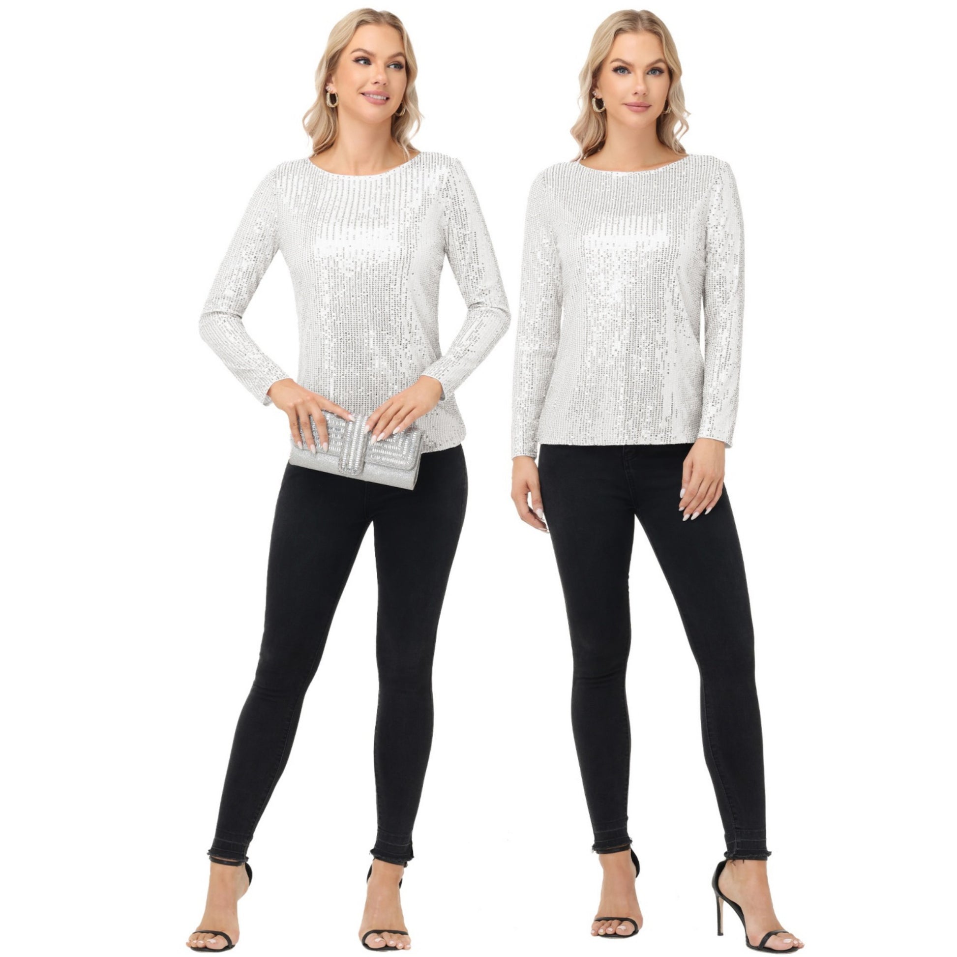 Anna-Kaci Women's Long Sleeve Sequin Top with Crew Neck and Fitted Silhouette