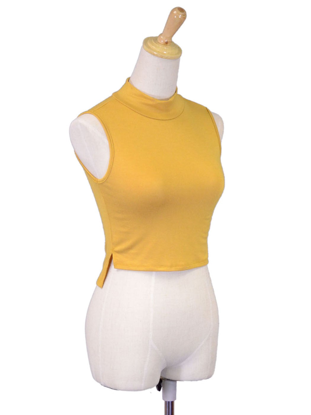 Versatile High Neckline Mock Turtleneck High Low Fitted Cropped Top