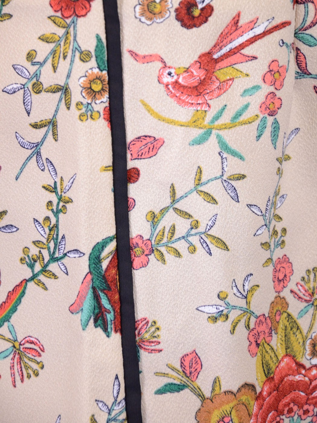 These shorts with a unique bird and floral print will be the perfect addition to your wardrobe. They're super lightweight and comfortable for a great all day wear. This piece can be easily transitioned into a day to night wear, just change your shoes and you're good to go.DETAILS (Measured from SMALL):- SMALL, MEDIUM, LARGE- WAIST: 25inches- HIP: 28inches- BODY LENGTH: 12inches- COLOR: Beige- Material: POLYESTER