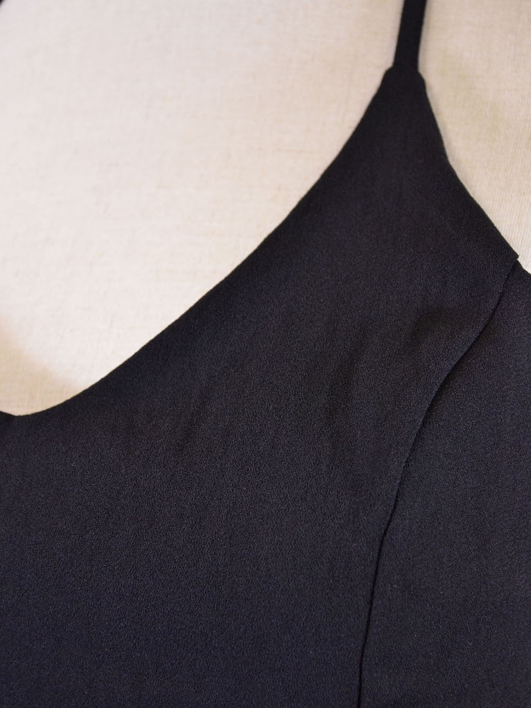 Lush Chic Formal Structured Black Spaghetti Straps Pocket Romper Shorts