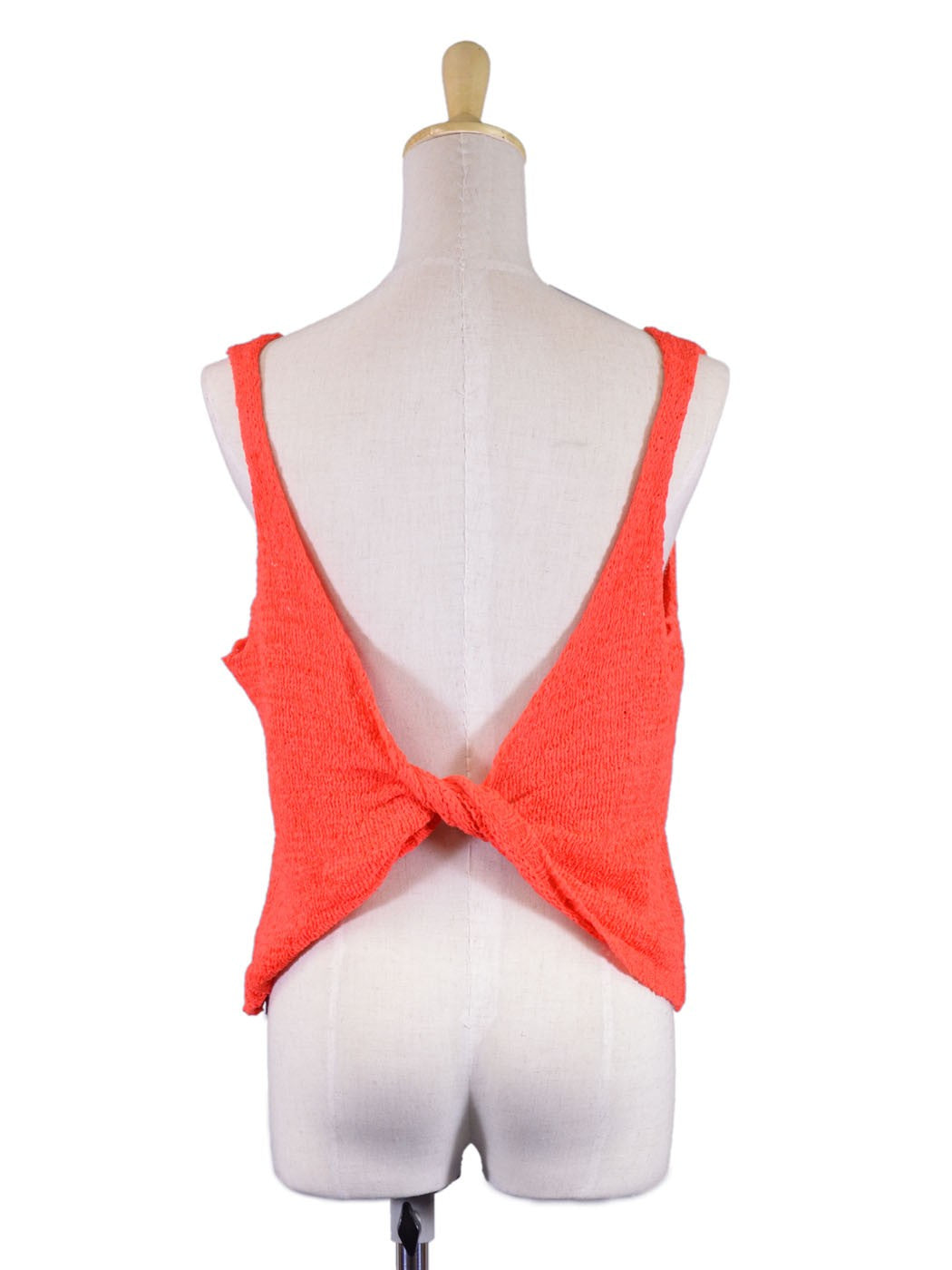 En Creme Voltaic Neon Coral Sexy Open Twist Back Knit Scoop Neck Tank Top