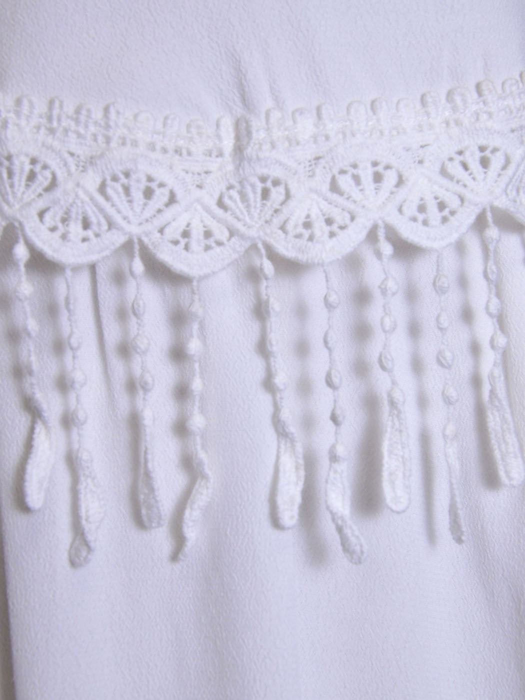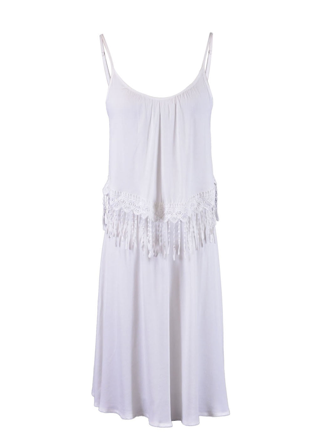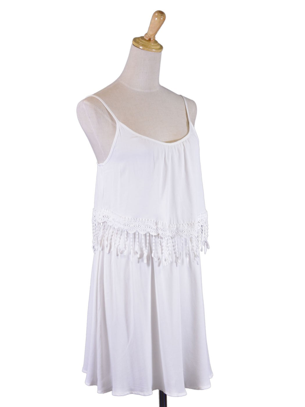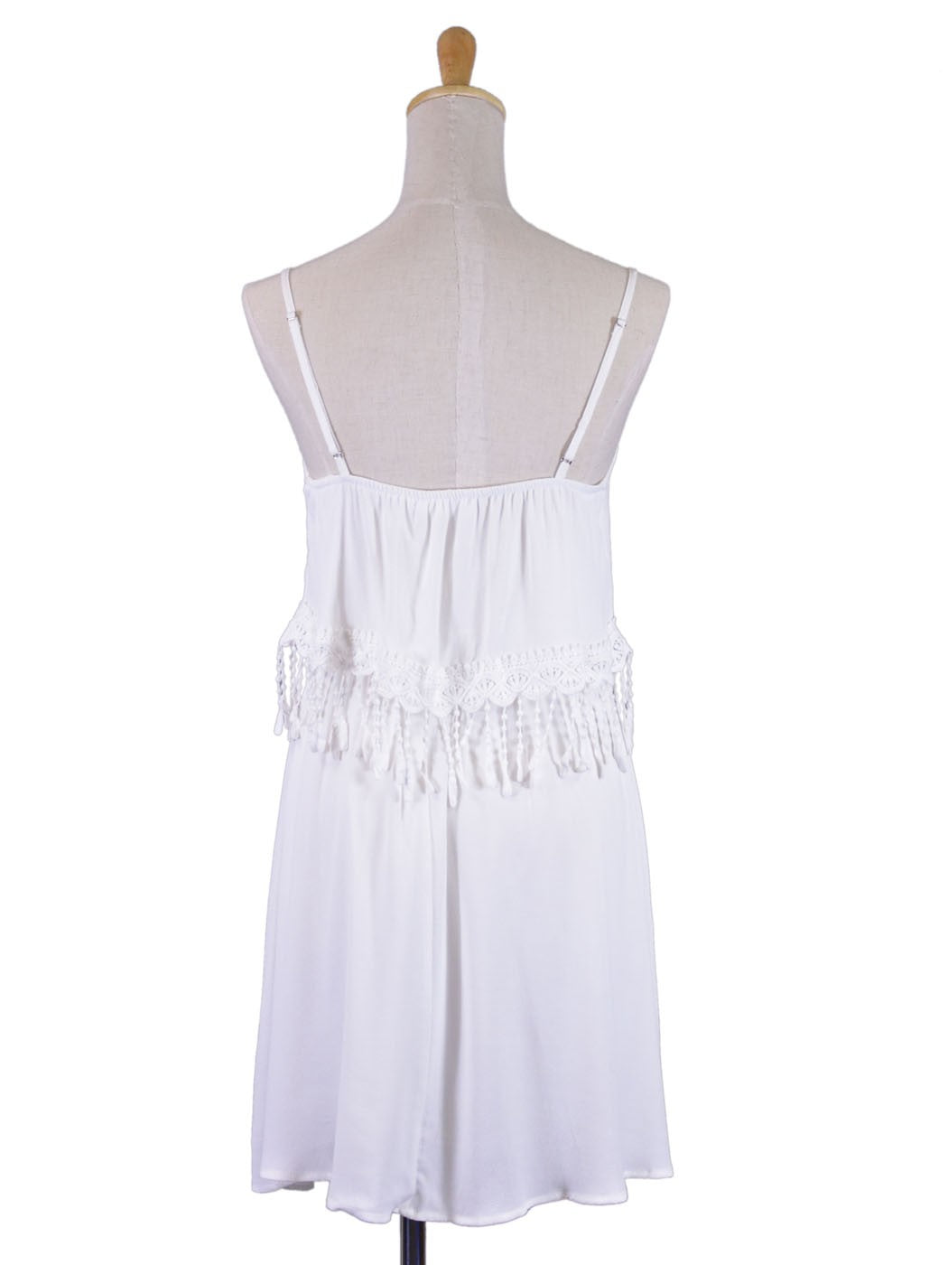 - This sweet dress is prefect for the brides to be. A cute dress for your bridal shower or just for those casual days. Love the fringe details!Details (Measured from SMALL)- SMALL, MEDIUM, LARGE- BUST: 3!- WAIST: 22- HIP: 53- BODY LENGTH: 26.5- COLOR: WHITE- MATERIAL: POLYESTER/VISCOSE