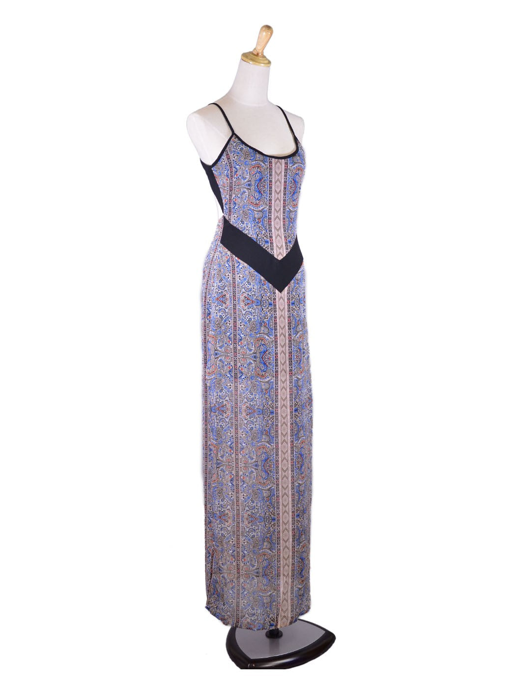 - A lovely printed chiffon maxi dress that is great for any special occasion. Love the back detail and the paisley print!Details (Measured from SMALL)- SMALL, MEDIUM, LARGE- BUST: 34- WAIST: 26- HIP: 38- FRONT BODY LENGTH: 51- BACK BODY LENGTH: 40- COLOR: MULTICOLOURED- MATERIAL: POLYESTER