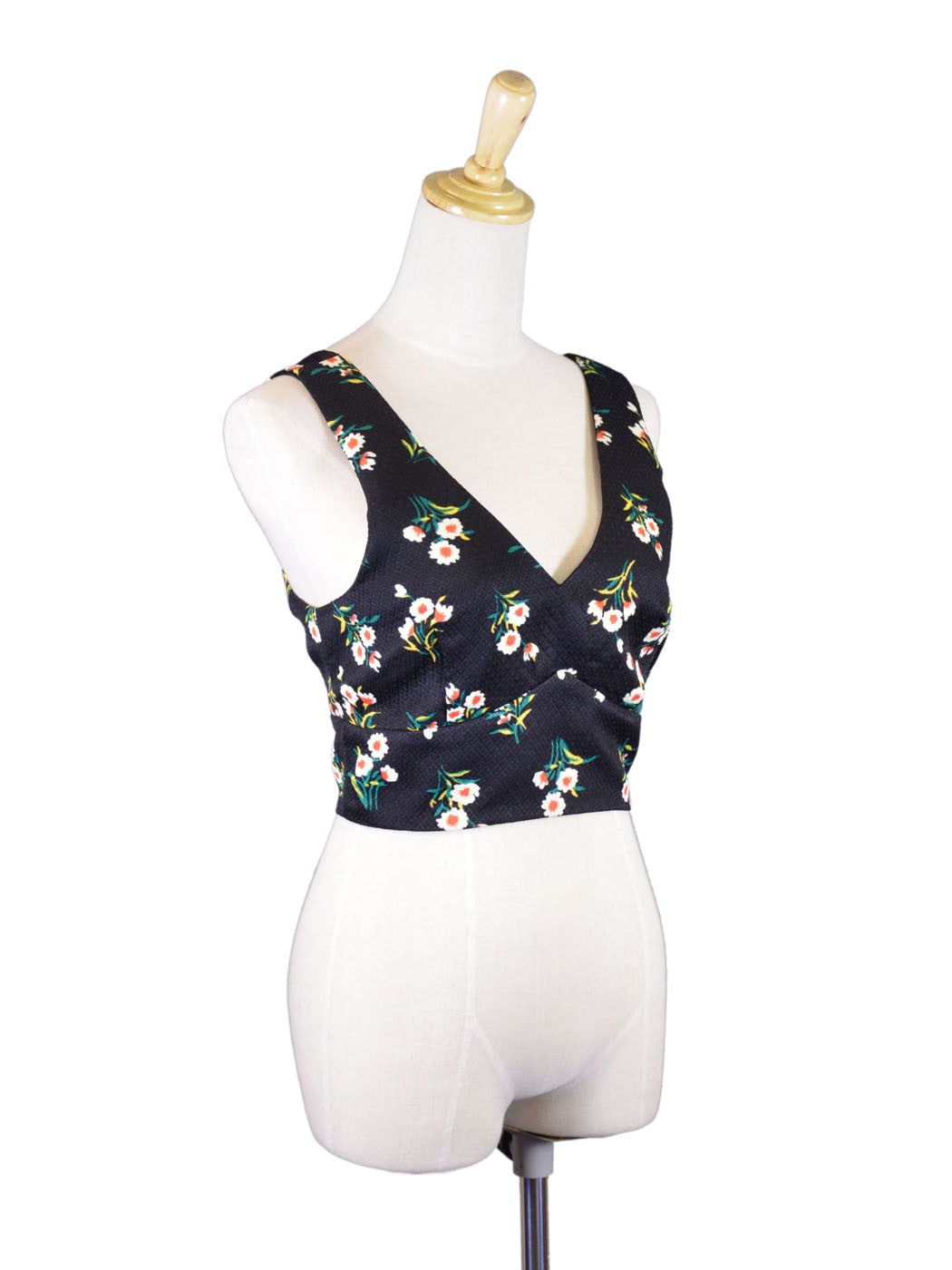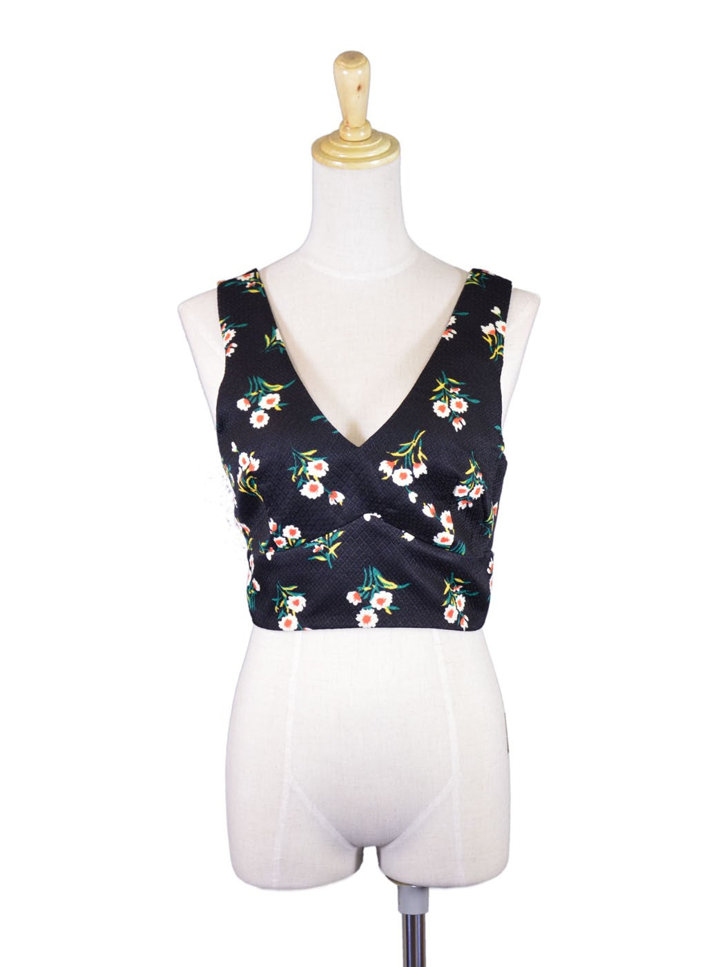 - This lovely floral cropped top comes with a matching bottom! Great for those fashionable events or night out with the girls. Love the quilt texture to add a bit of spice to your wardrobe.Details (Measured from SMALL)- SMALL, MEDIUM, LARGE- BUST: 30- ACROSS SHOULDER: 12- WAIST: 24- BODY LENGTH: 15- COLOR: BLACK- MATERIAL: POLYESTER
