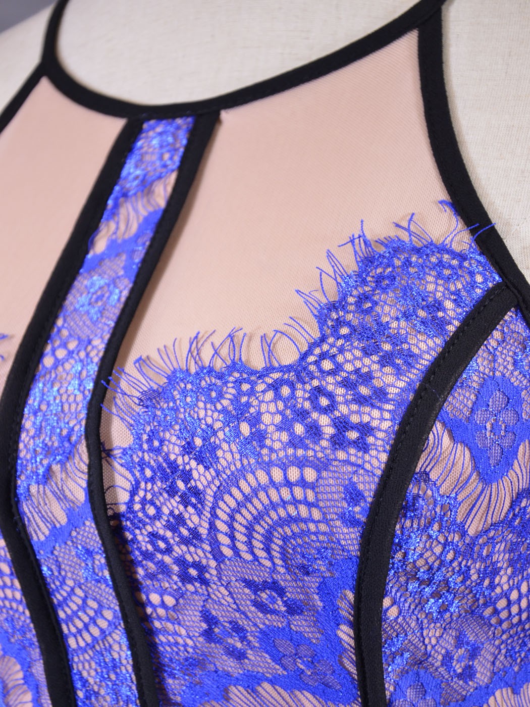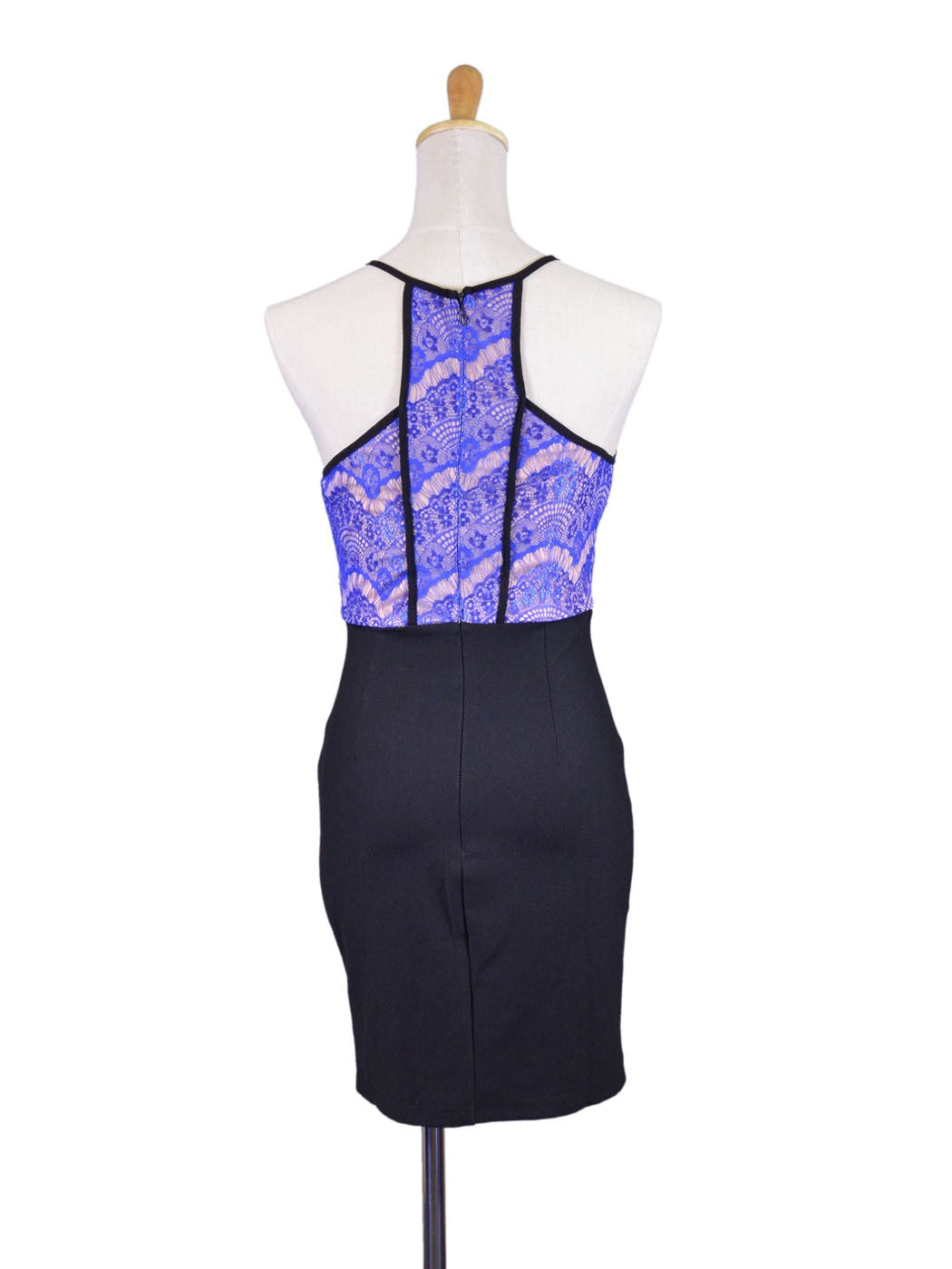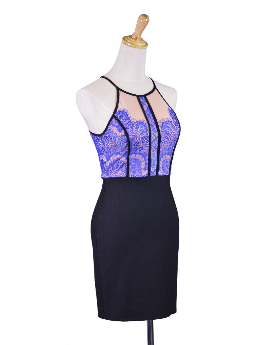 - A dress filled with feminine grace. The lovely royal blue lace detail brings out the elegance. Great for those special evening parties!Details (Measured from SMALL)- SMALL, MEDIUM, LARGE- BUST: 26- WAIST: 23- HIP: 30- BODY LENGTH: 27.5- COLOR: BLACK/BLUE- MATERIAL: COTTON/POLYESTER/SPANDEX