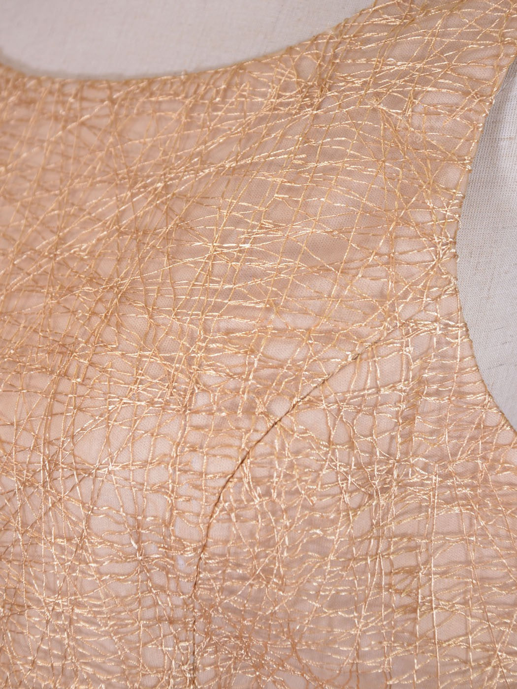 - Glitz the night away in this lovely dress for those special occasion. Love the sheer birdcage outer layer details! Details (Measured from SMALL)- SMALL, MEDIUM, LARGE- BUST: 32- ACROSS SHOULDER: 10- WAIST: 27- HIP: 44- BODY LENGTH: 28.5- COLOR: GOLD- MATERIAL: POLYESTER