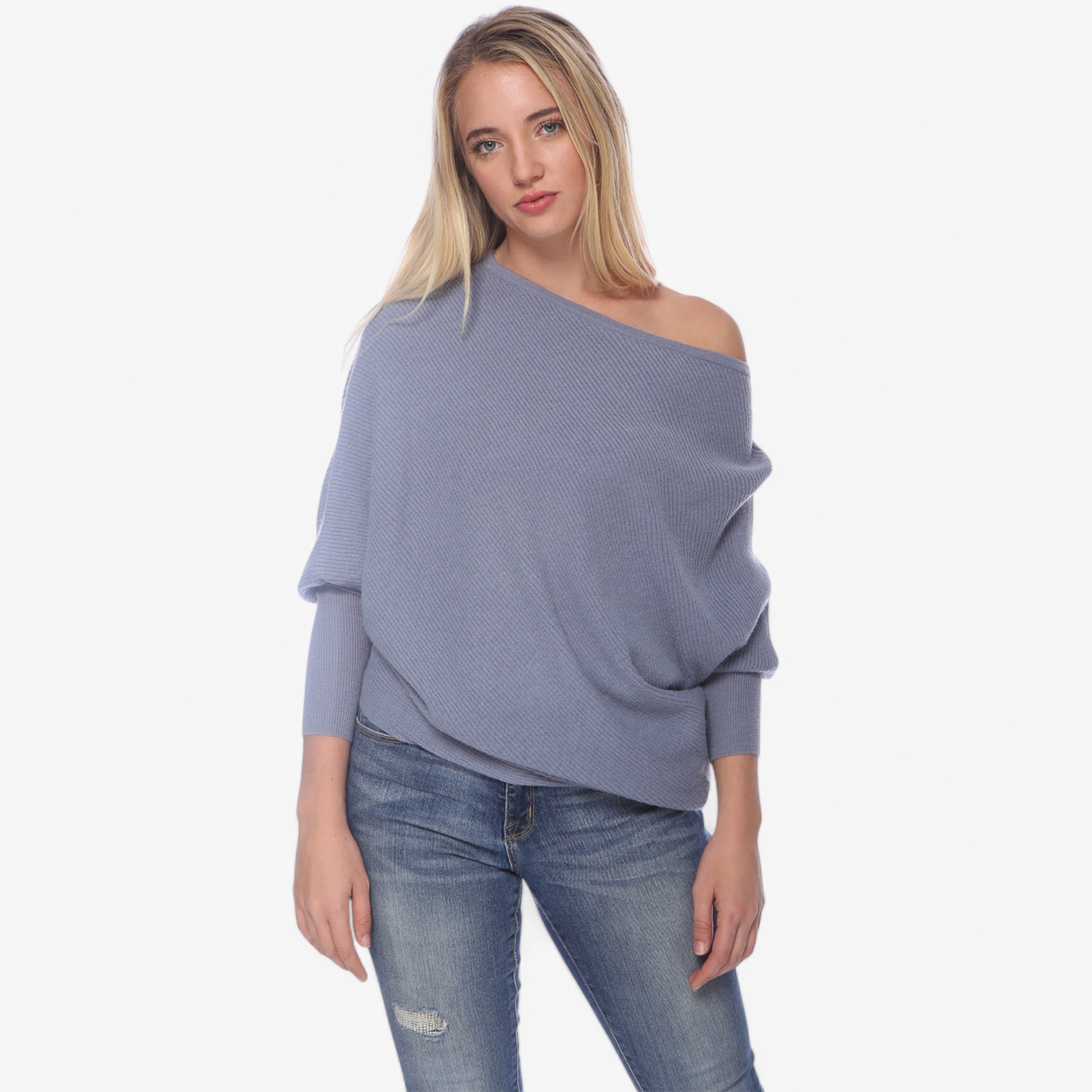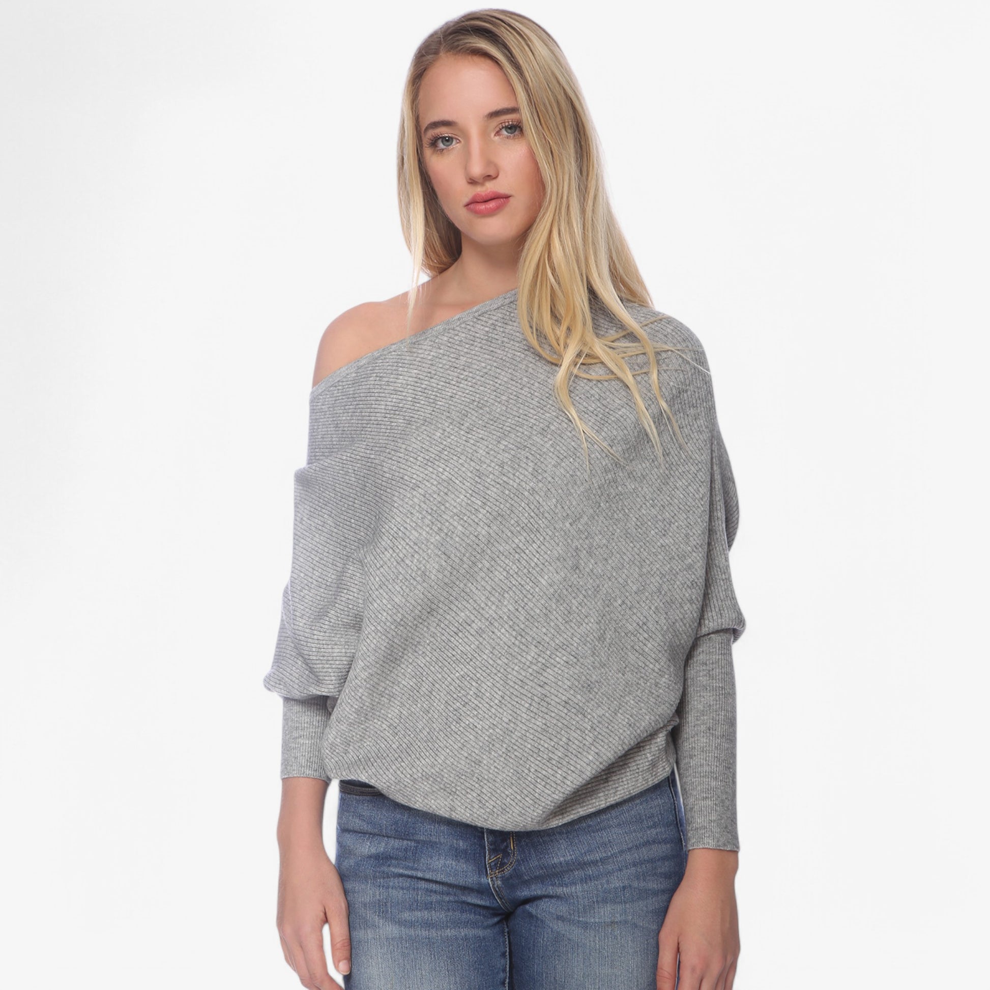 Anna-Kaci Women's Off-Shoulder Knit Sweater with Dolman Sleeves and Ribbed Cuffs