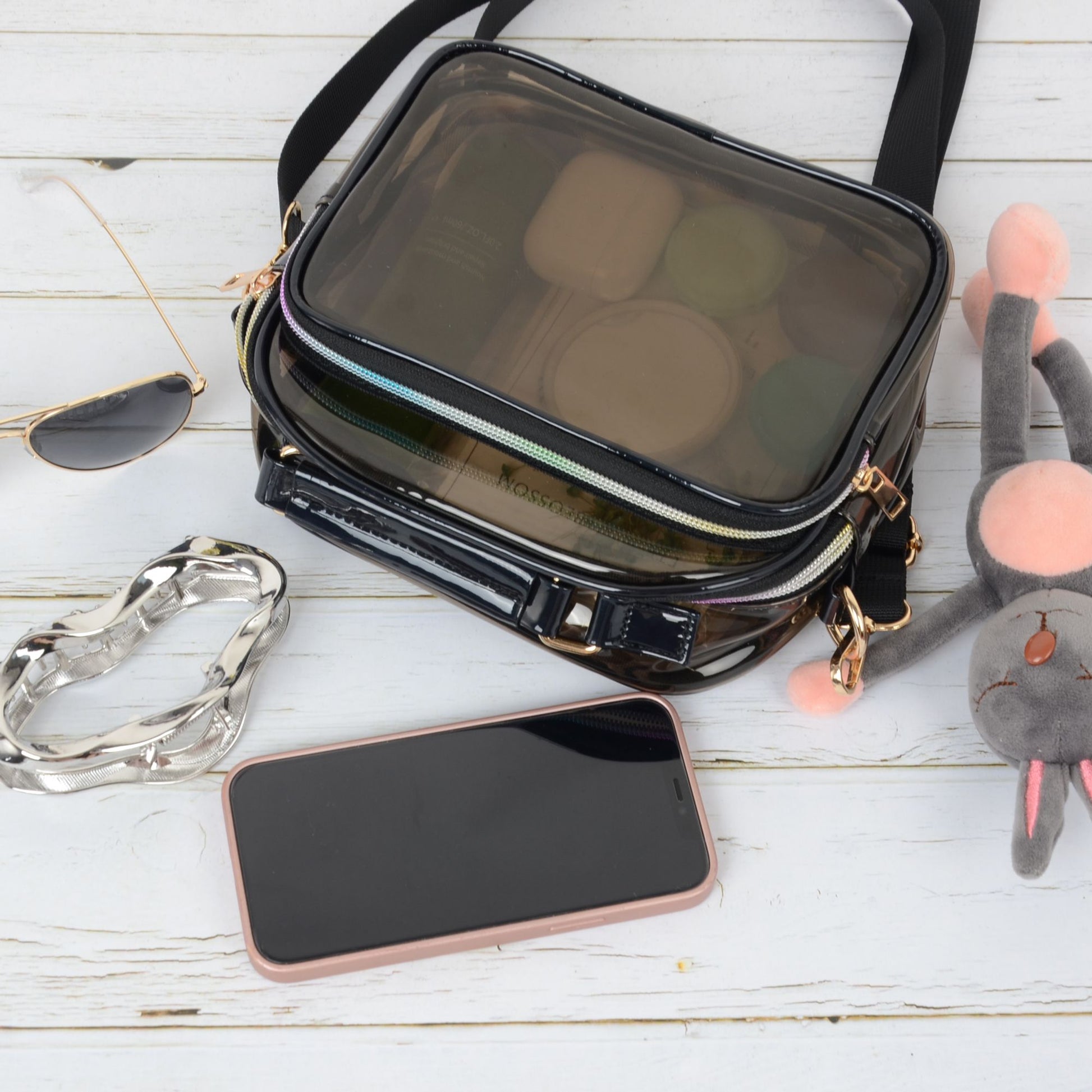 Step into the world of modern fashion with our Trendy Clear Transparent Women's Shoulder Bag with Iridescent Trim. This bag is a perfect blend of style and functionality. The fully transparent body not only gives it a cutting - edge look but also allows you to quickly locate your belongings without having to dig through the bag. Whether you're at a concert, a sports event, or a casual outing, the transparency meets security requirements and adds a trendy flair.